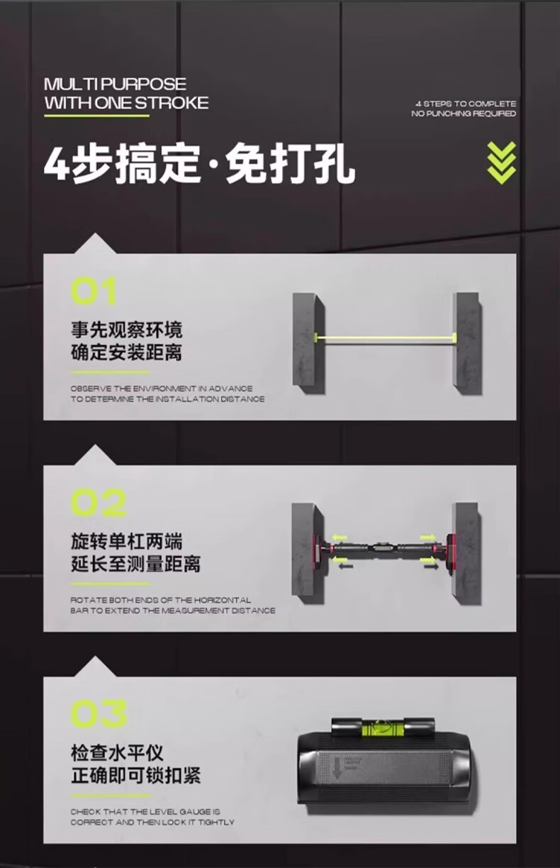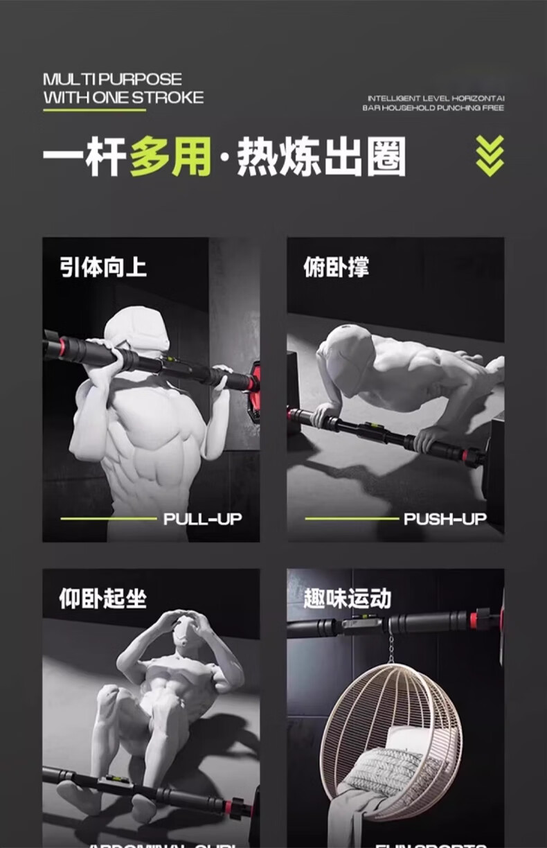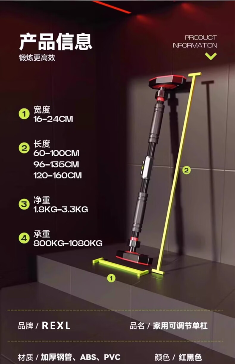 REXL high school entrance examination students pull-up indoor high school entrance examination horizontal bar adult home punch-free children's bar training fitness equipment high school entrance examination special horizontal bar adjustable 65-100cm