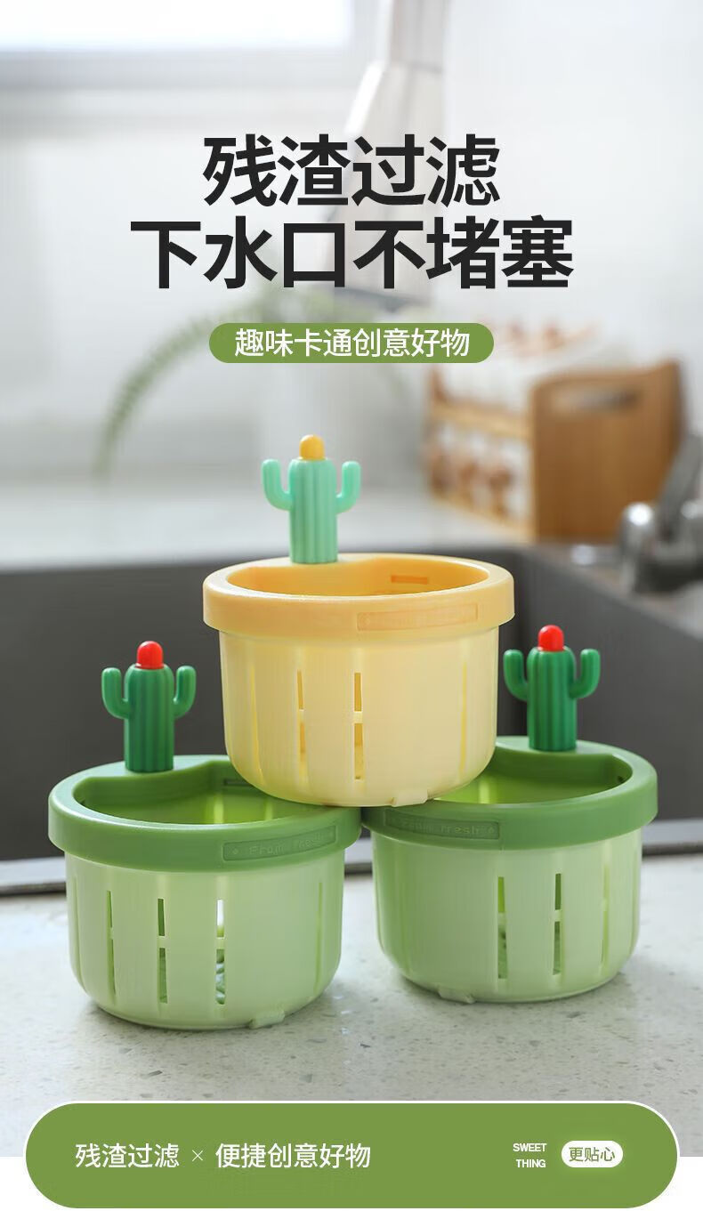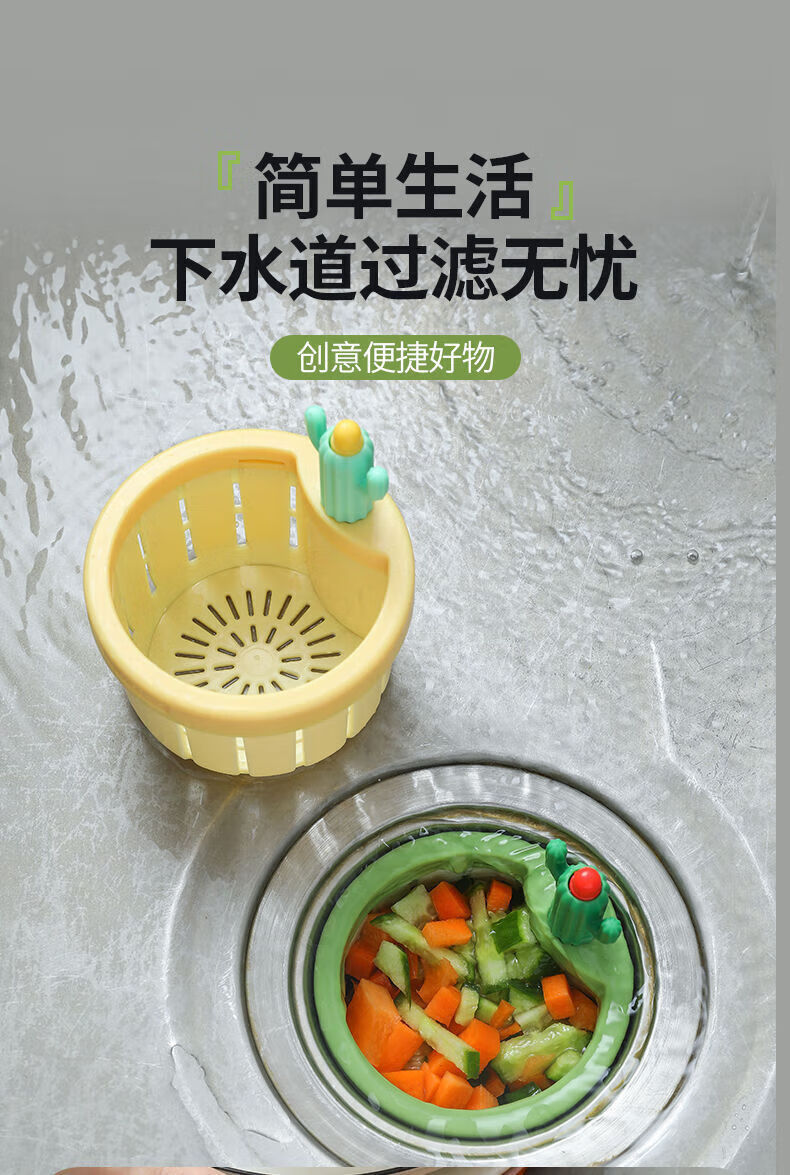 Wilkie sink filter basket washbasin leakage kitchen food waste filter handle household push-type slag draining cactus filter basket yellow 1 pack
