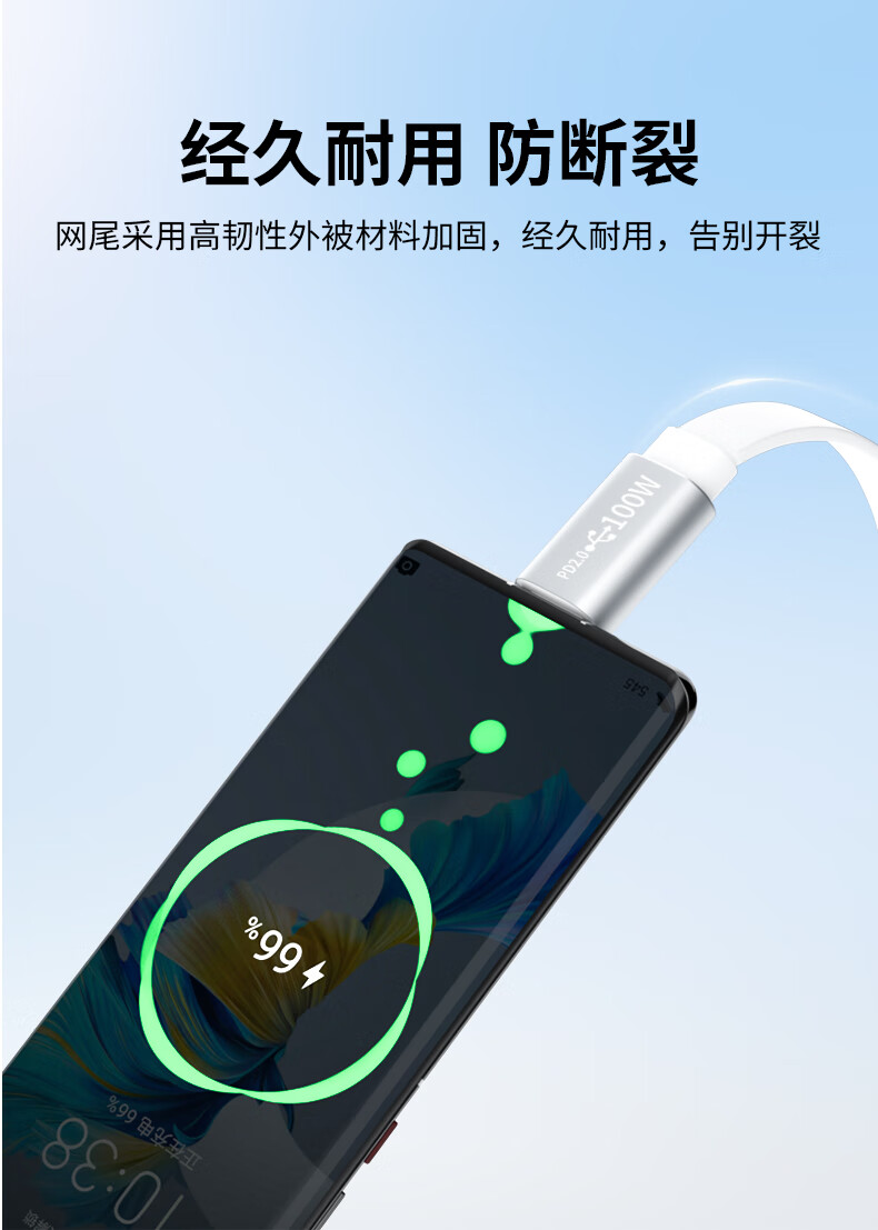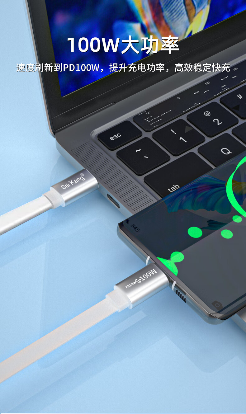Saikang double type-c data cable white flat charging cable 5A fast charging cable double-ended ctoc cable typec car connection cable suitable for Android mobile phones, tablets and laptops type-c2.0 white flat cable 0.5 meters