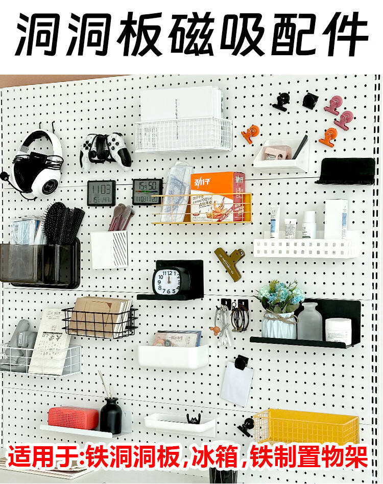 Qi'an Cave Hole Board Magnetic Accessories Special Hook Round Hole Universal Storage Rack Bookshelf DIY Girl Transformation Desk Magnetic White Pen Holder