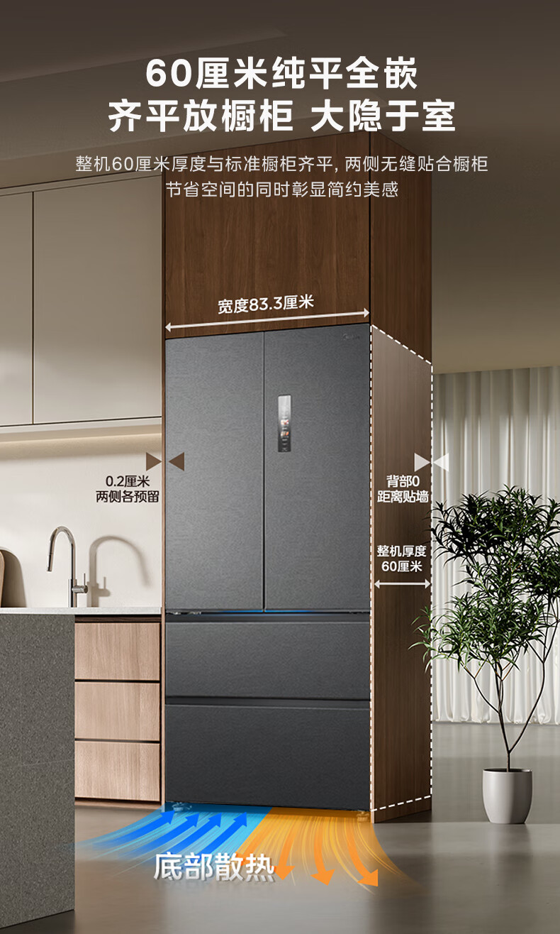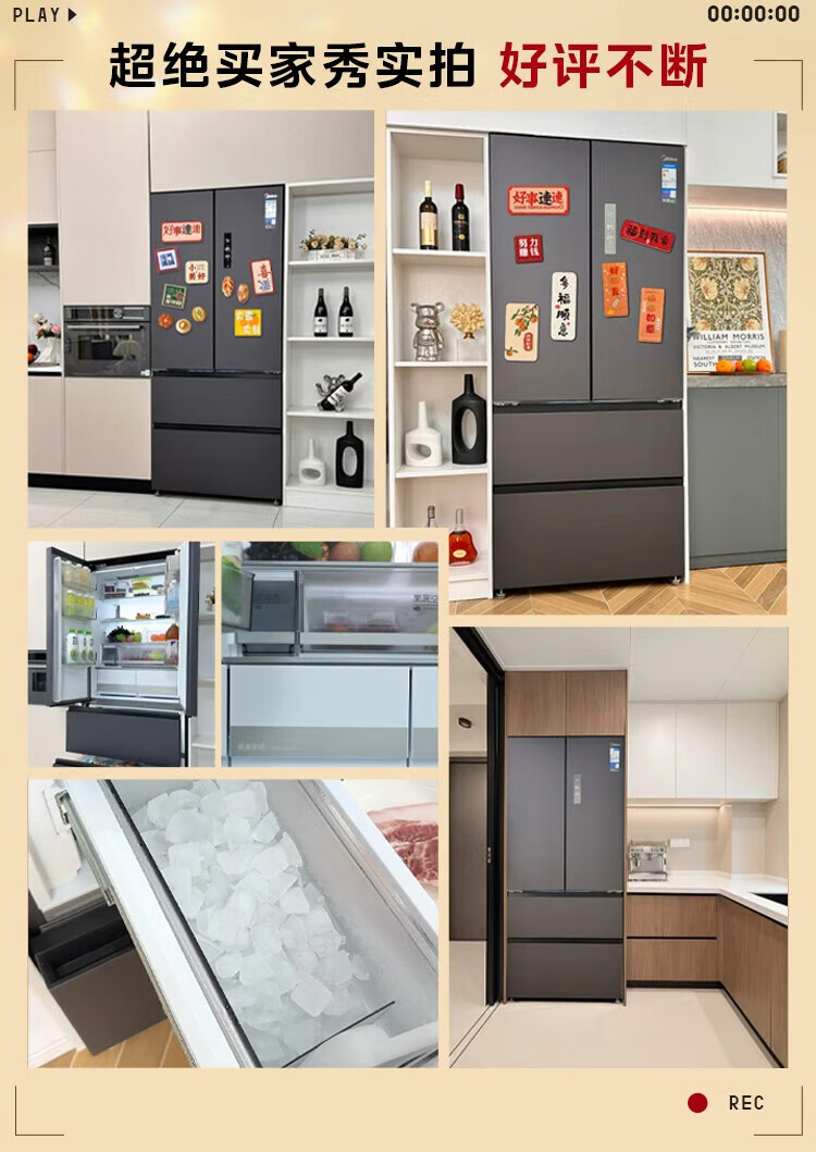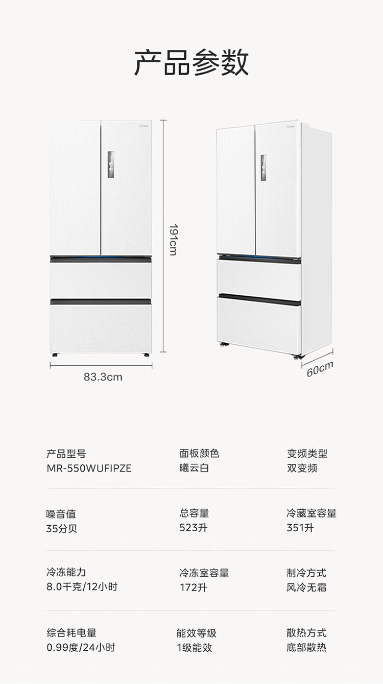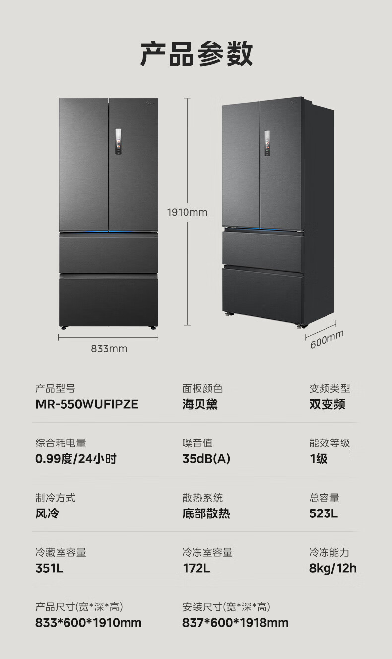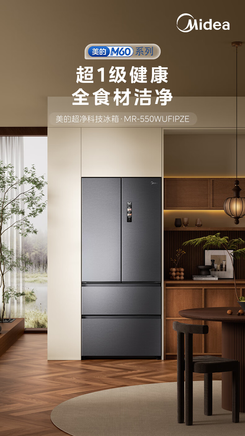 Midea dual system embedded 550 French multi-door four-door thin zero embedded first-level energy efficiency frost-free built-in ice machine sterilization large capacity refrigerator new product launch machine king automatic ice making MR-550WUFIPZE Xiyunbai