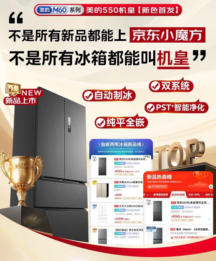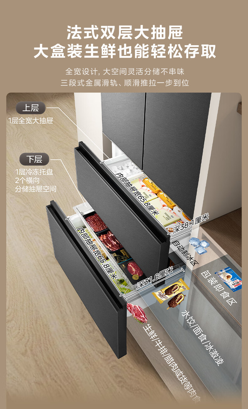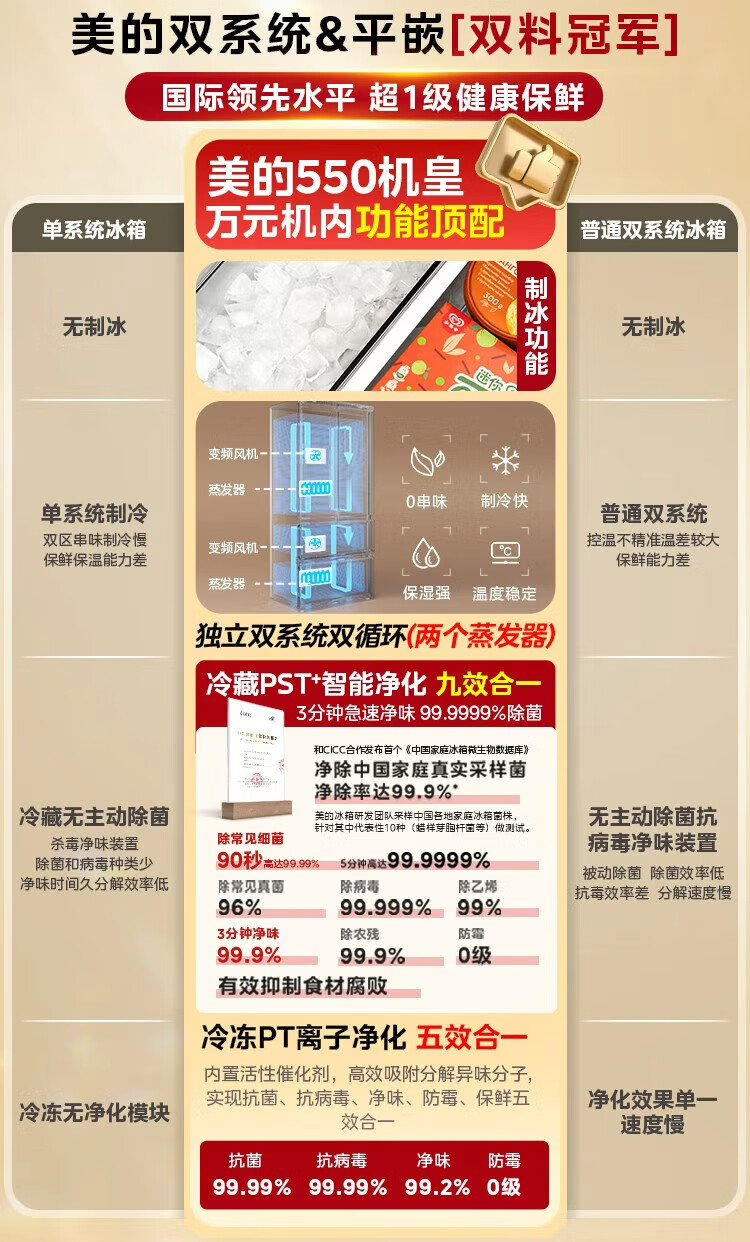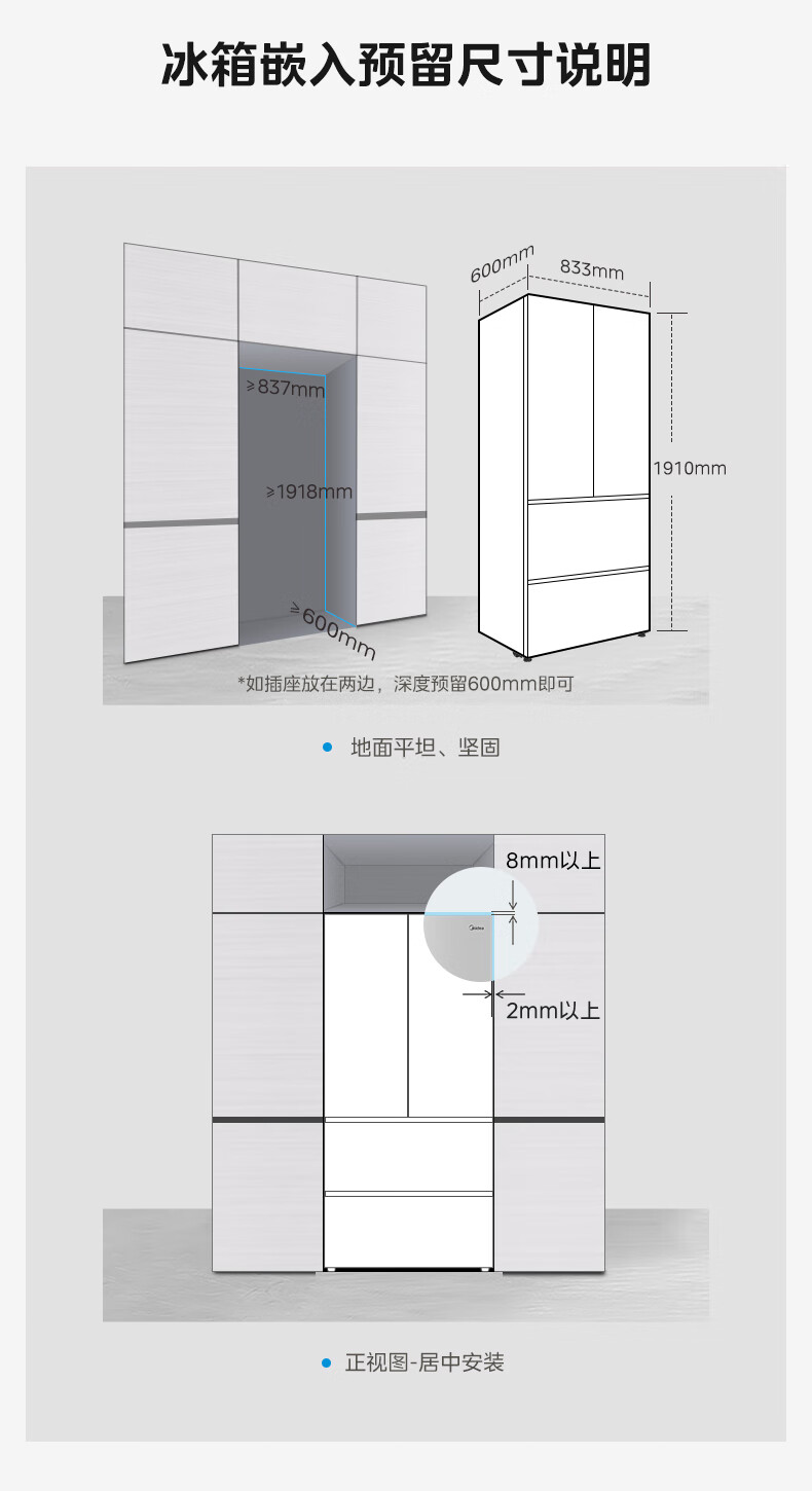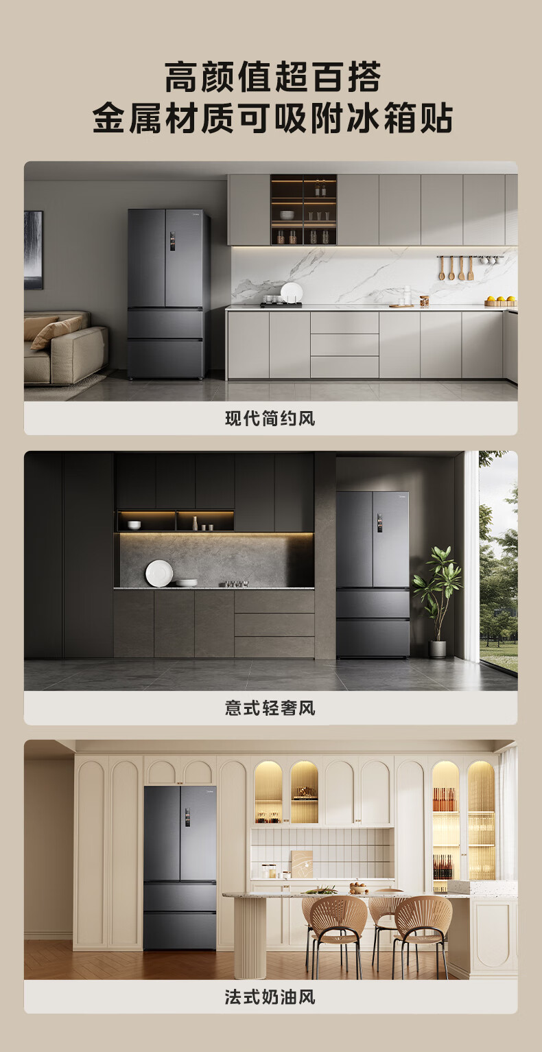 Midea dual system embedded 550 French multi-door four-door thin zero embedded first-level energy efficiency frost-free built-in ice machine sterilization large capacity refrigerator new product launch machine king automatic ice making MR-550WUFIPZE Xiyunbai