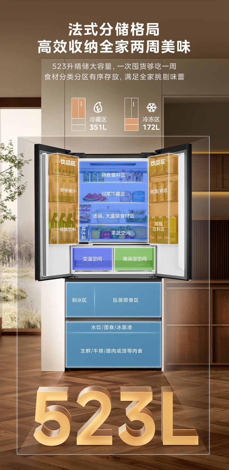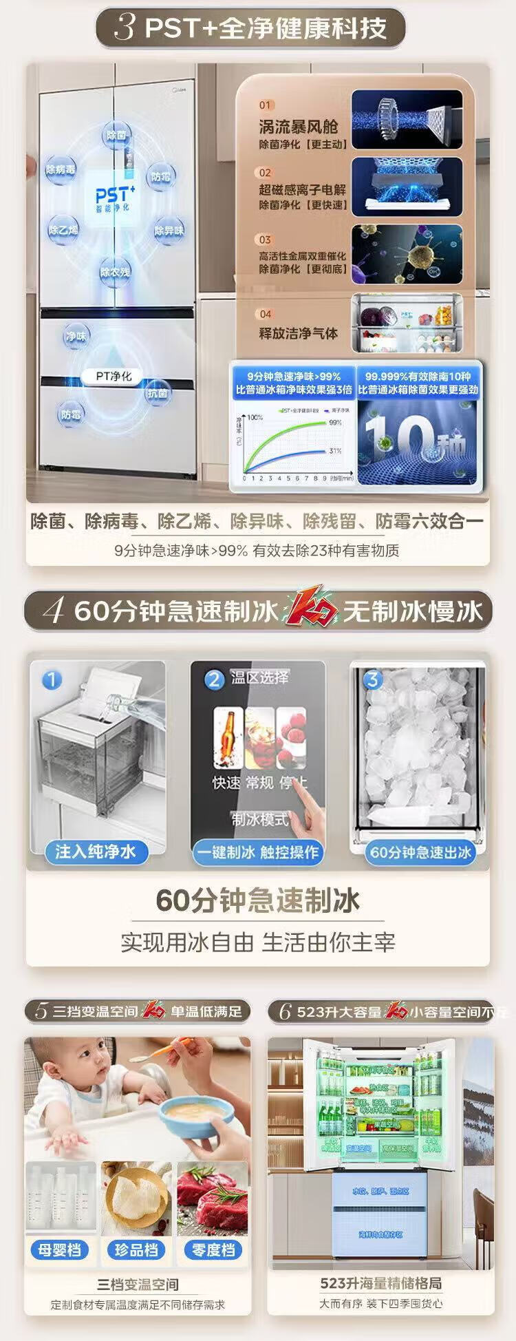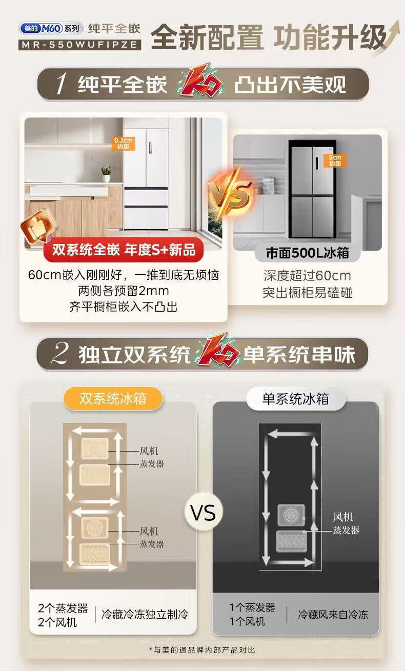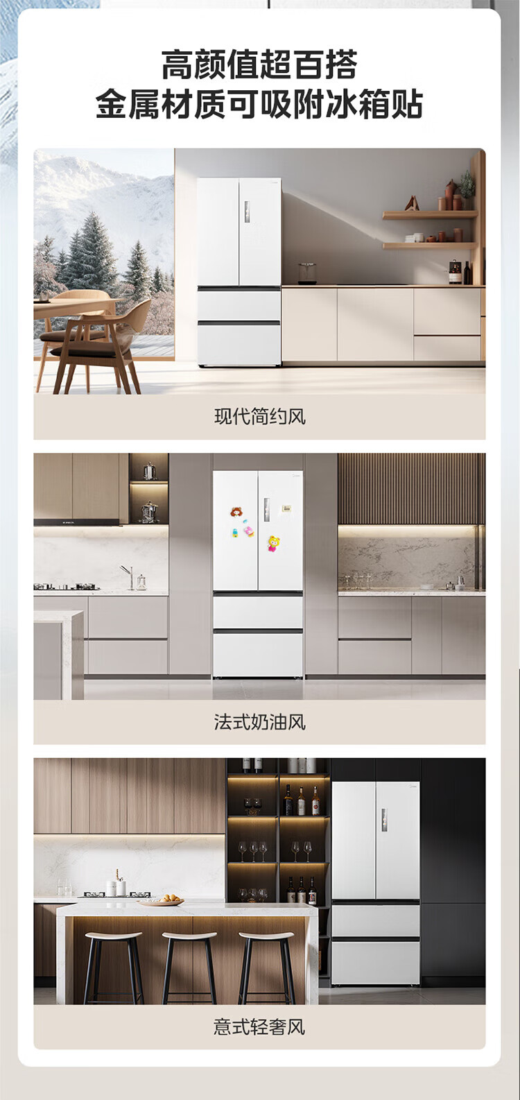 Midea dual system embedded 550 French multi-door four-door thin zero embedded first-level energy efficiency frost-free built-in ice machine sterilization large capacity refrigerator new product launch machine king automatic ice making MR-550WUFIPZE Xiyunbai
