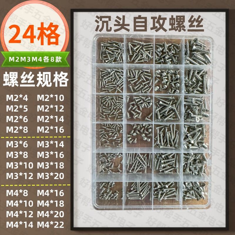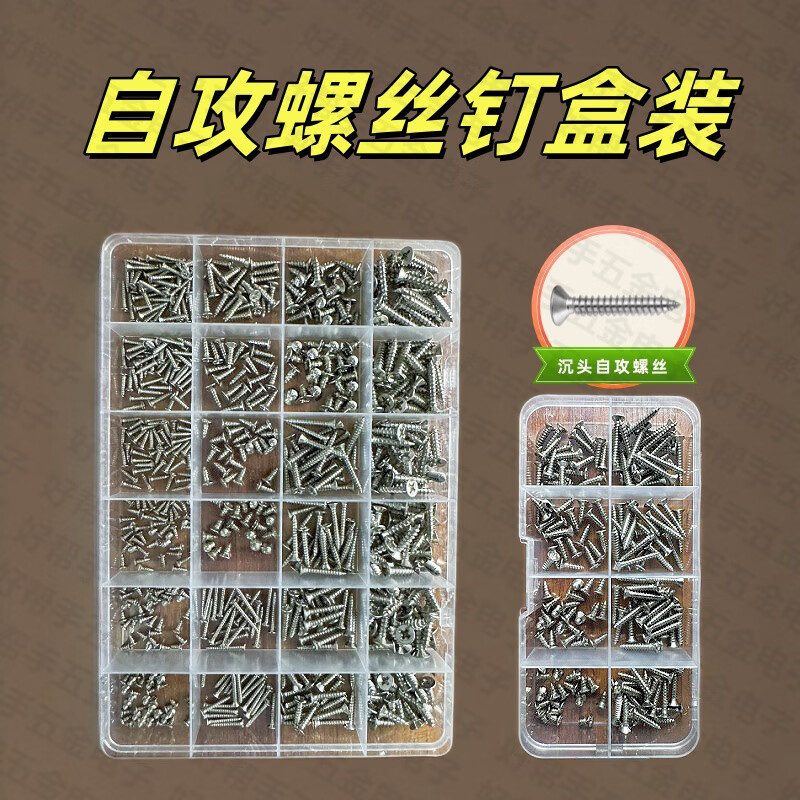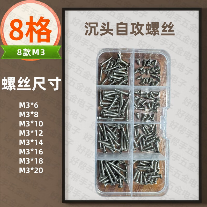 Vinoa M2M3M4 self-tapping screws boxed mixed set pointed screw mixed set 8 grids 10 grids 15 grids 24 grids 8 grid box + 8 kinds of M3 KA screws (storage box)