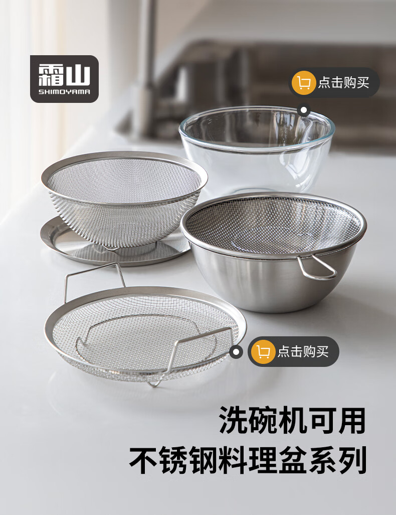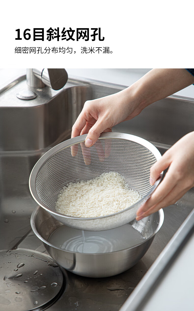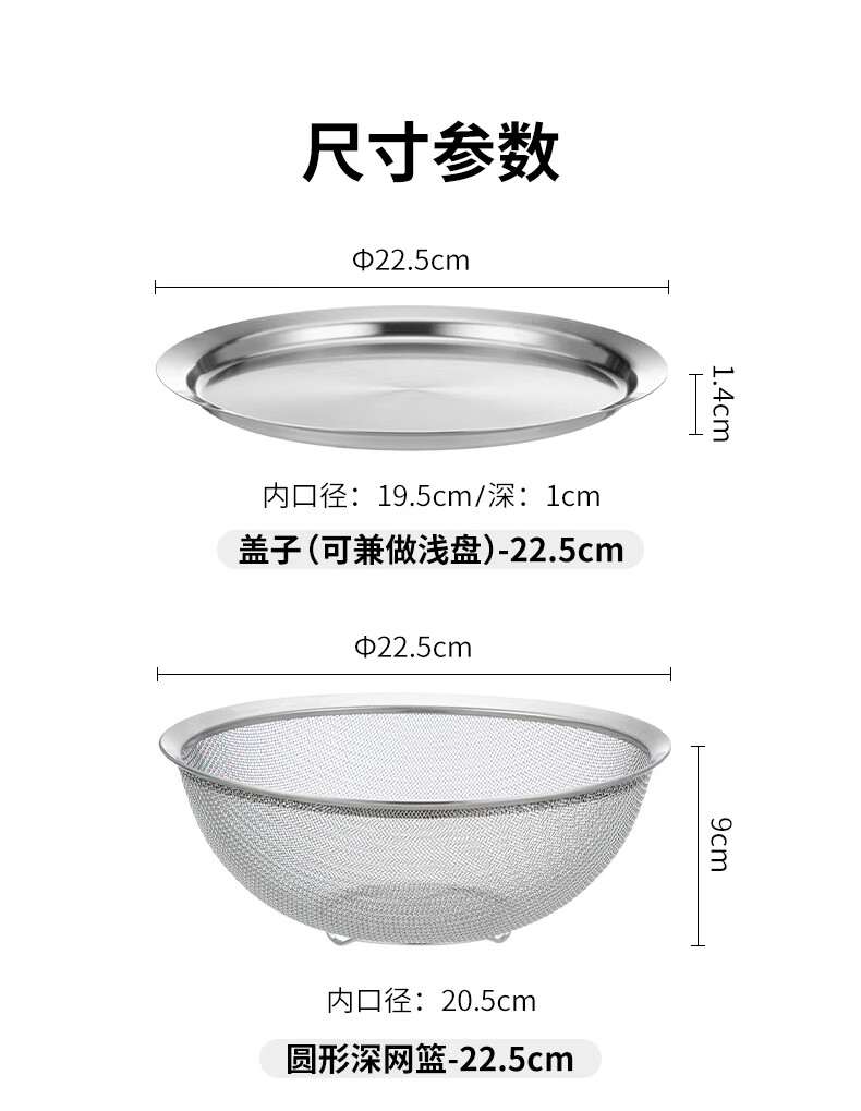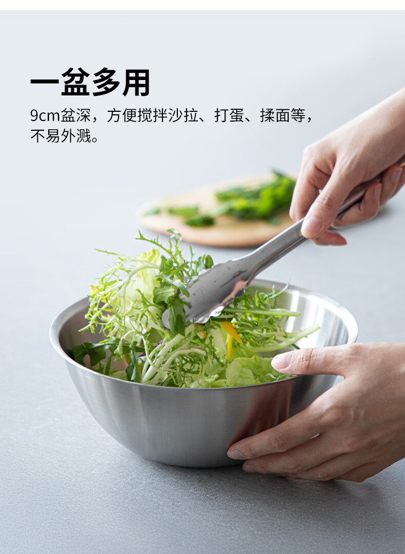 Shuangshan 304 stainless steel cooking basin, rice washing and vegetable basket, baking, deepening and kneading basin, salad bowl, vegetable preparation, drain basin set (lid + drain basket + deep basin)