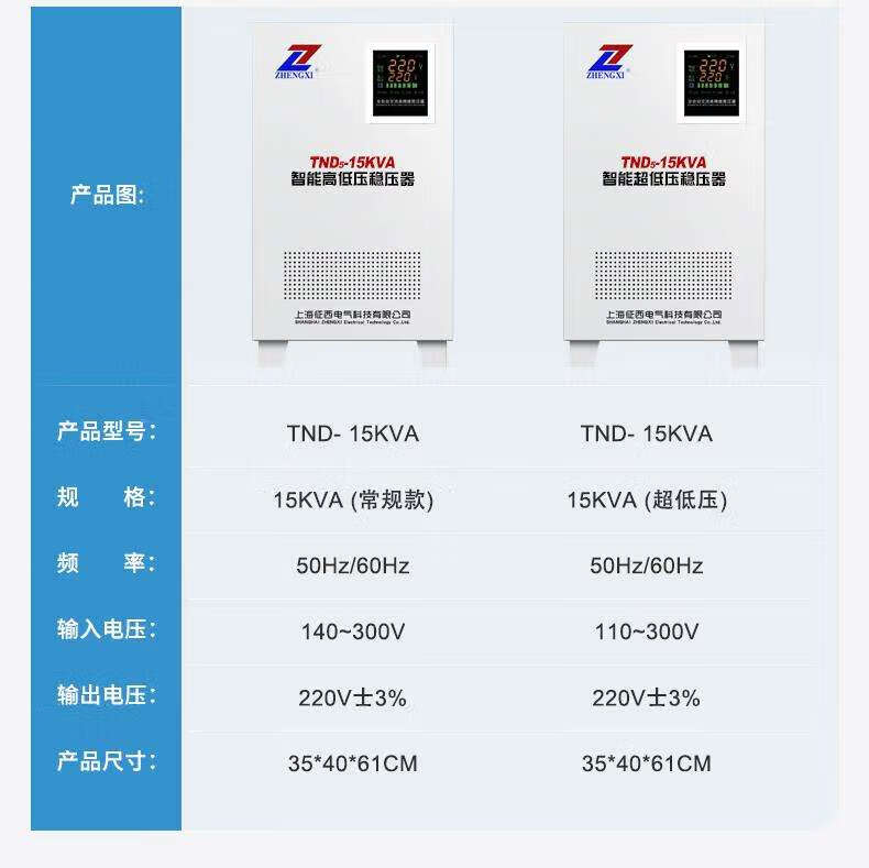 Wen Yijia 220v household high-power air conditioning special voltage regulator fully automatic commercial ultra-low voltage voltage stabilizer TND5-20KVA regular model (voltage range 140v-30