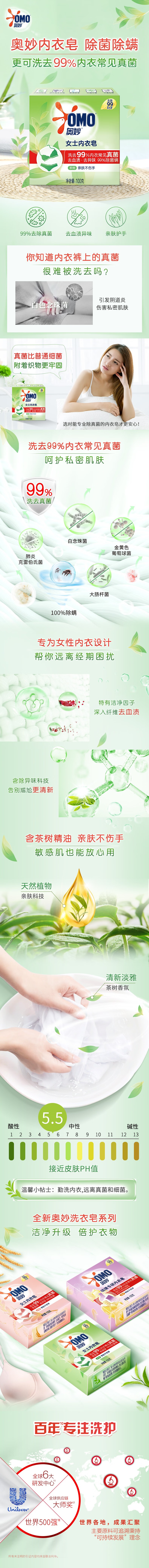 Omo Laundry Soap, sterilizing, deodorizing, blood-stained women's underwear soap, natural tea tree essential oil, skin-friendly and non-harmful to hands, sterilizing and mite-removing, eucalyptus and mugwort fragrance 220g*2