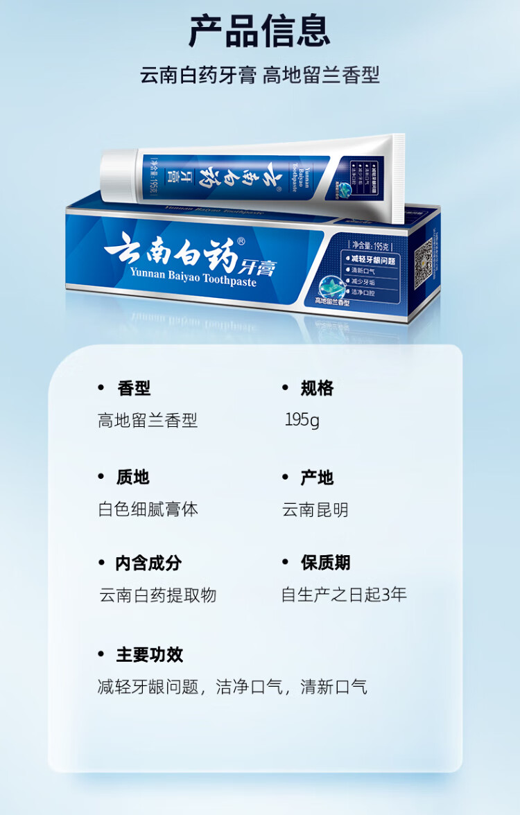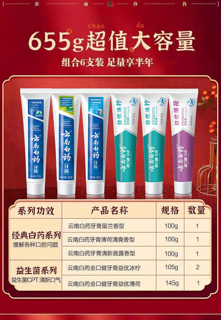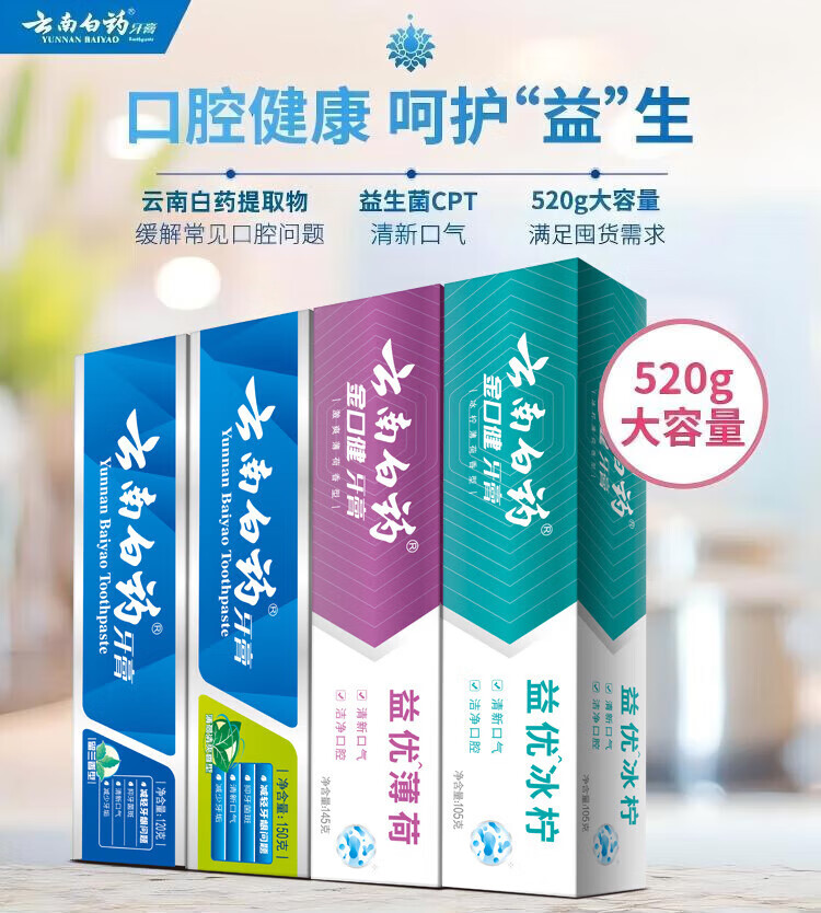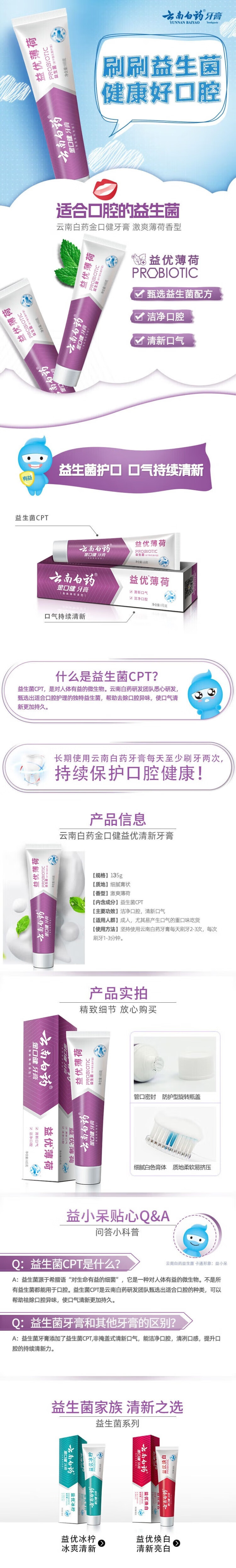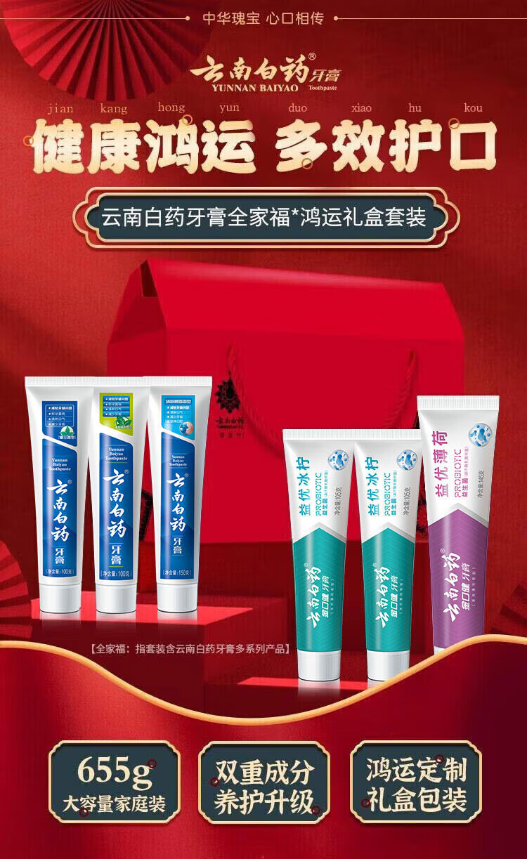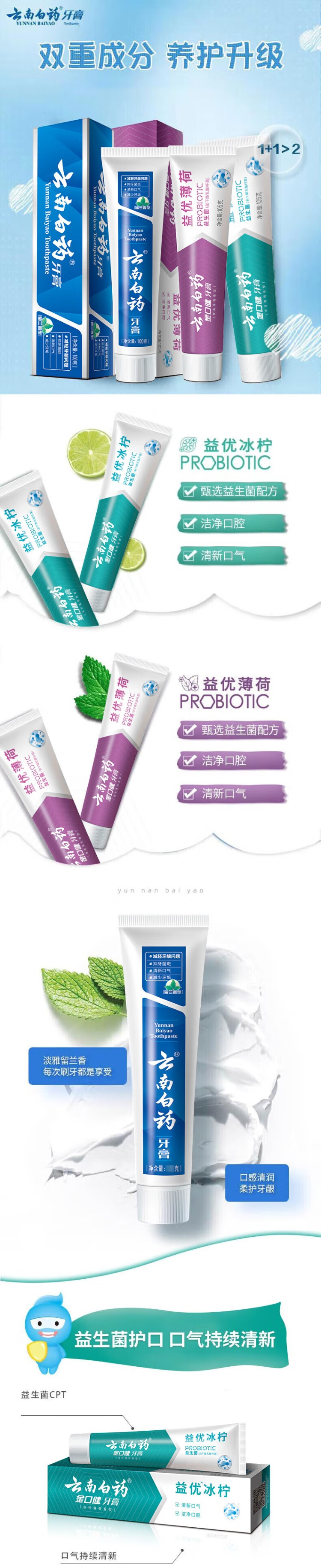 Yunnan Baiyao Jinkoujian toothpaste probiotic fresh breath toothpaste family pack early adopter pack probiotic spearmint 310g*1 set