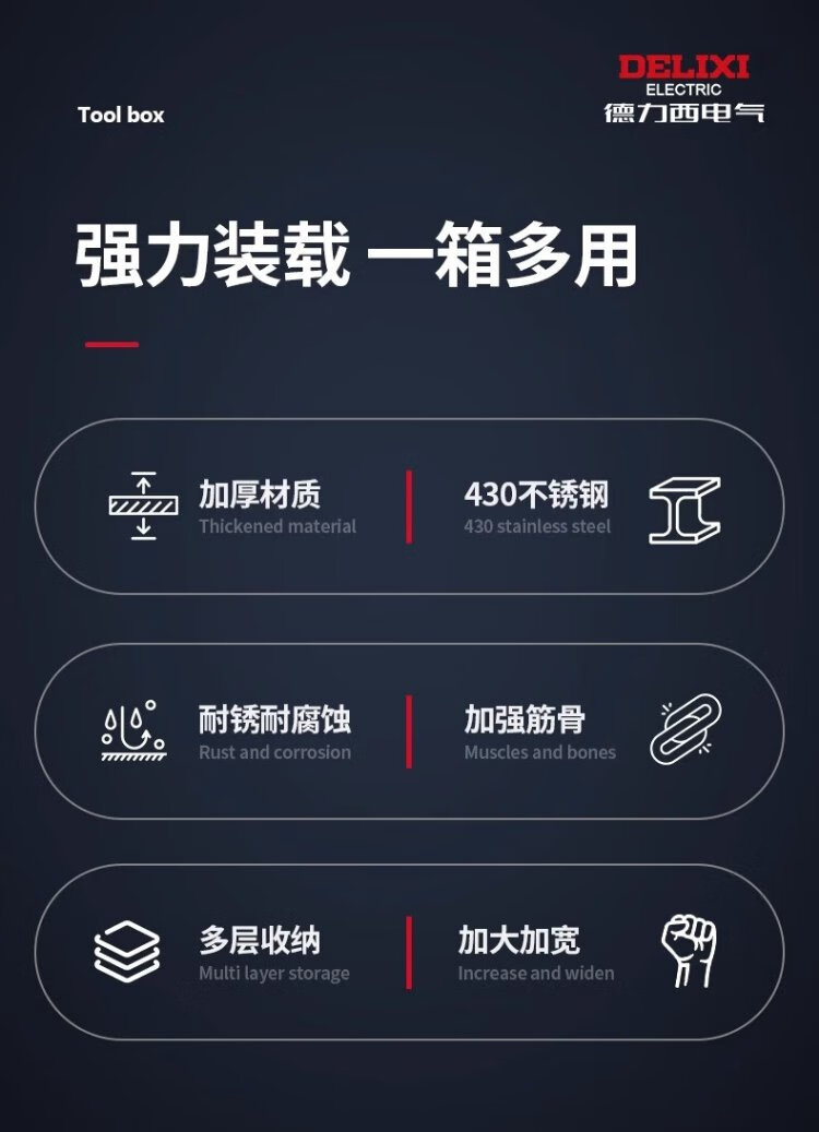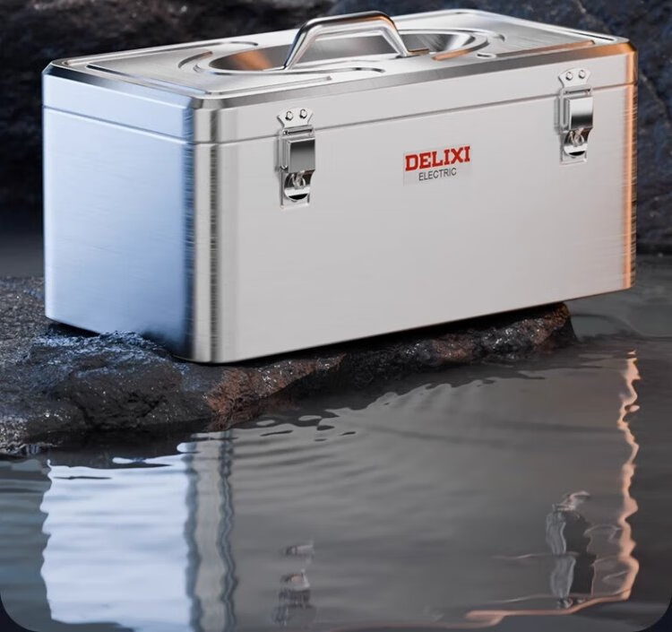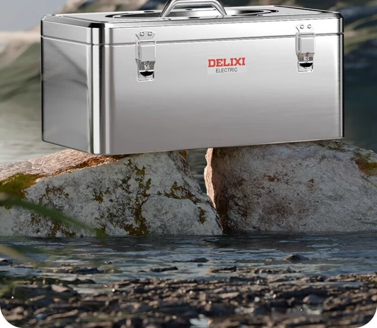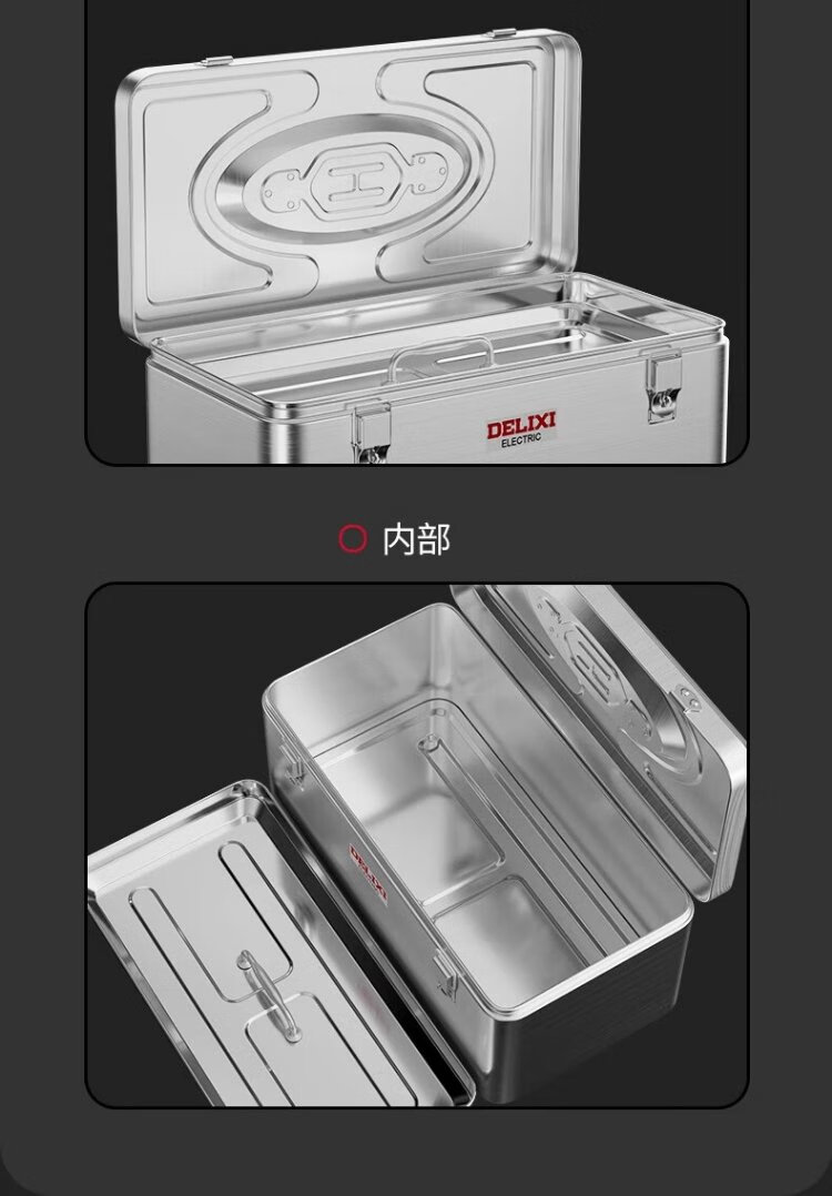 Delixi stainless steel tool box, industrial-grade storage box, car home, multi-functional metal box, suitcase, free parts box, large/single-layer thickened stainless steel tool box