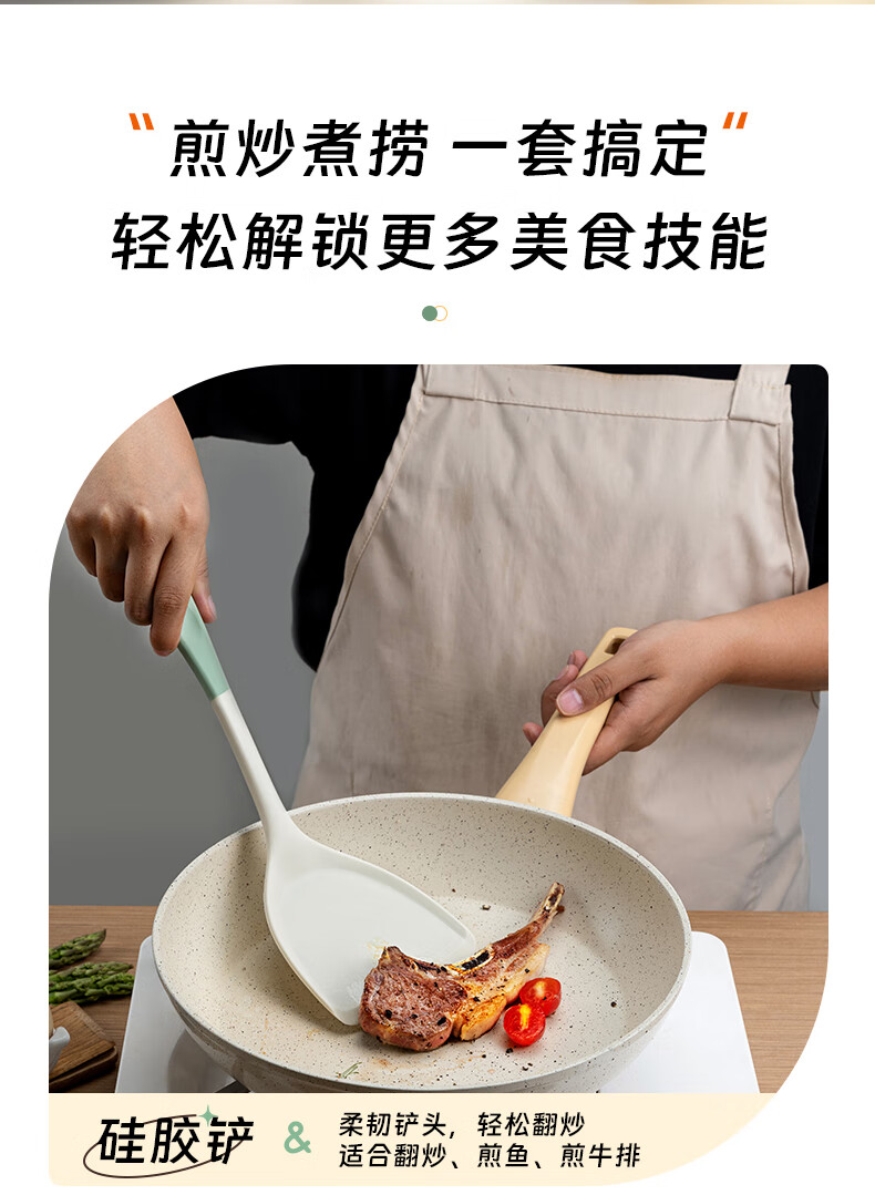 ASD silicone spatula and soup spoon for household non-stick pans, special cooking spatula and spoon, food grade high temperature resistant kitchen utensil set, silicone spatula