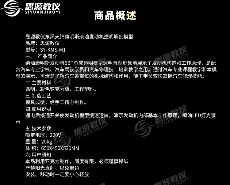 Siyuan Teaching Instrument Automobile Dongfeng Tianjin Cummins diesel engine transparent teaching anatomy model engine transparent model