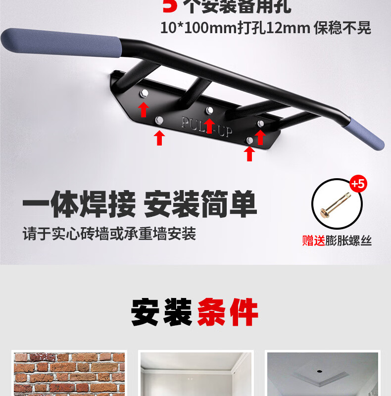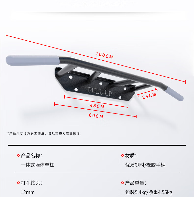 Kaooseen horizontal bar indoor pull-up device home outdoor wall punching fixed single and double rod stretching hanging bar fitness equipment black - size 100*60*25cm