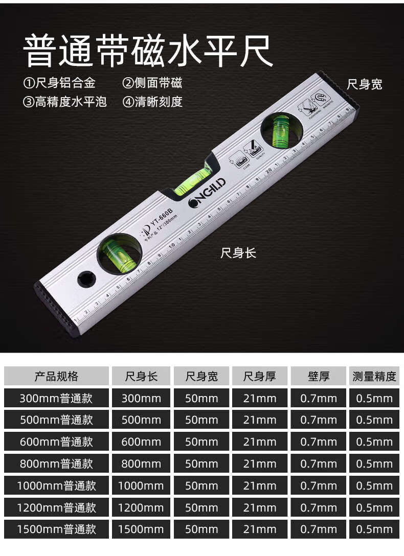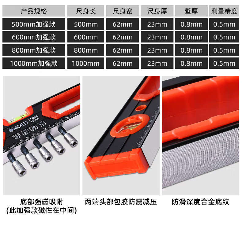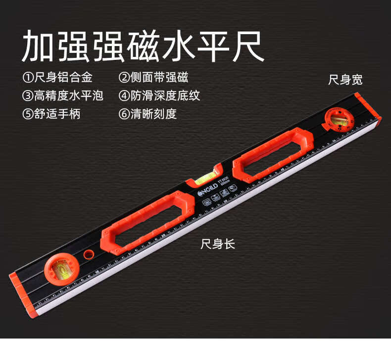 Kezhi Tuchi high-precision flat water ruler relies on ruler fans small aluminum alloy solid anti-fall balancer tool strong magnetic household reinforced version 1.2 meters