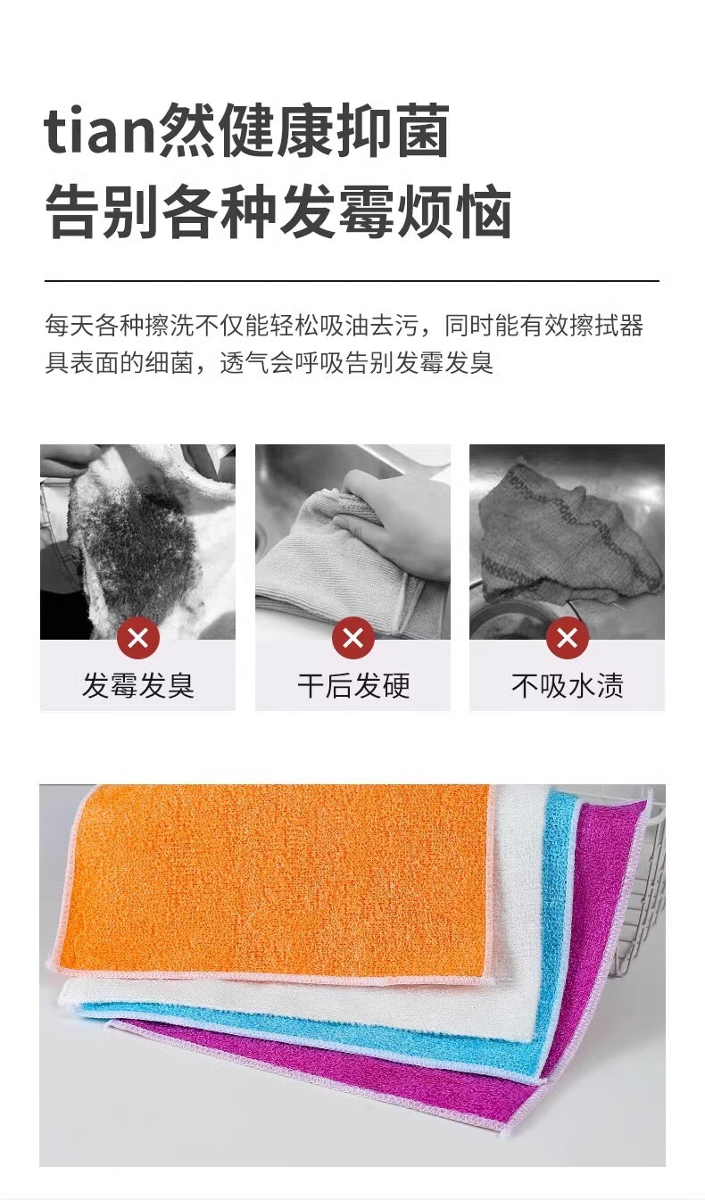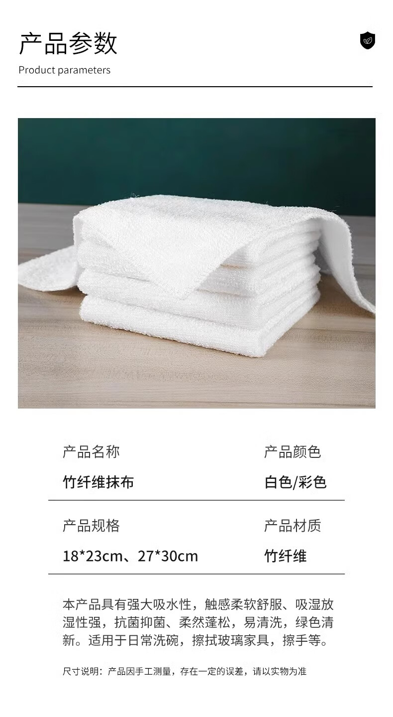 Oil-free thickened bamboo fiber dishwashing rags, kitchen dishwashing towels, cleaning supplies, scouring pads to absorb water and remove oil, bamboo fiber rags 18*23 white, 2 pieces