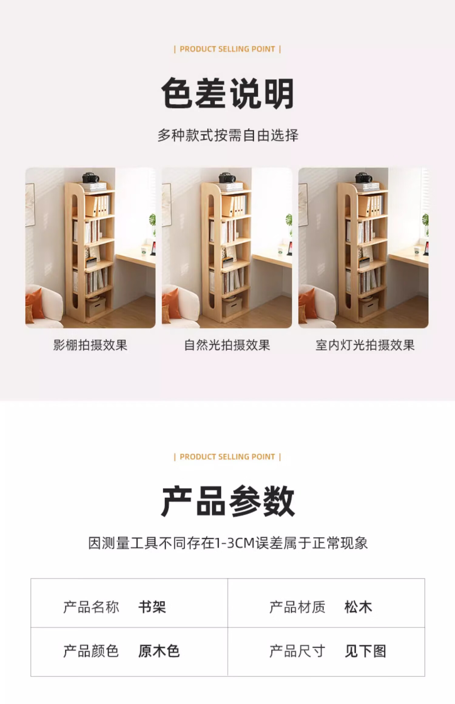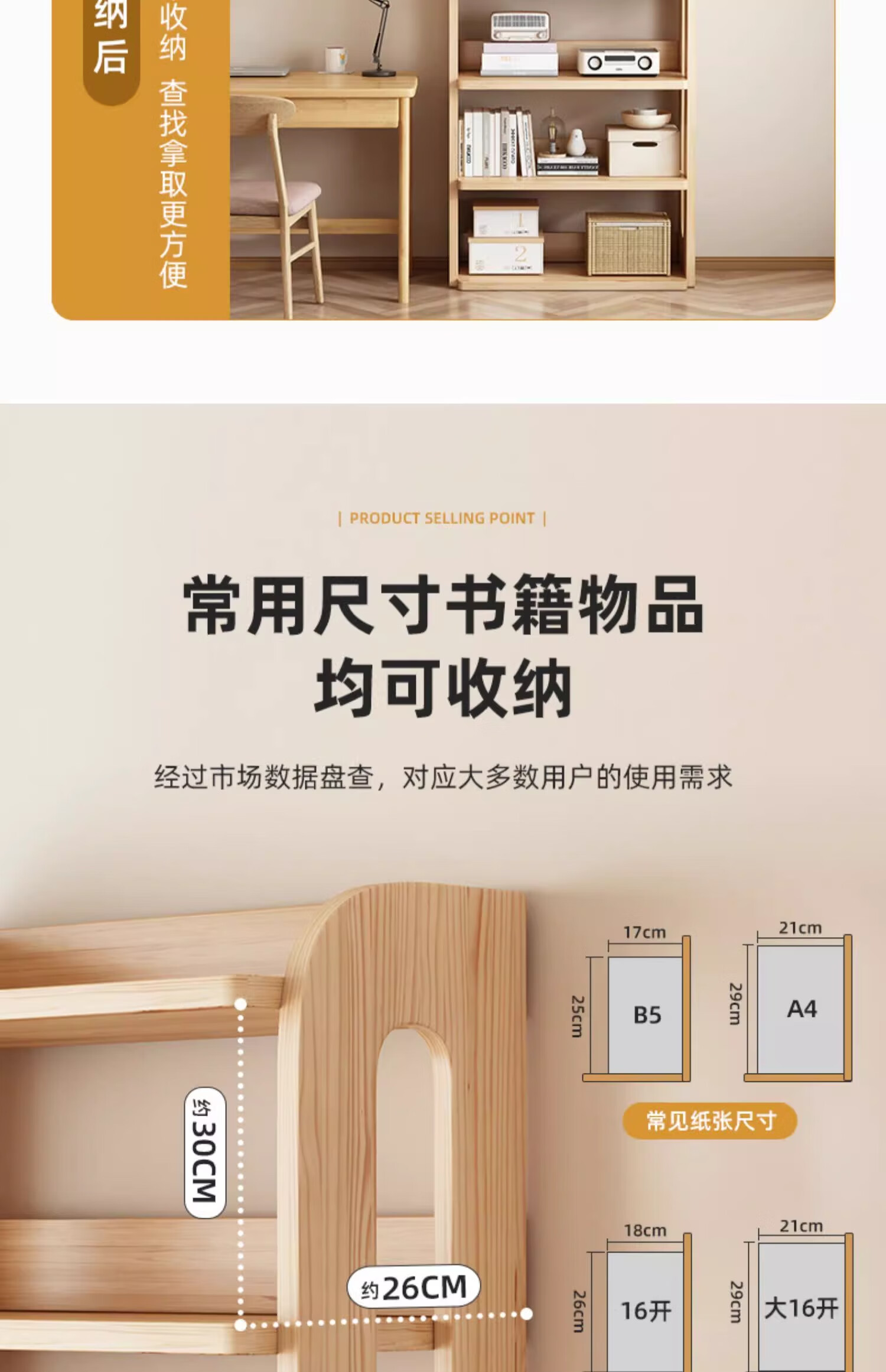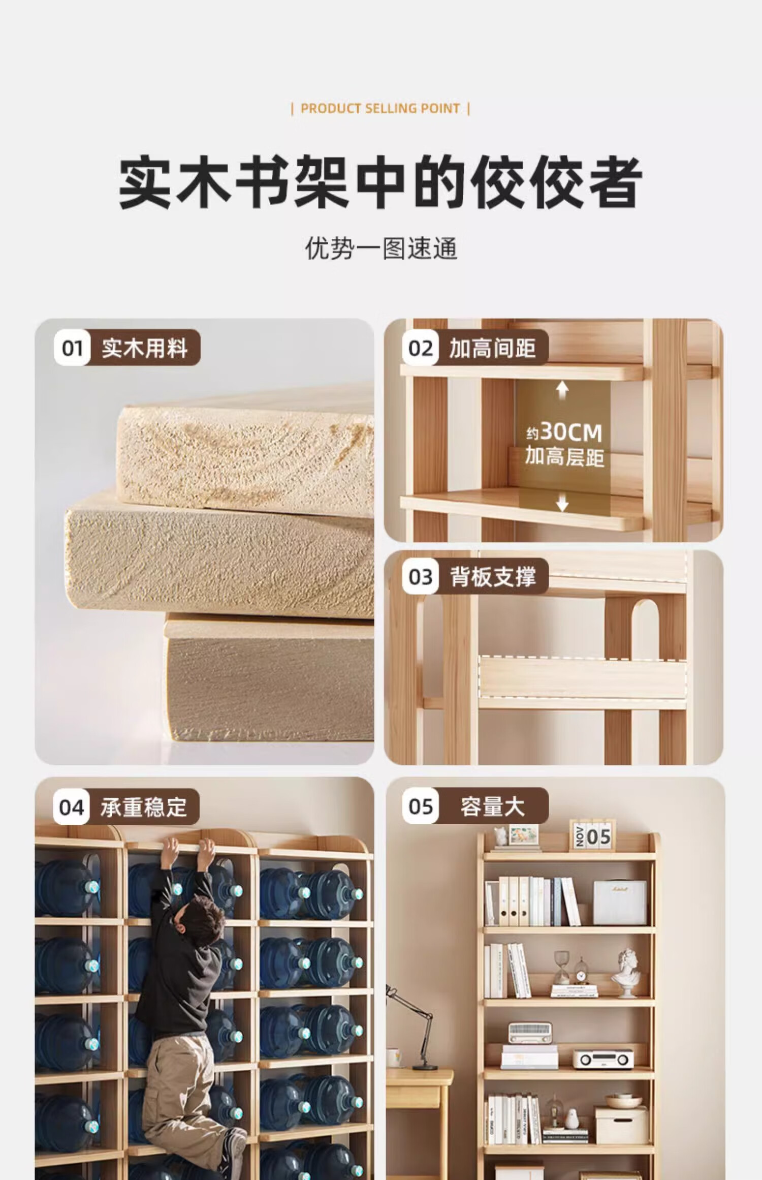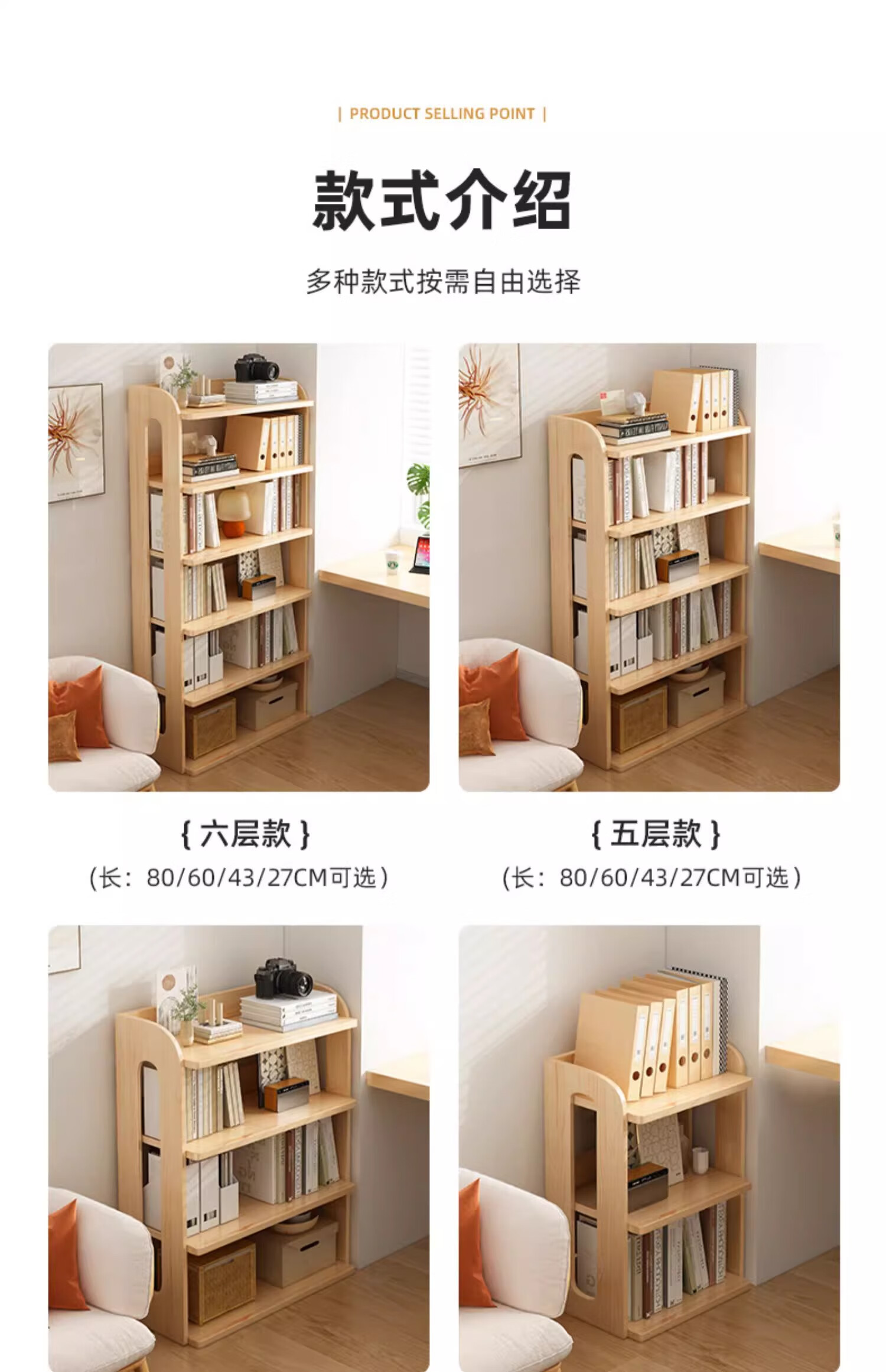 Shousheng solid wood bookshelf, floor-to-ceiling all-in-one corner storage cabinet for children and students, simple tableside pine bookcase for children and students. Recommended all solid wood, no paint, original wood color丨Six layers 43*160
