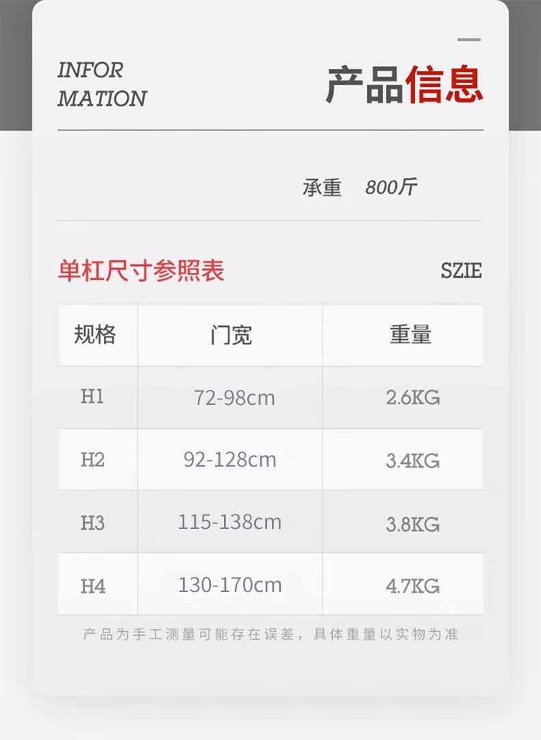 DEATKN German horizontal bar indoor home punch-free wall door boom home fitness pull-up equipment sixth generation suitable for installation at a distance of 72-98cm