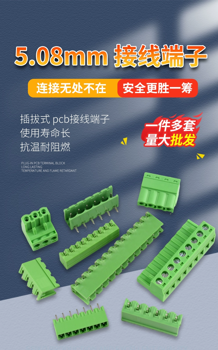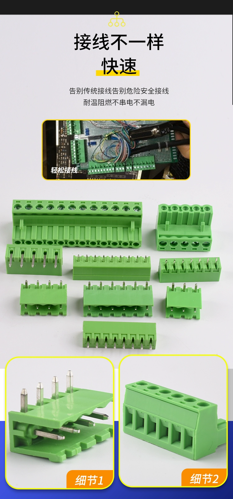 KF2EDGK 5.08mm plug-in pcb terminal block 2P3P4P6P8P9P10P12P straight curved pin base 10P straight pin + plug (1 set)
