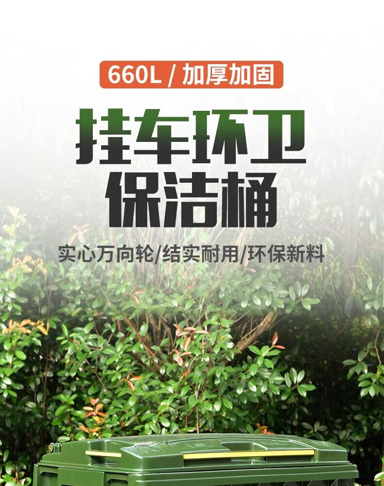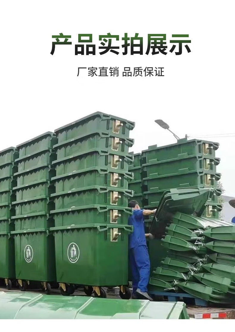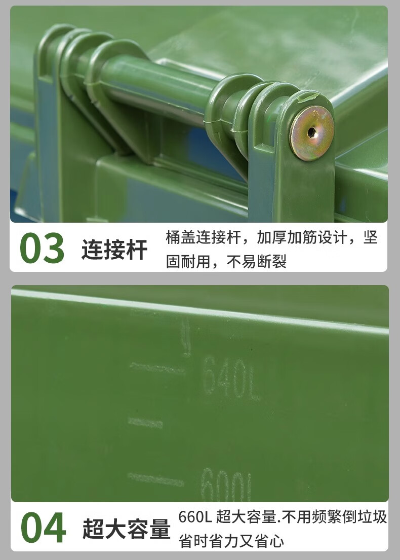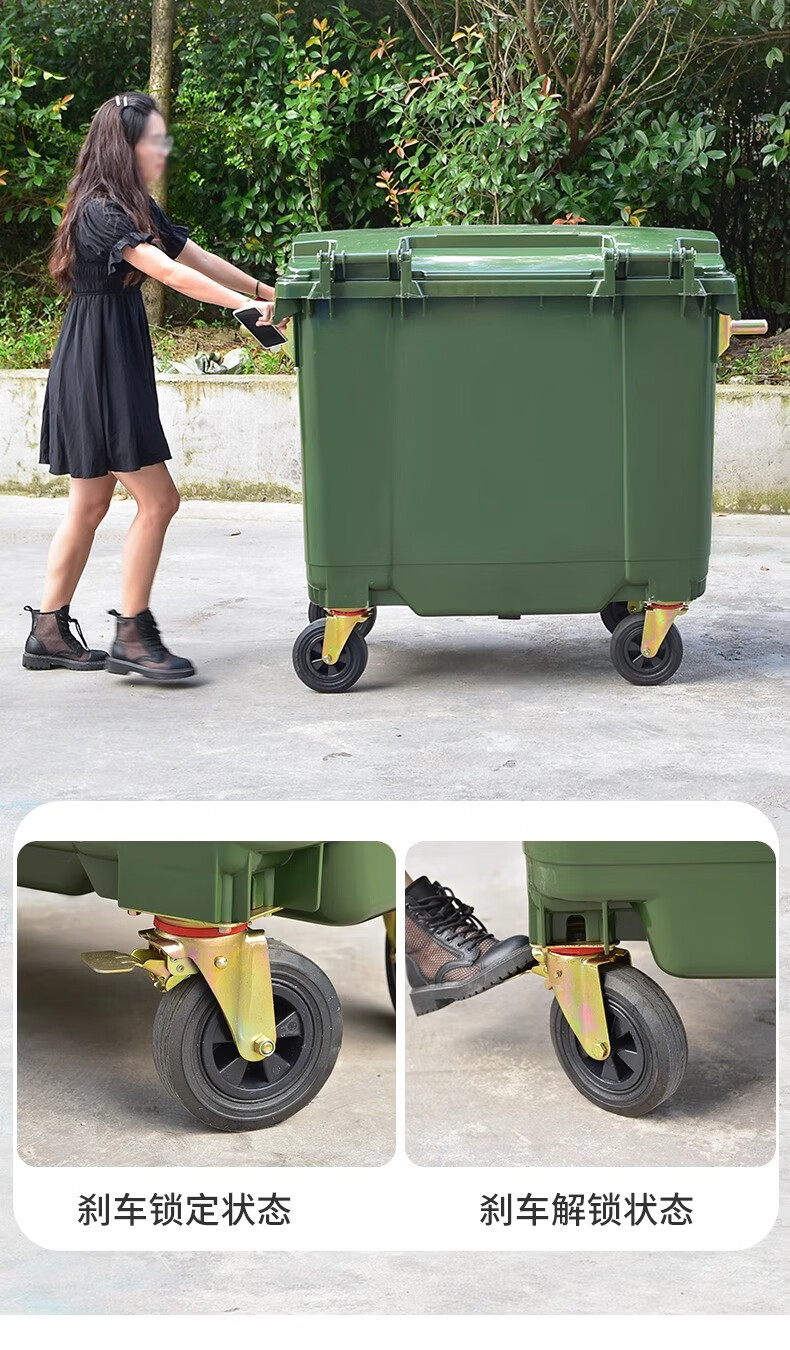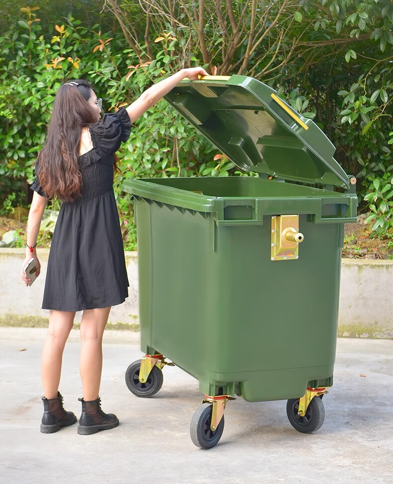 Kai Tak 660L outdoor large trash can commercial sanitation property large trash can hotel large municipal plastic bucket 660L sanitation thickened green without lid