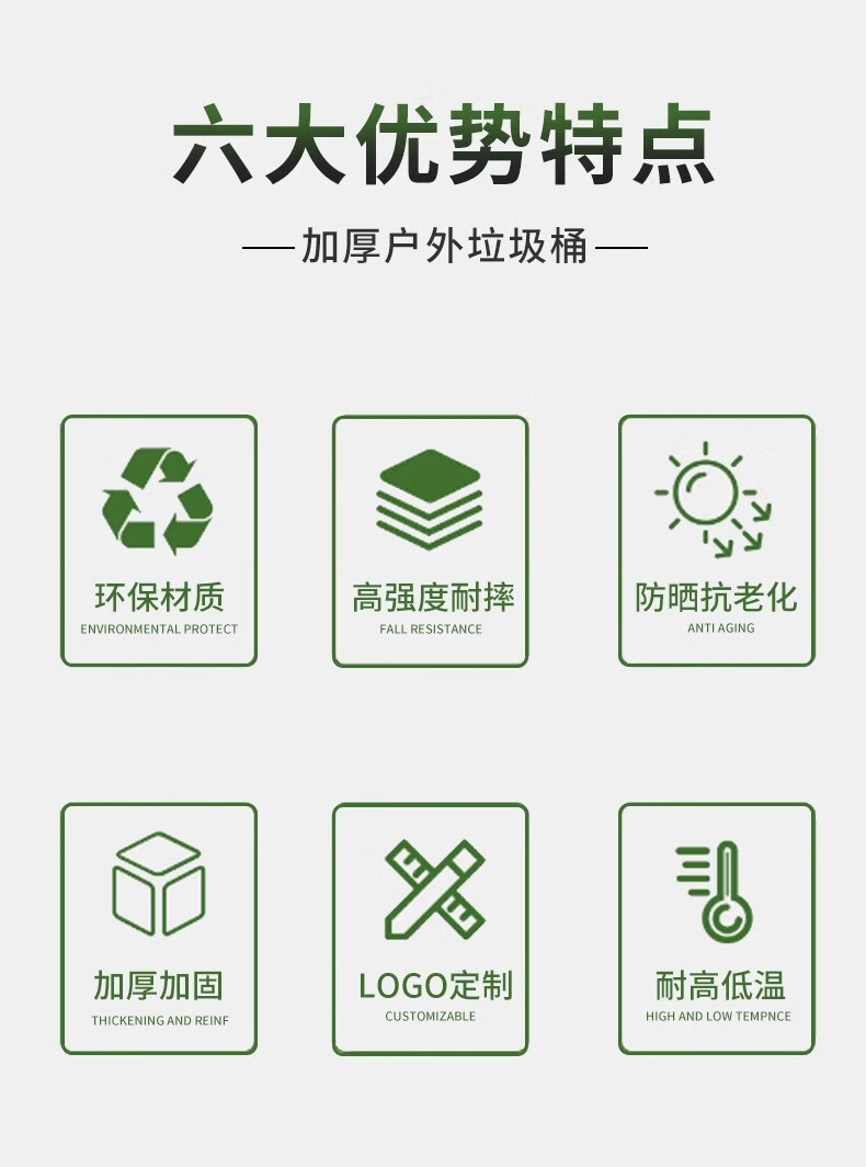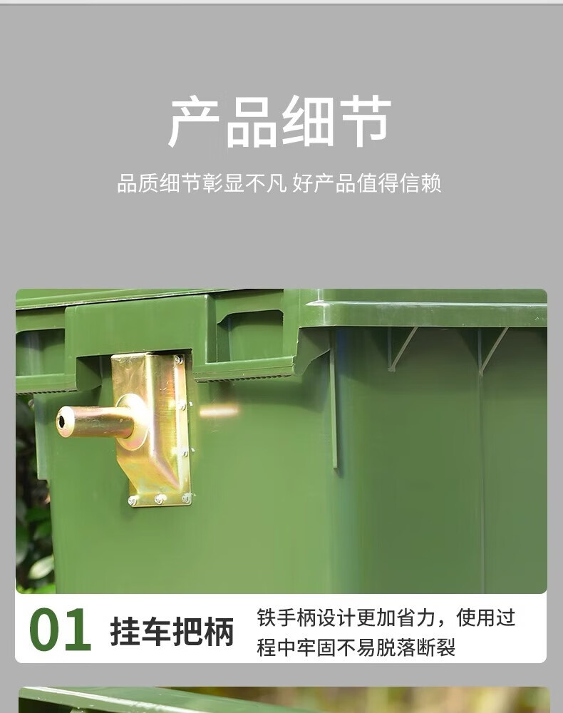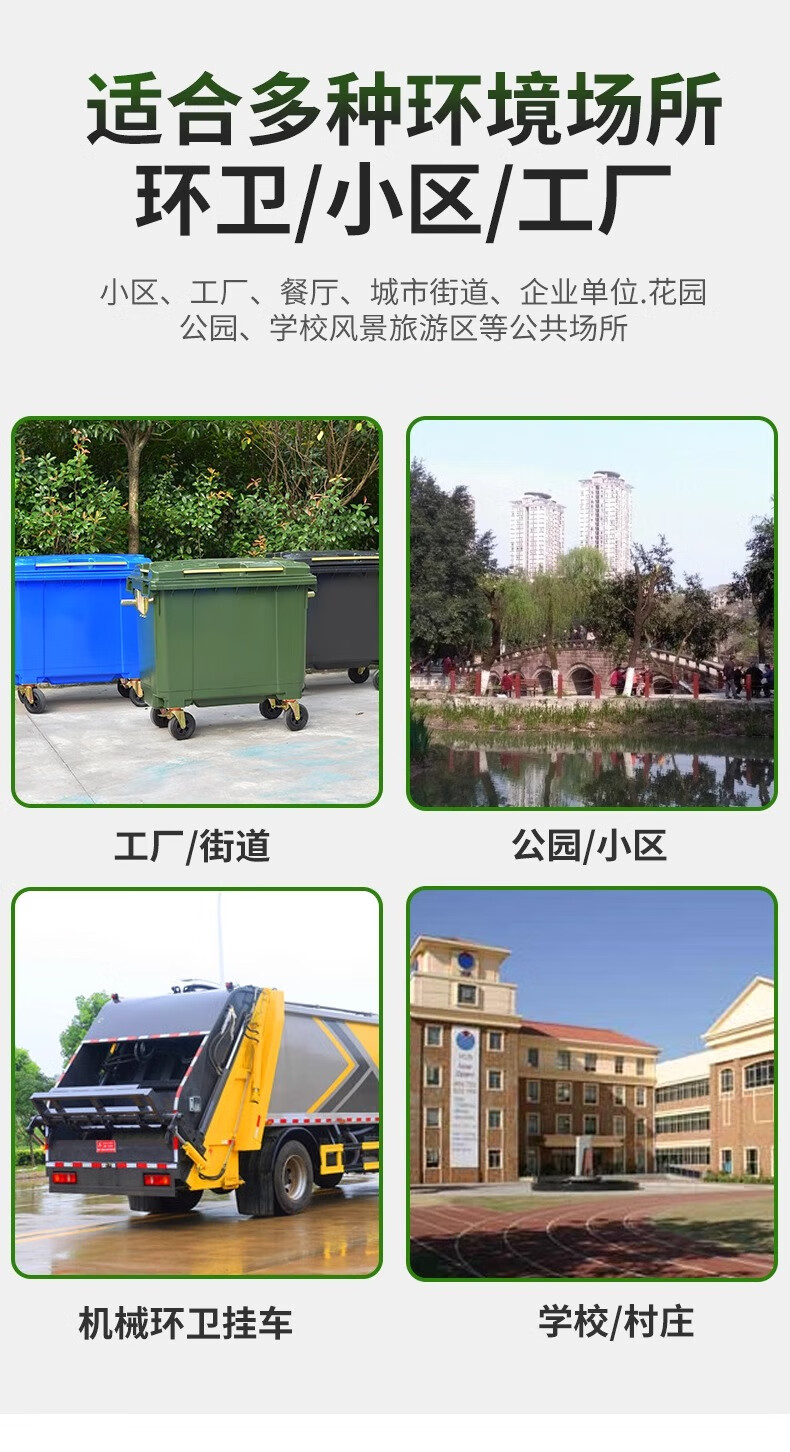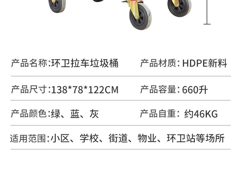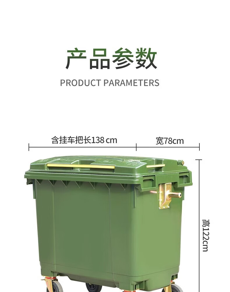 Kai Tak 660L outdoor large trash can commercial sanitation property large trash can hotel large municipal plastic bucket 660L sanitation thickened green without lid