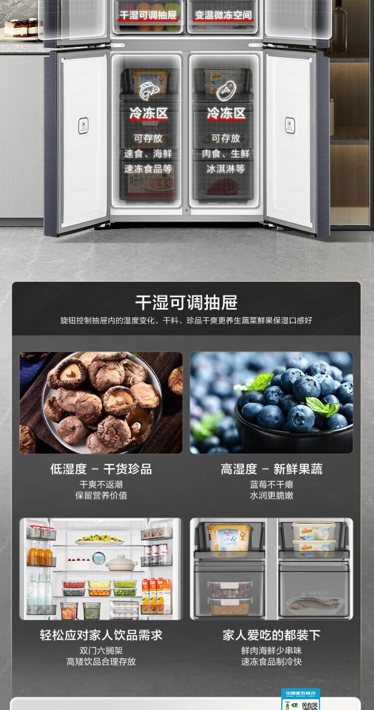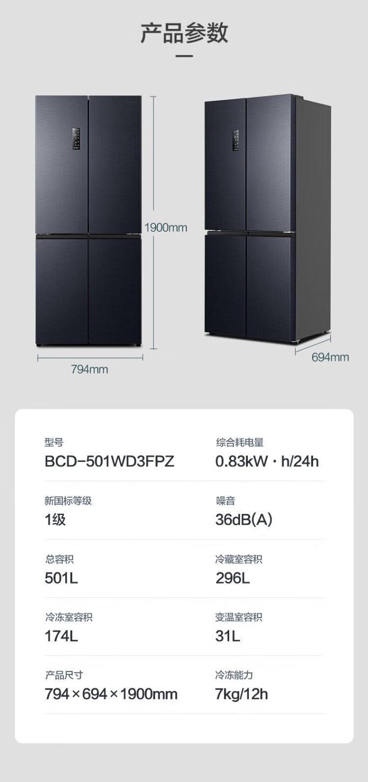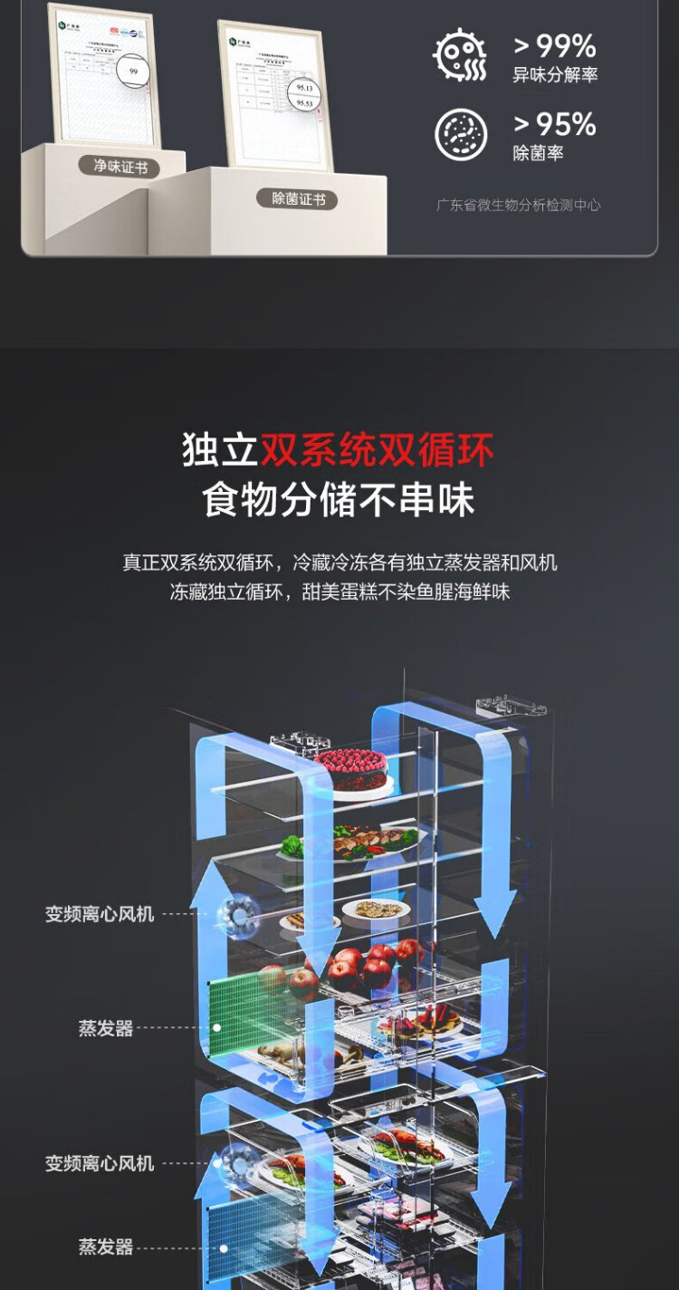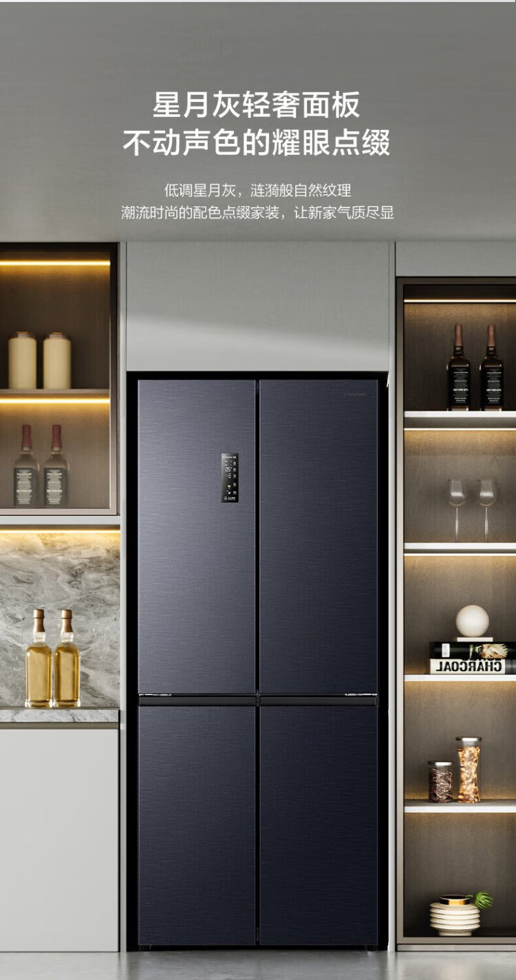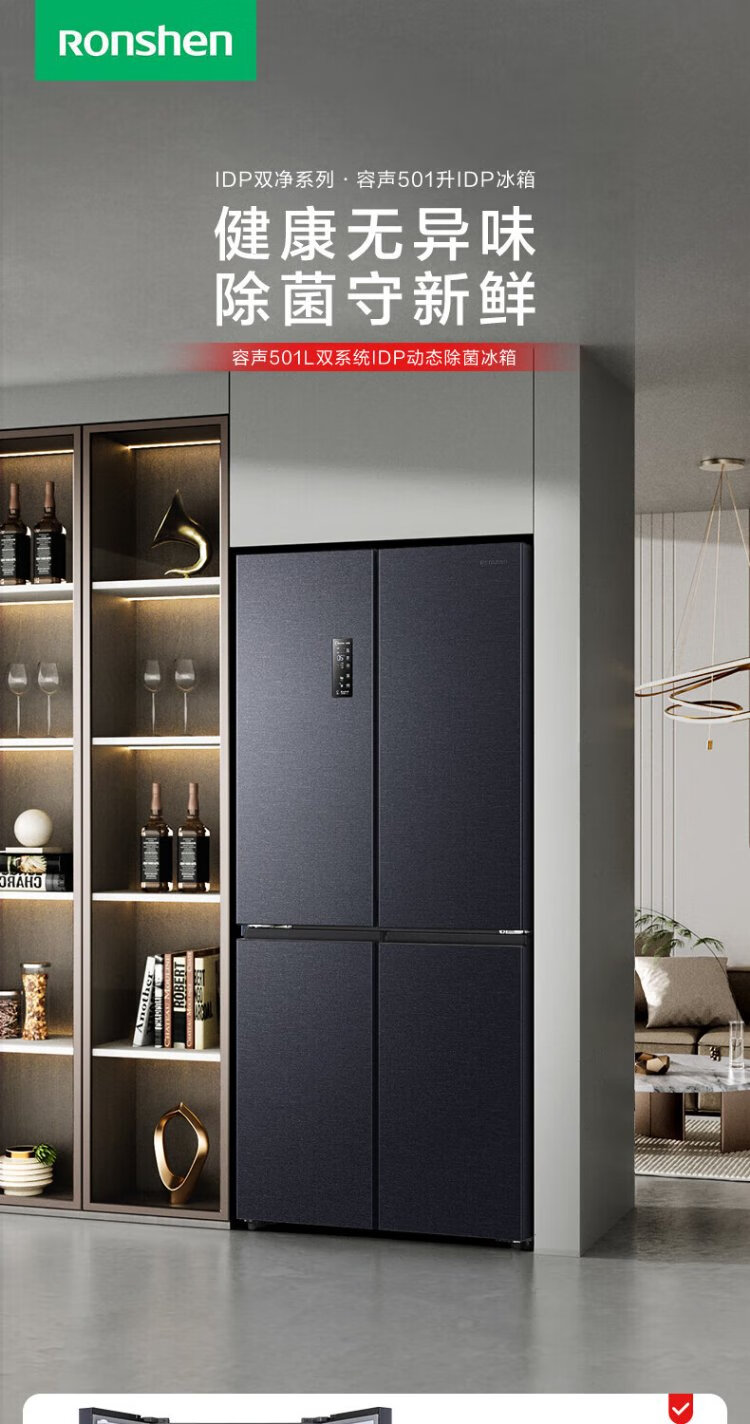 Rongsheng 501pro IDP odor-free cross-door four-door embedded first-class energy-efficiency variable frequency ultra-thin active sterilization dual-cycle dual-system smart refrigerator National subsidy gray BCD-501WD3FPZ