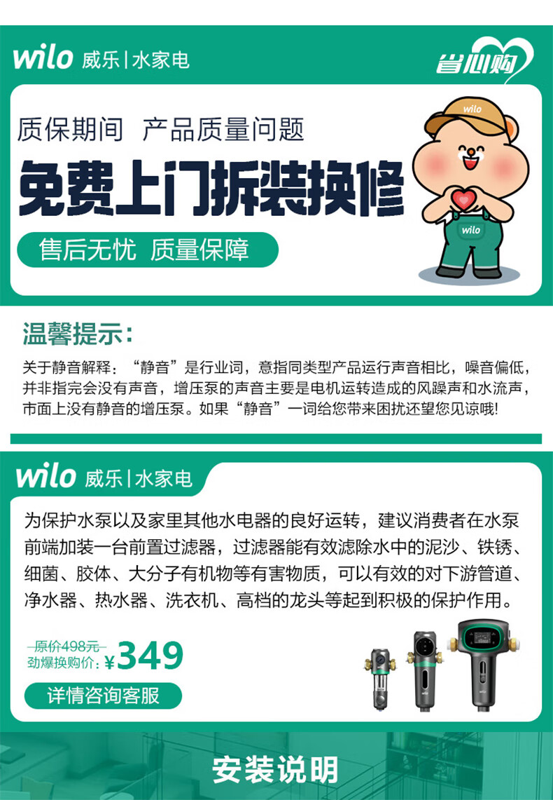 Wilo permanent magnet variable frequency booster pump household fully automatic silent water pump villa tap water pipe whole house intelligent booster pump HiMulti Mini version lift 32 meters