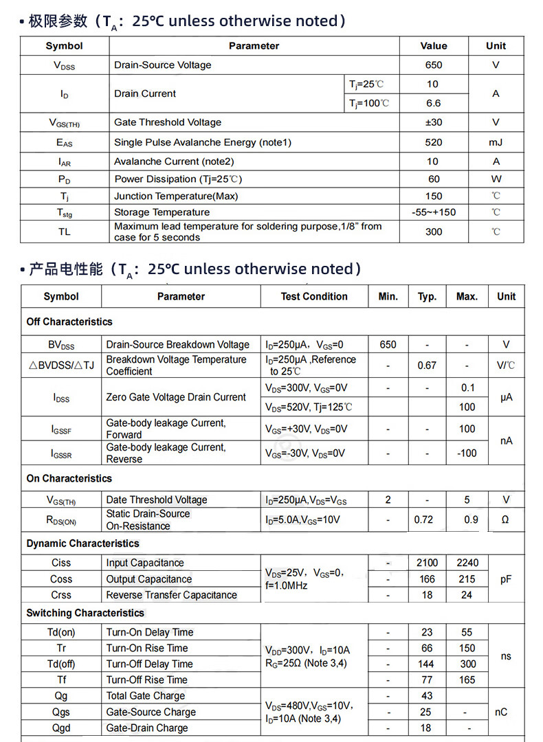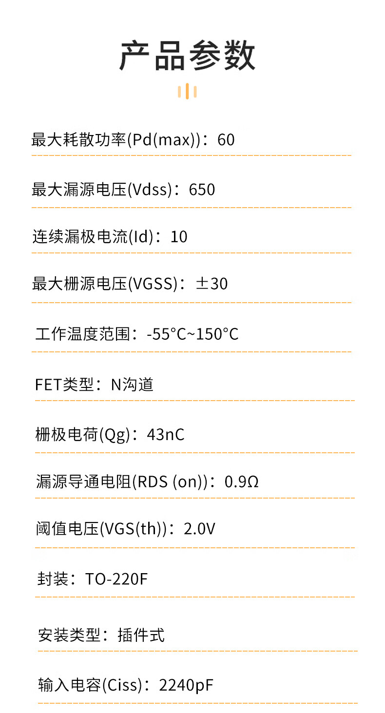 New field effect transistor (MOSFET) FIR10N65FG TO-220F-3 N channel FIR10N65FG TO-220F