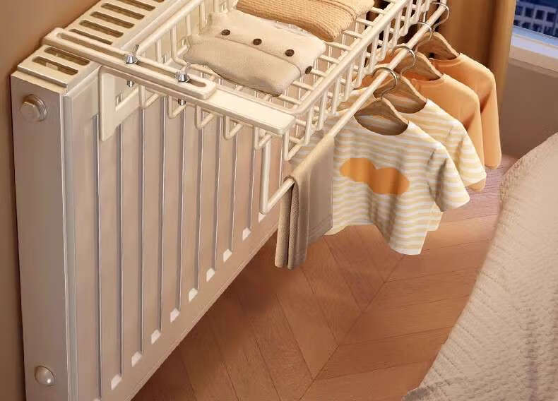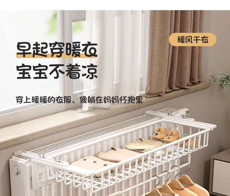 Kezitu radiator drying rack, clothes rack, storage rack above the heating pipe, bedroom and living room drying clothes artifact without punching, milk white 40CM, applicable thickness between 16cm and 16cm radiator