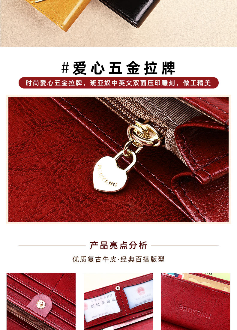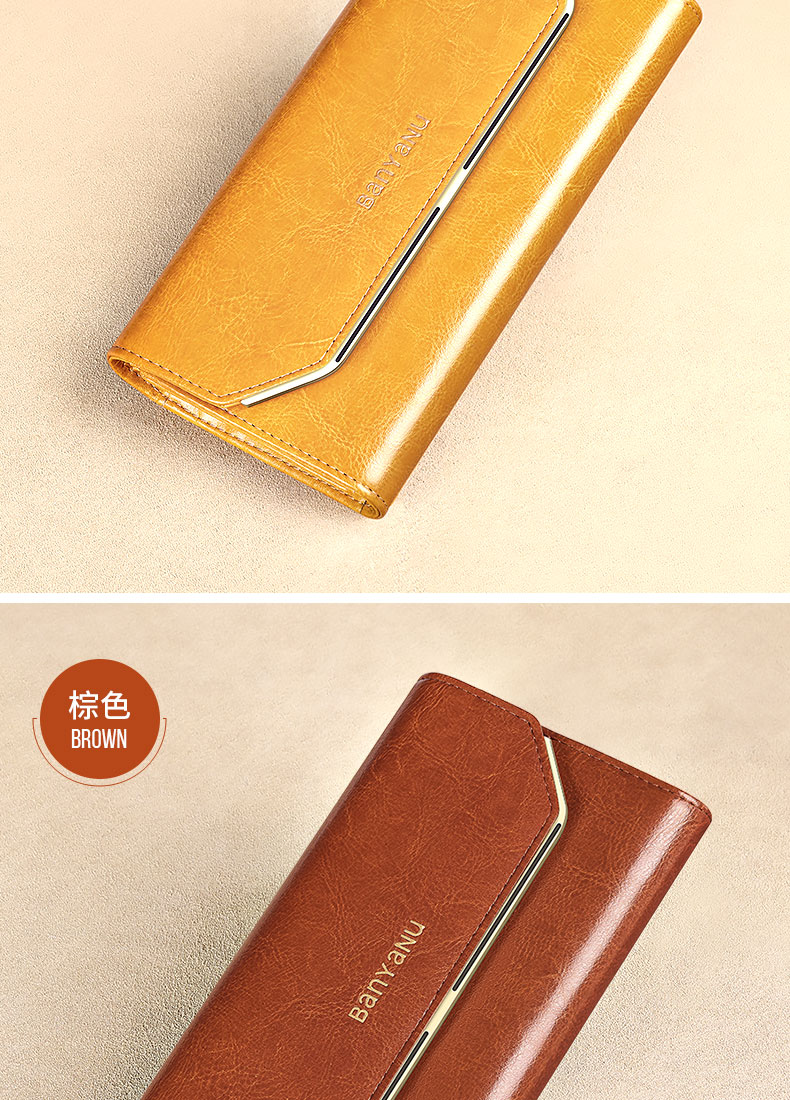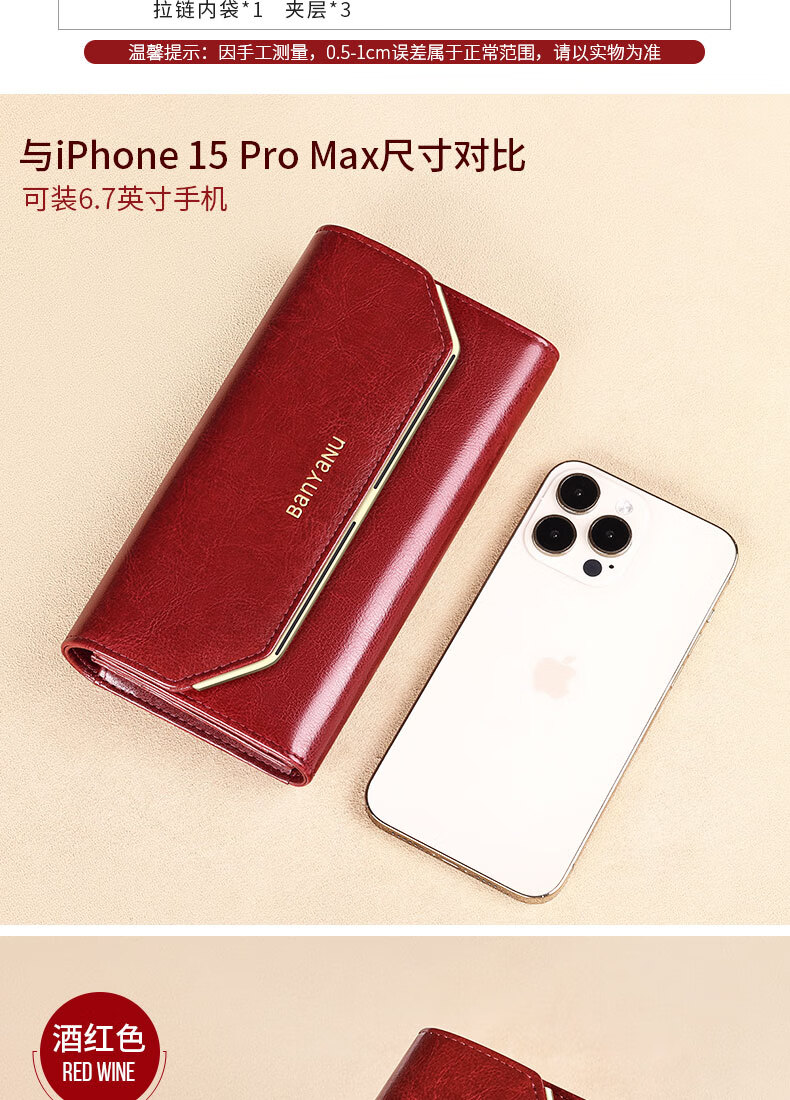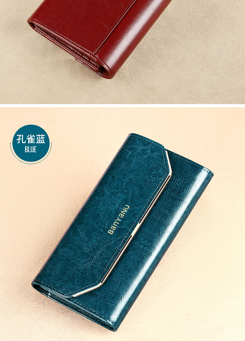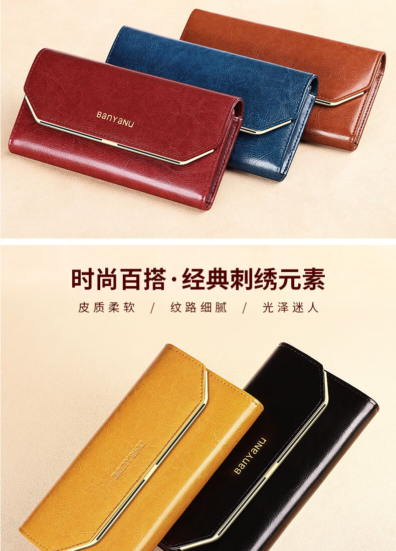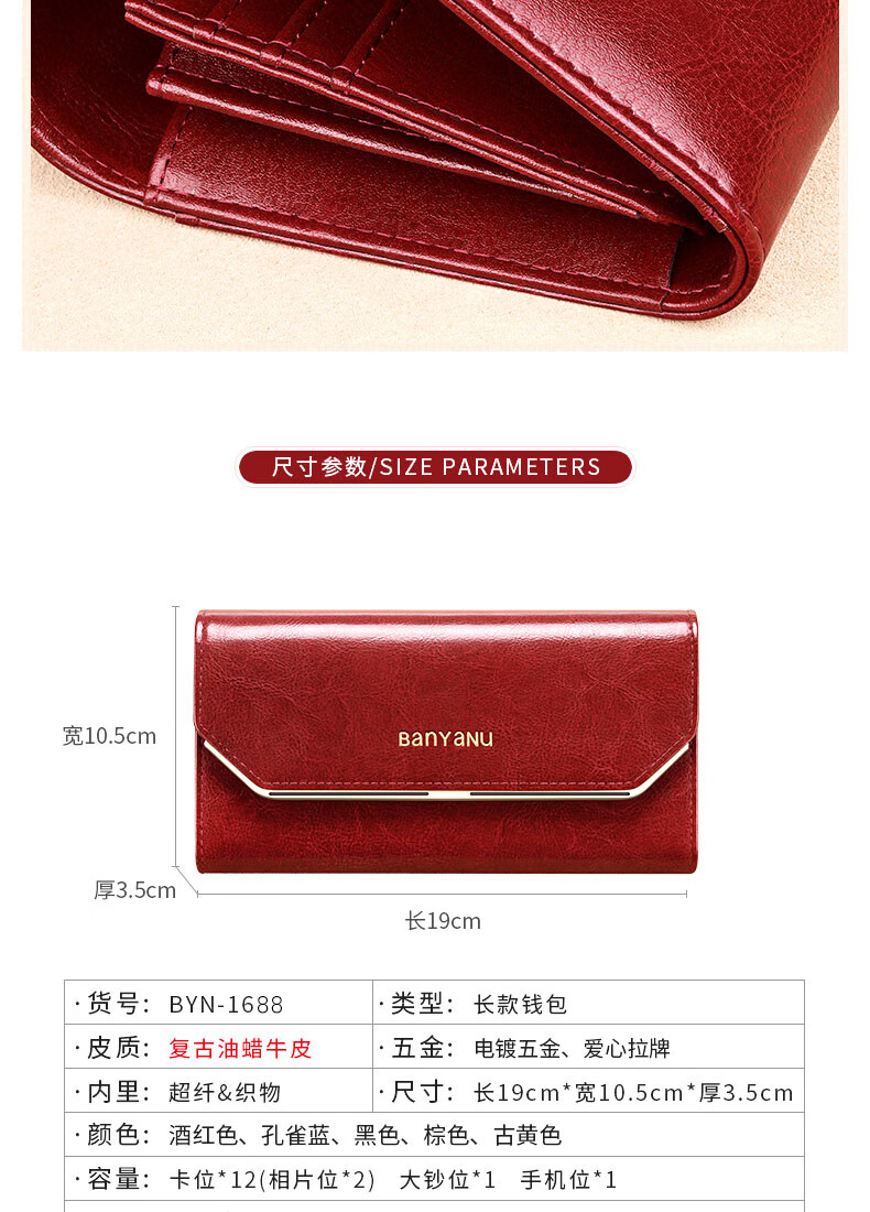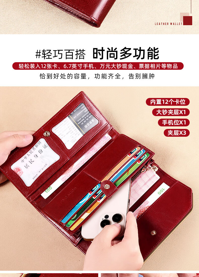 Banyanu Wallet Women's Long Genuine Leather 2024 New Large Capacity High-end Money Pursing Red Coin Purse Counter Wallet Burgundy-Anti-Theft Brush