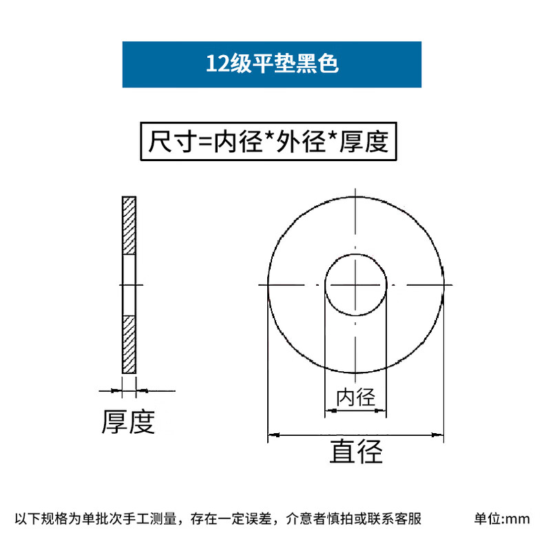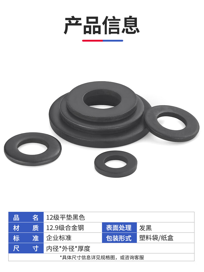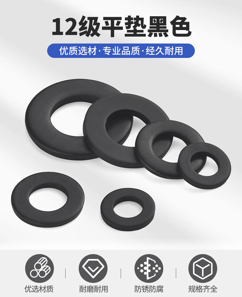 Jinggong 12.9 level flat gasket, black gasket, enlarged flat gasket, high strength, thickened and widened meson mold gasket, 20% off M16*38*5 (5 pieces), thickened level 8, 200HV