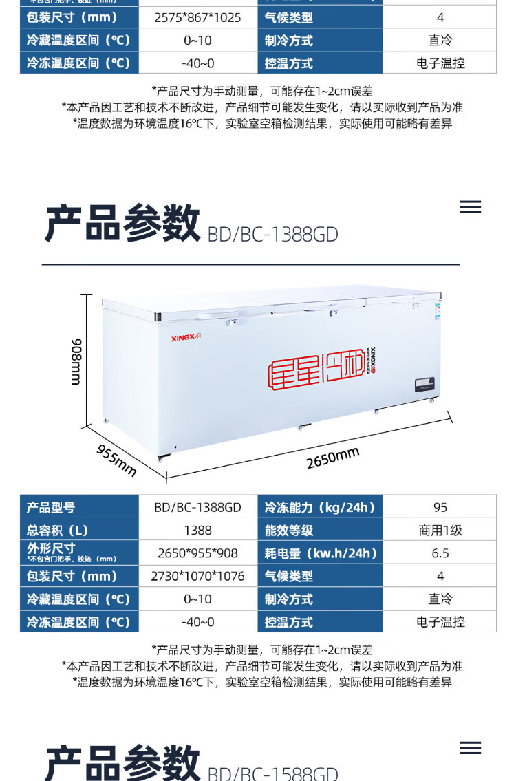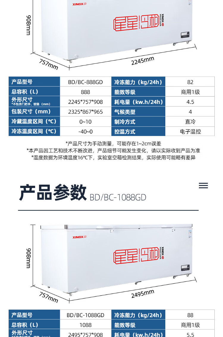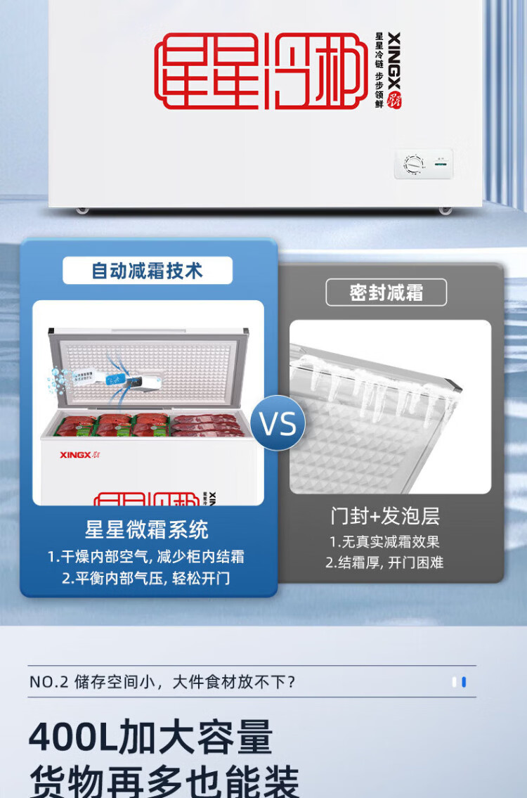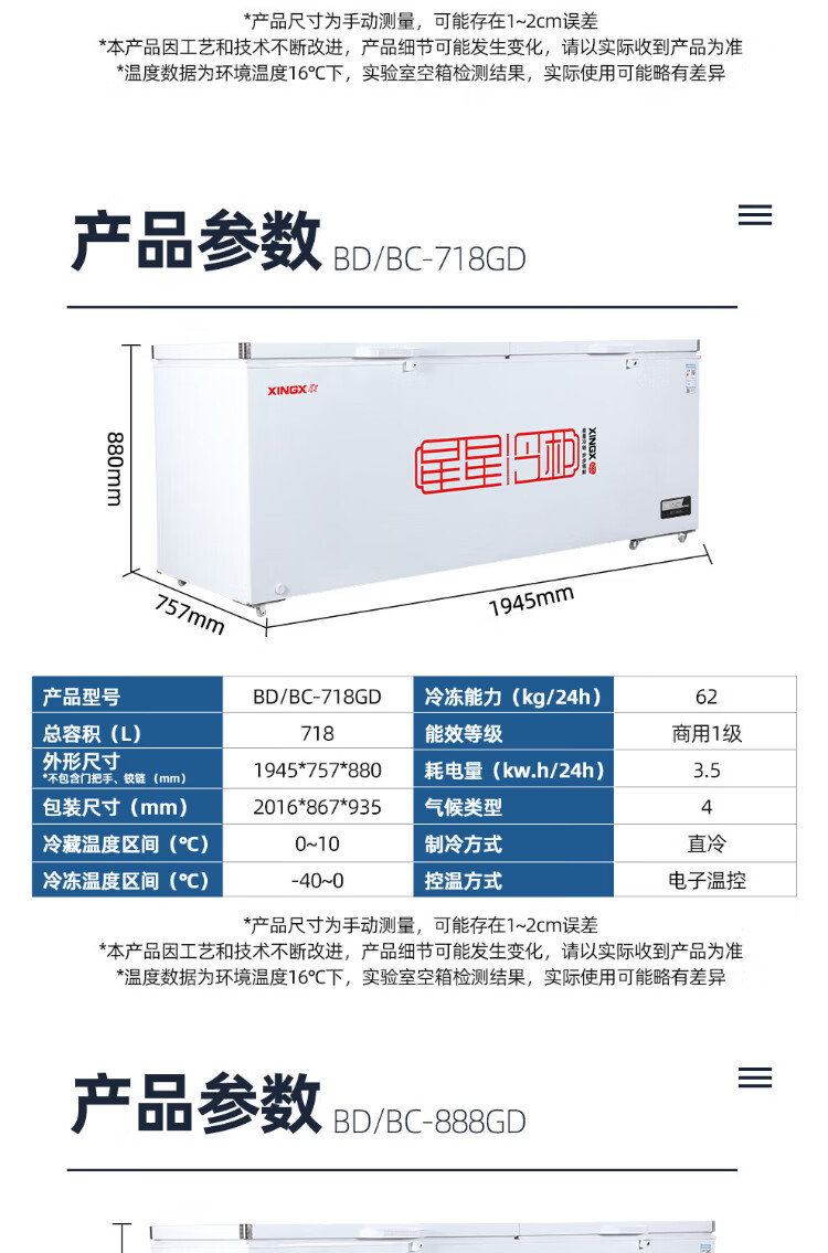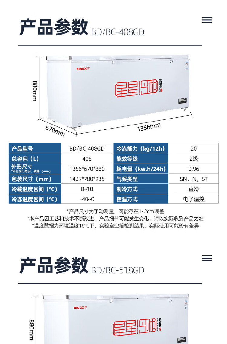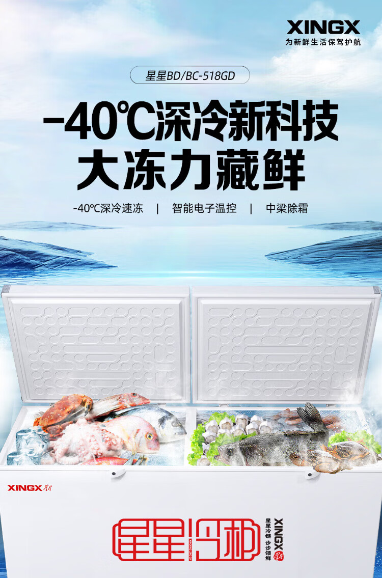 Star (XINGX) commercial freezer - 40 degrees ultra-low temperature deep cooling quick freezing large capacity single temperature freezer horizontal refrigeration freezing conversion ice cream cabinet supermarket convenience store kitchen fresh cabinet - 40 degrees 718 liter center beam defrost electronic temperature control 718GD
