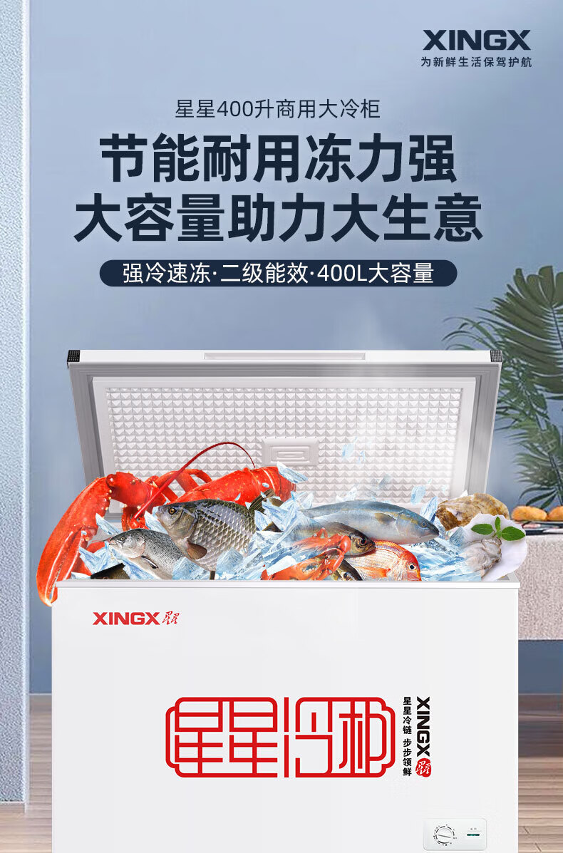 Star Freezer Commercial Large Capacity Large Freezer Commercial Full Freezer Home and Business Dual-Purpose Horizontal Refrigerator Freezer Ice Cream Cabinet Refrigerated Refrigerator Island Cabinet Cold Drink Supermarket Convenience Store Ice Cream -40 Degree Cryogenic 718 Liter Electronic Temperature Control Level 1 Energy Efficiency 718GD
