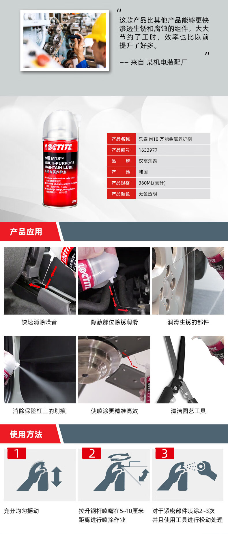 Loctite/loctite M18 (original 41940) anti-rust lubricant surface cleaning agent universal metal curing agent rust removal and anti-rust 360ml/can M18 360ml