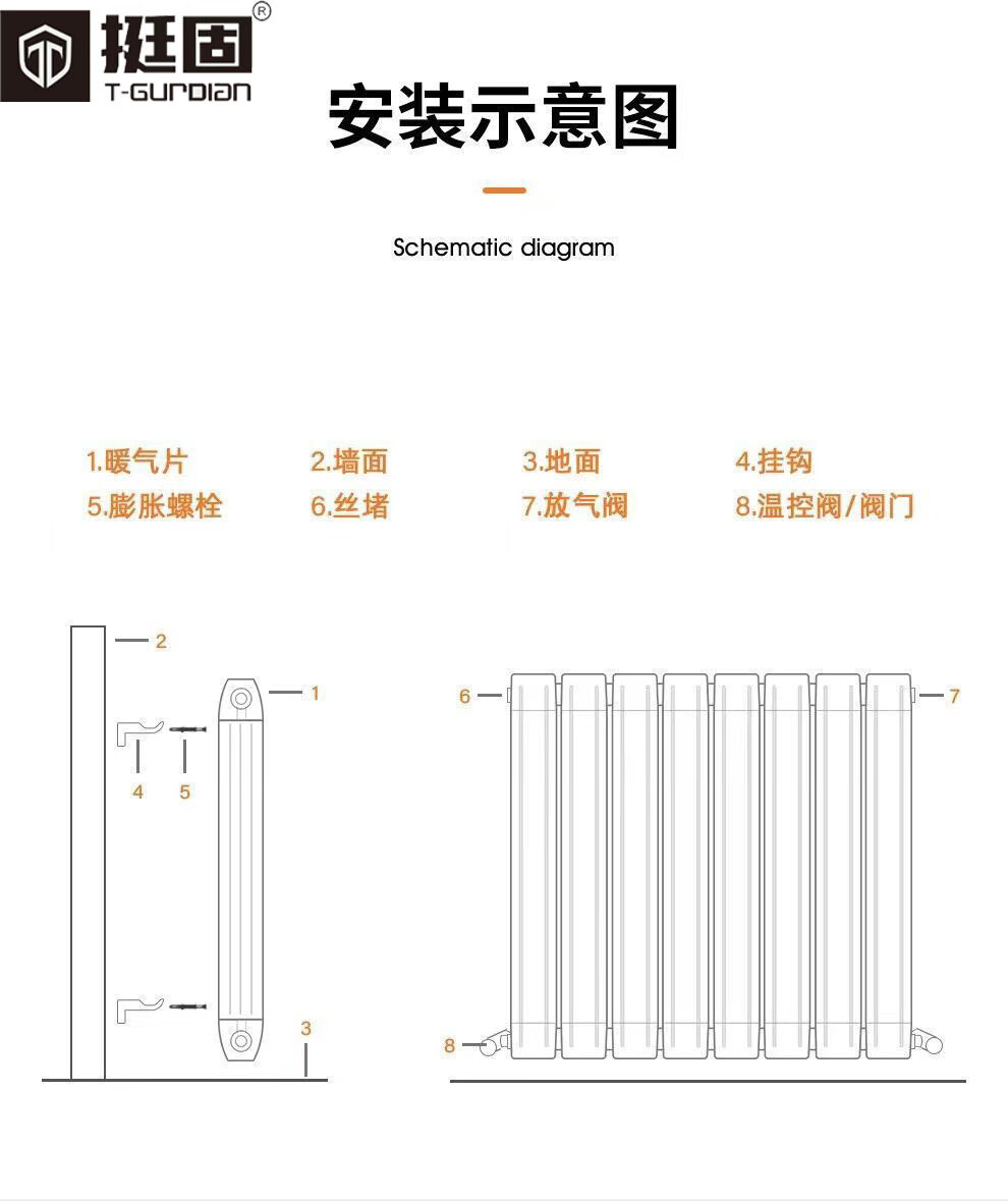 An Junsheng solid water heating radiator household radiator central heating circulation northern steel vertical heater main picture 67 cm high 6 columns set