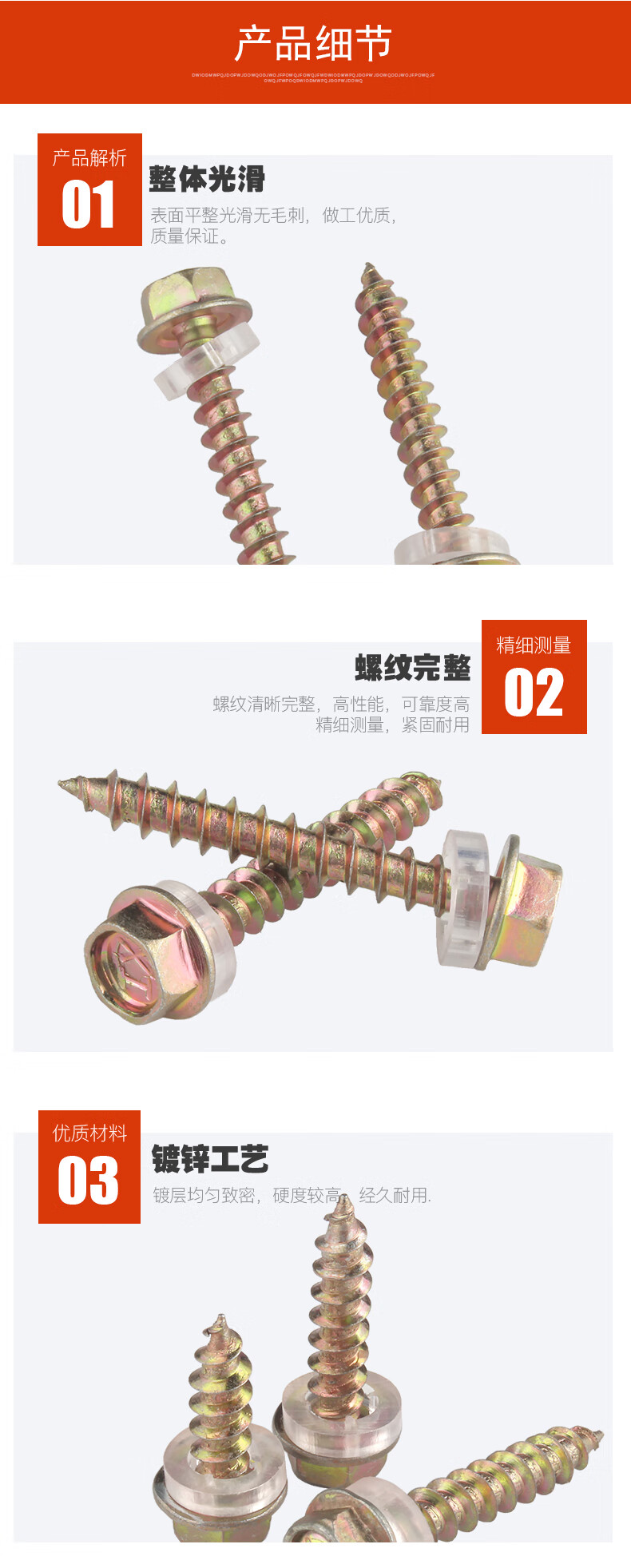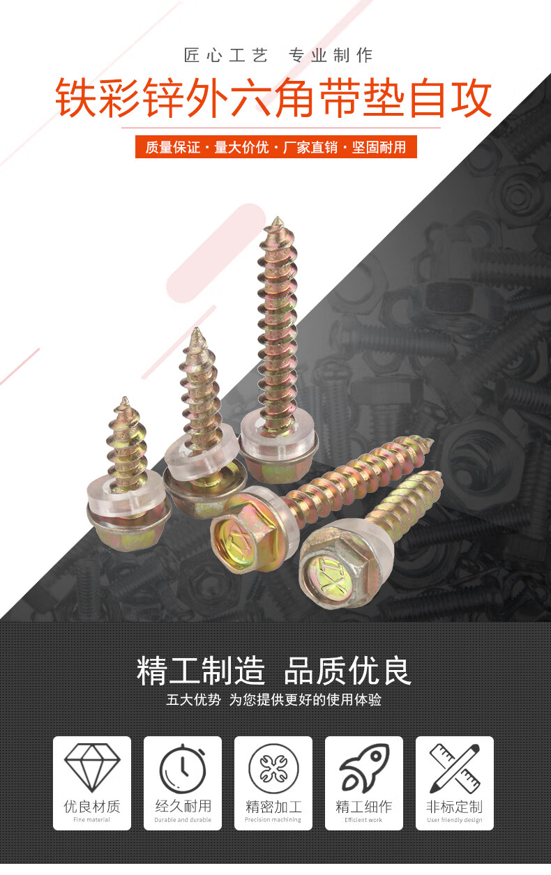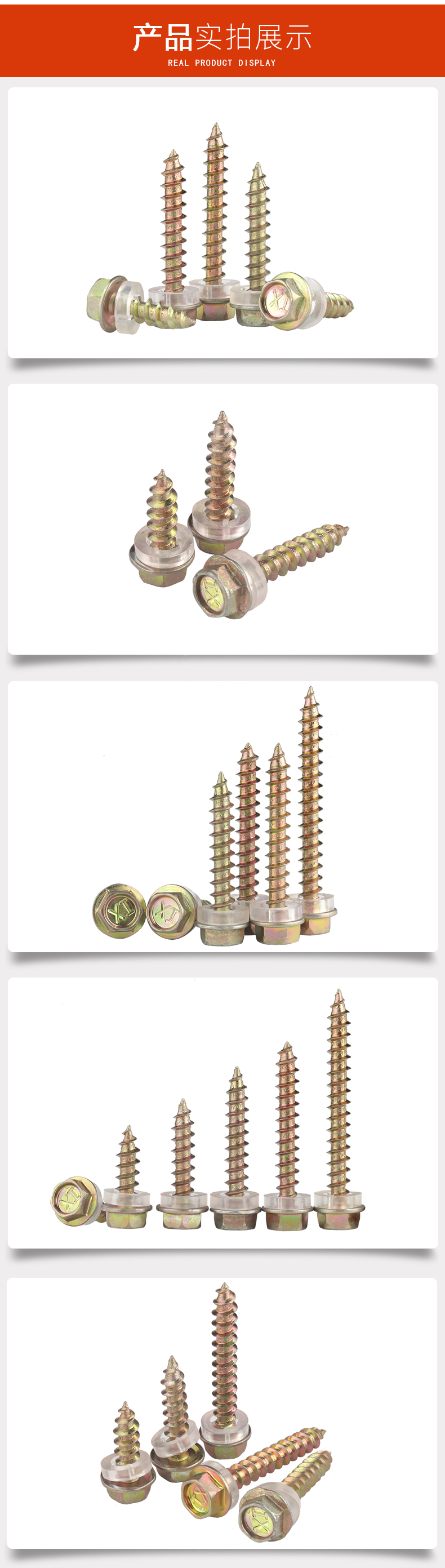 Baodefeng colorful zinc external hexagonal self-tapping screws with pointed tail and pointed head, drill tail, flange surface, rubber plug, self-tapping screws, M5x100, 50 pieces, colored zinc material