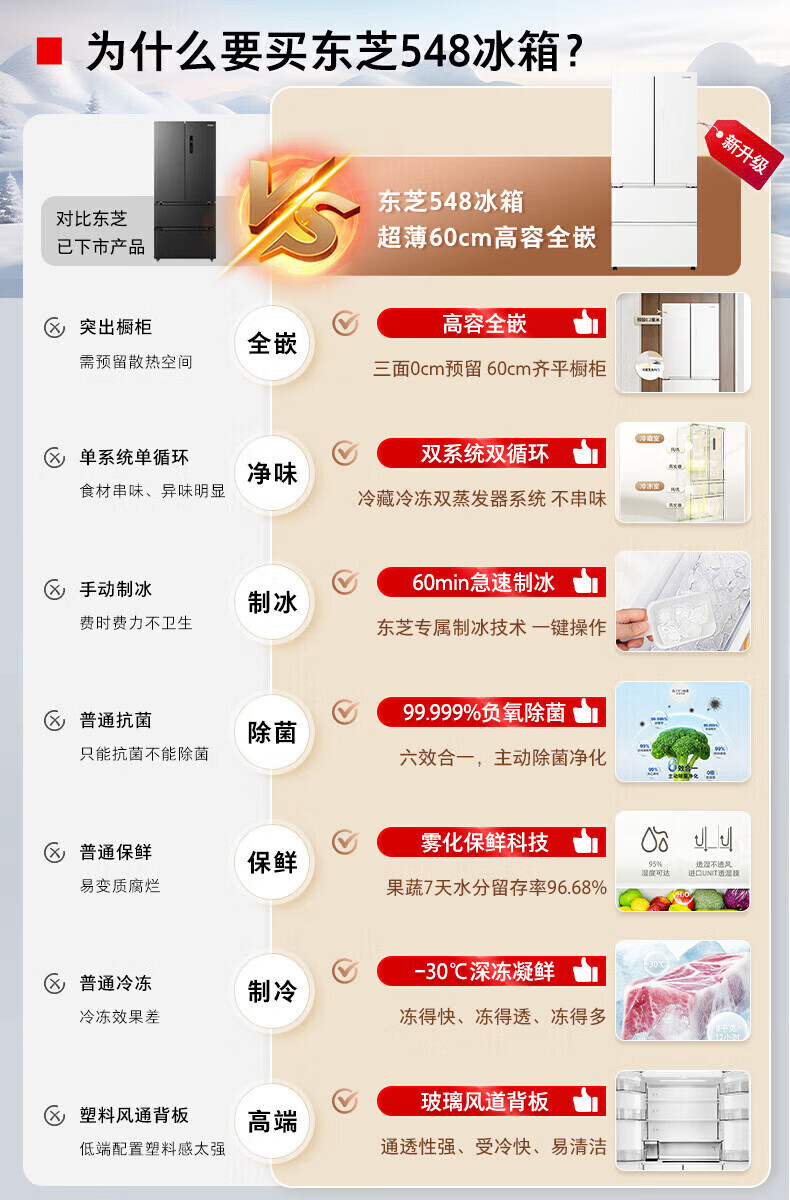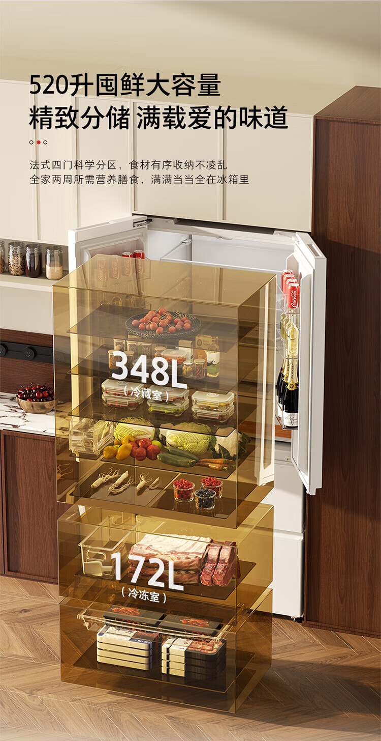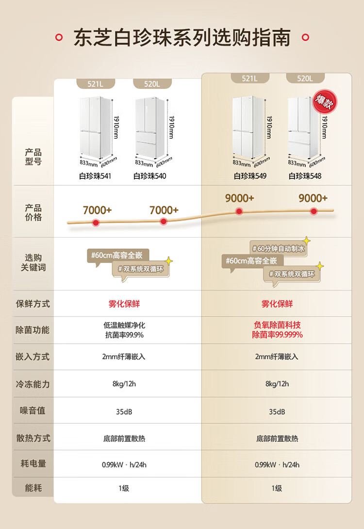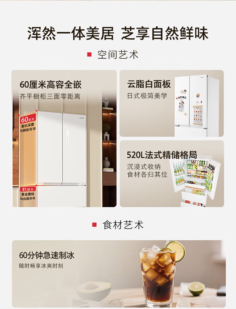 Toshiba 548 White Pearl household 520L French style multi-door refrigerator large capacity ultra-thin embedded dual system dual cycle air cooling frost-free automatic ice making freshness and sterilization GR-RF548WI-PM165 White Pearl