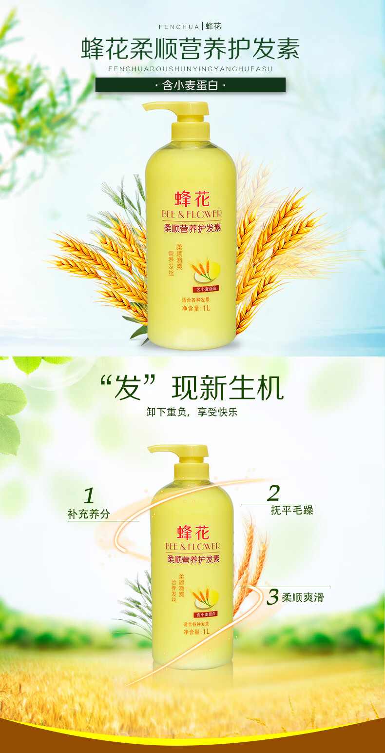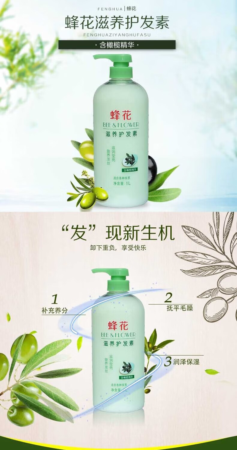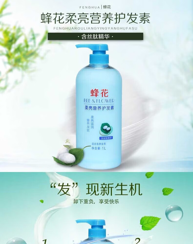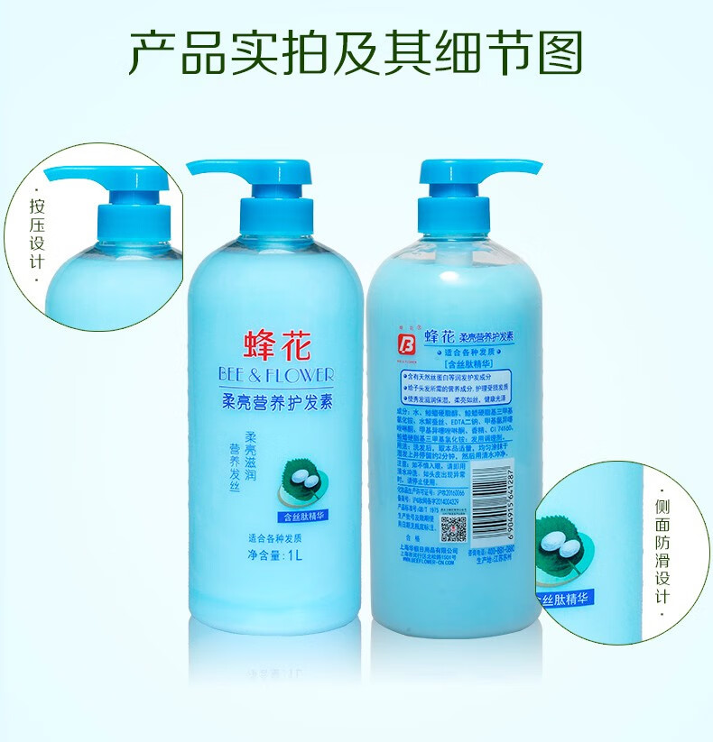 Bee Flower Conditioner for Men and Women, Smooth, Nutritious and Nourishing Conditioner (Repairs dry, permed and damaged hair), Silk Peptide Essence 1L + Shouwu Essence 1L