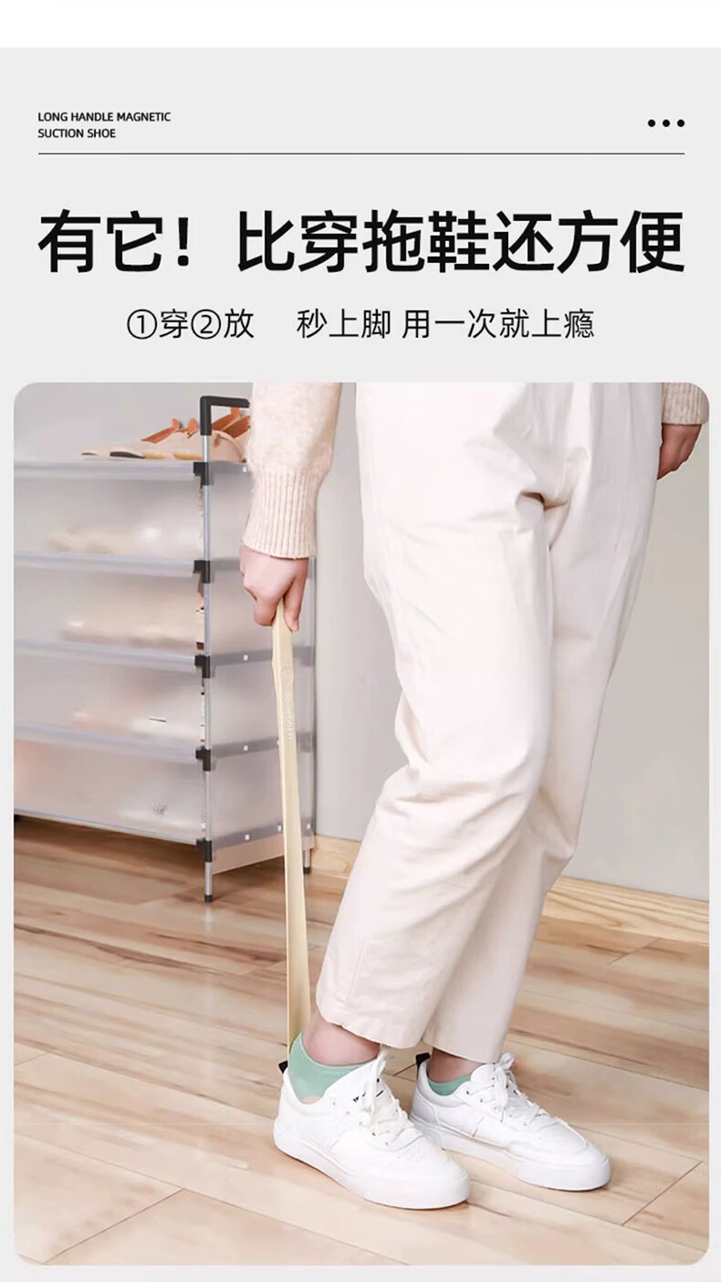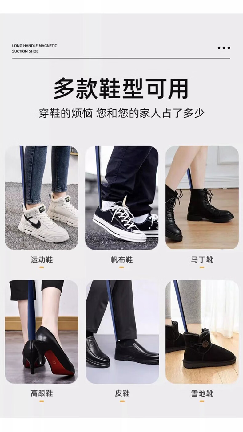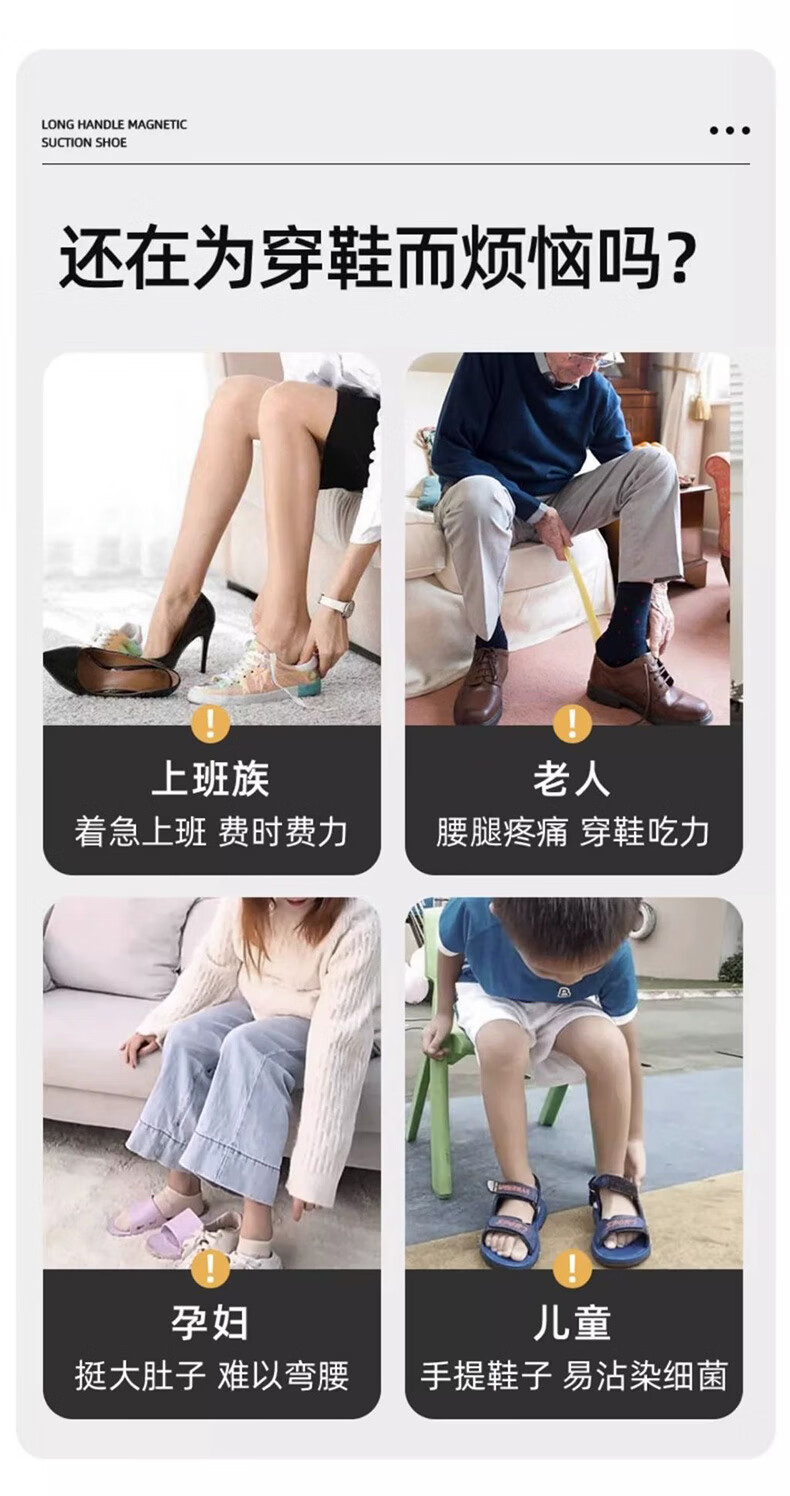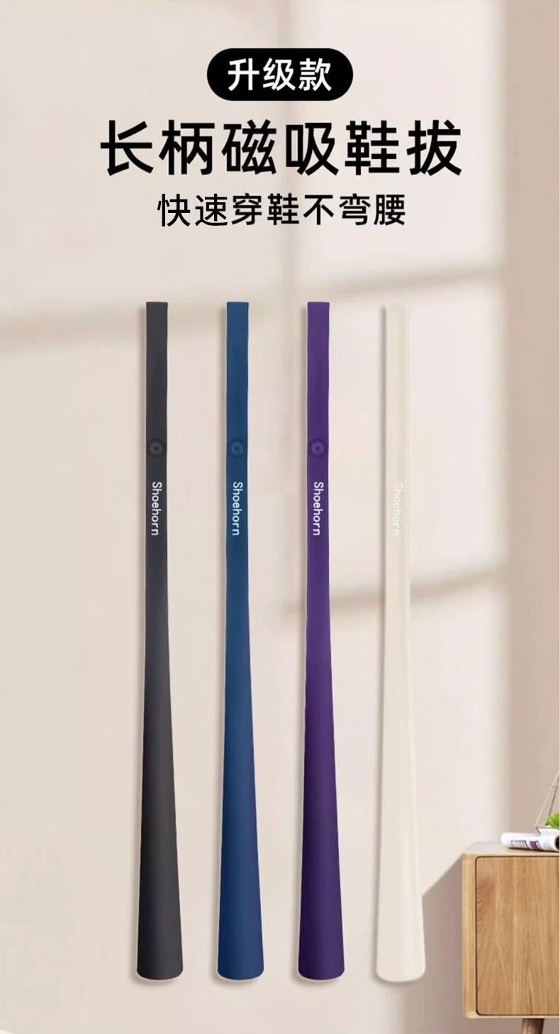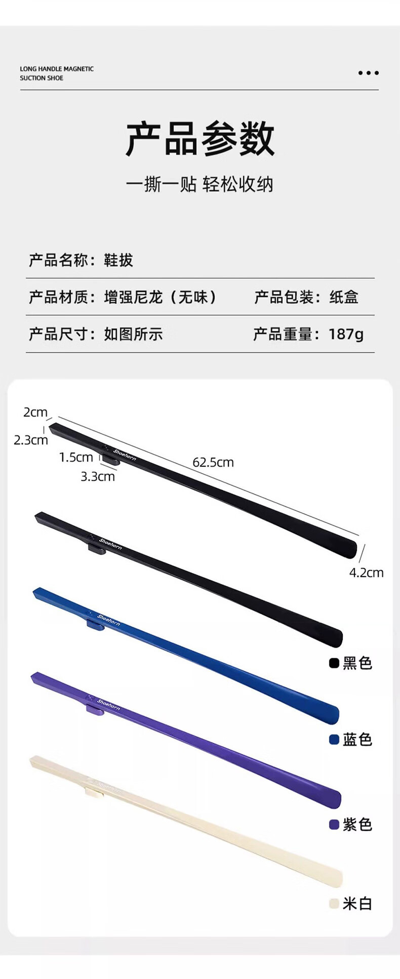 Baking fun shoehorn long handle household magnetic shoe picker plus elderly pregnant woman does not bend over shoe lifter shoe puller artifact 75cm extended matte black (magnetic suction) 75cm