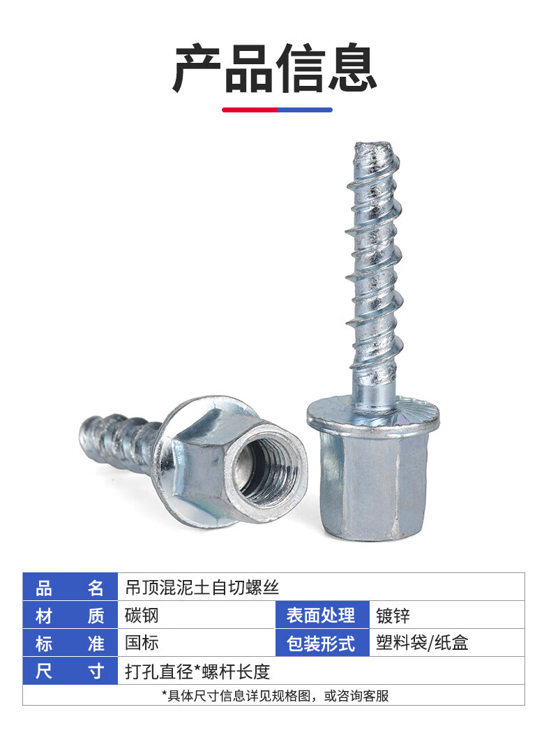 Jinggong (JINGGONG) new type of ceiling concrete self-cutting screw without main light ceiling artifact ceiling anchor screw rod connection and fixation 6*35 M8 screw rod special (100 pieces)