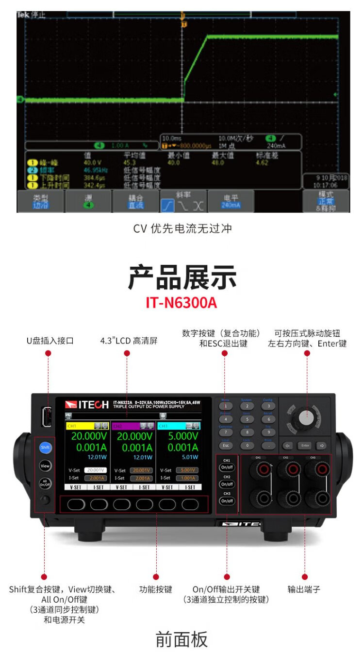 ITECH three-channel adjustable regulated linear DC power supply tester IT-N6300 series IT-N6323A (60V/3A*2 9V/5A)