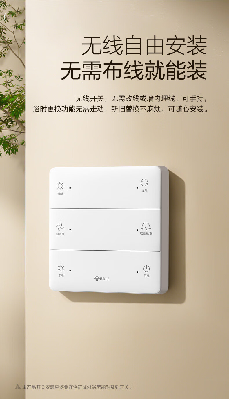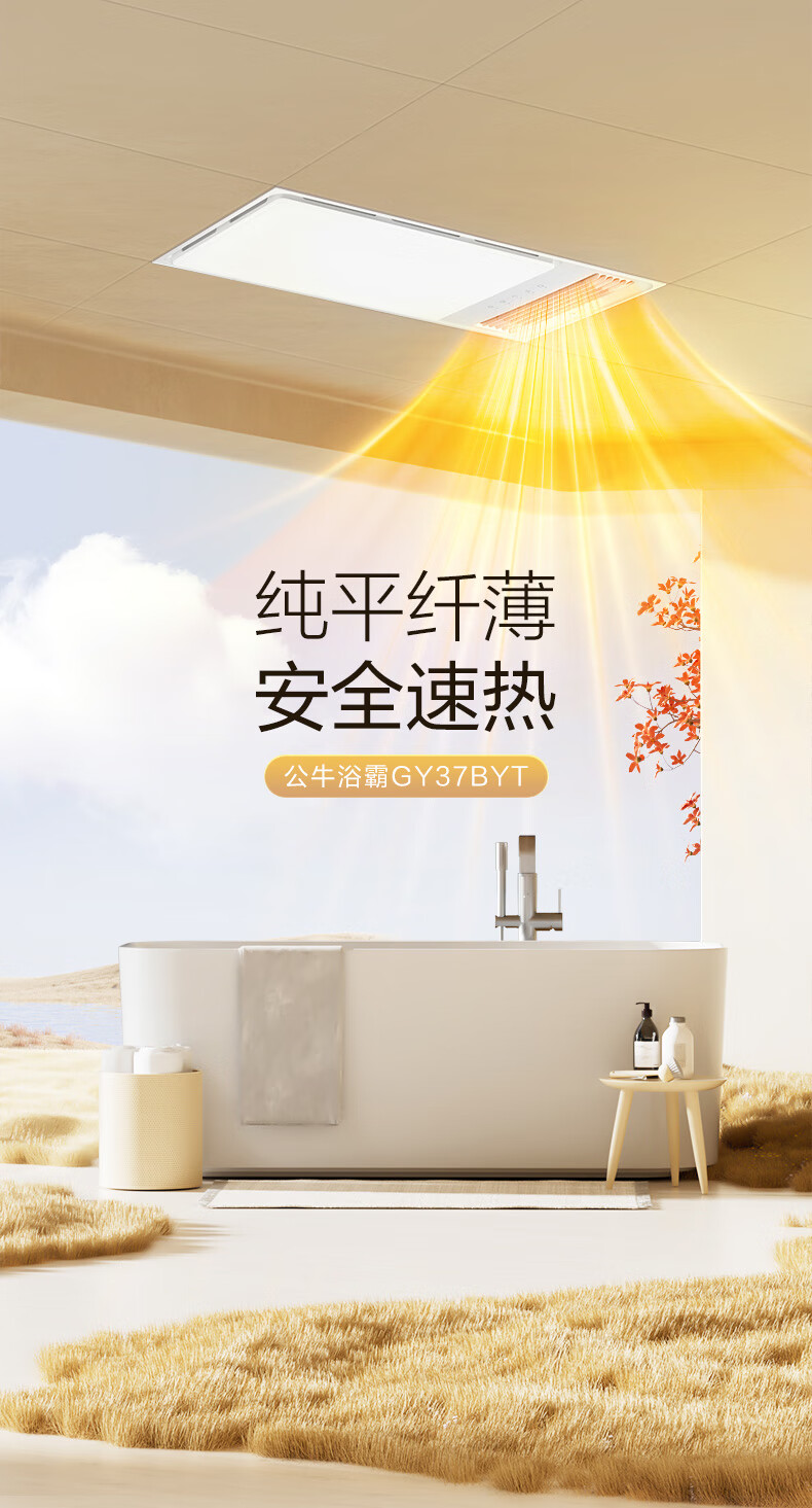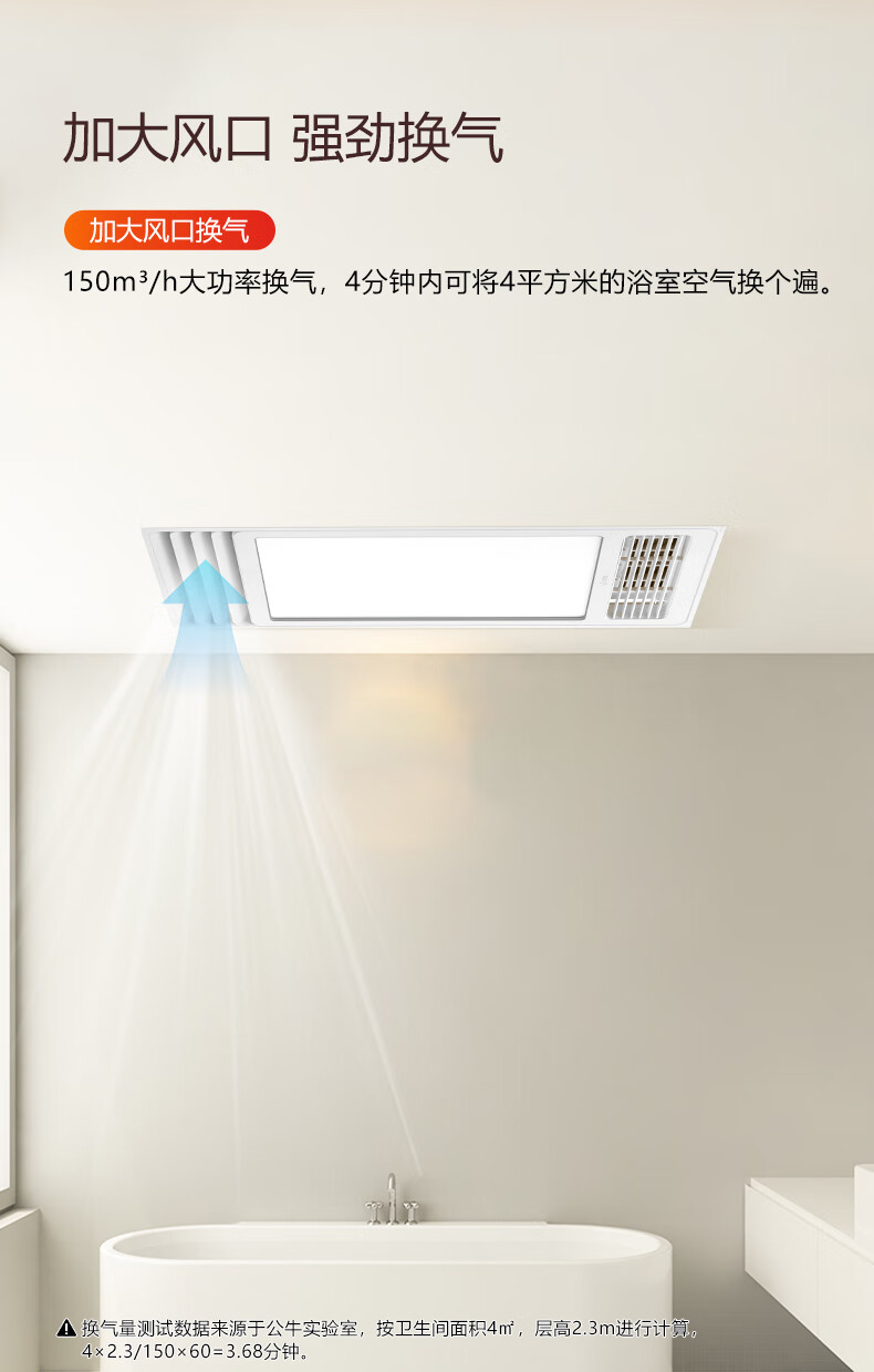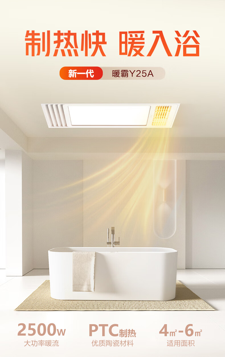 Bull (BULL) air heating bathroom heater lighting exhaust integrated 300x600 multi-functional bathroom toilet heater official package installation Y25A/4-in-1 2500W household ceiling all-in-one machine 2450W+ high-efficiency fast heating
