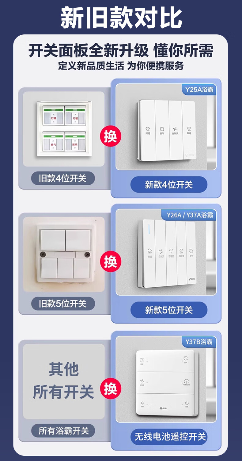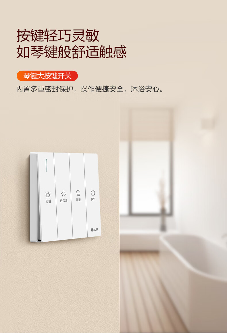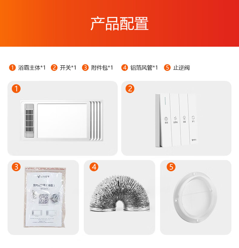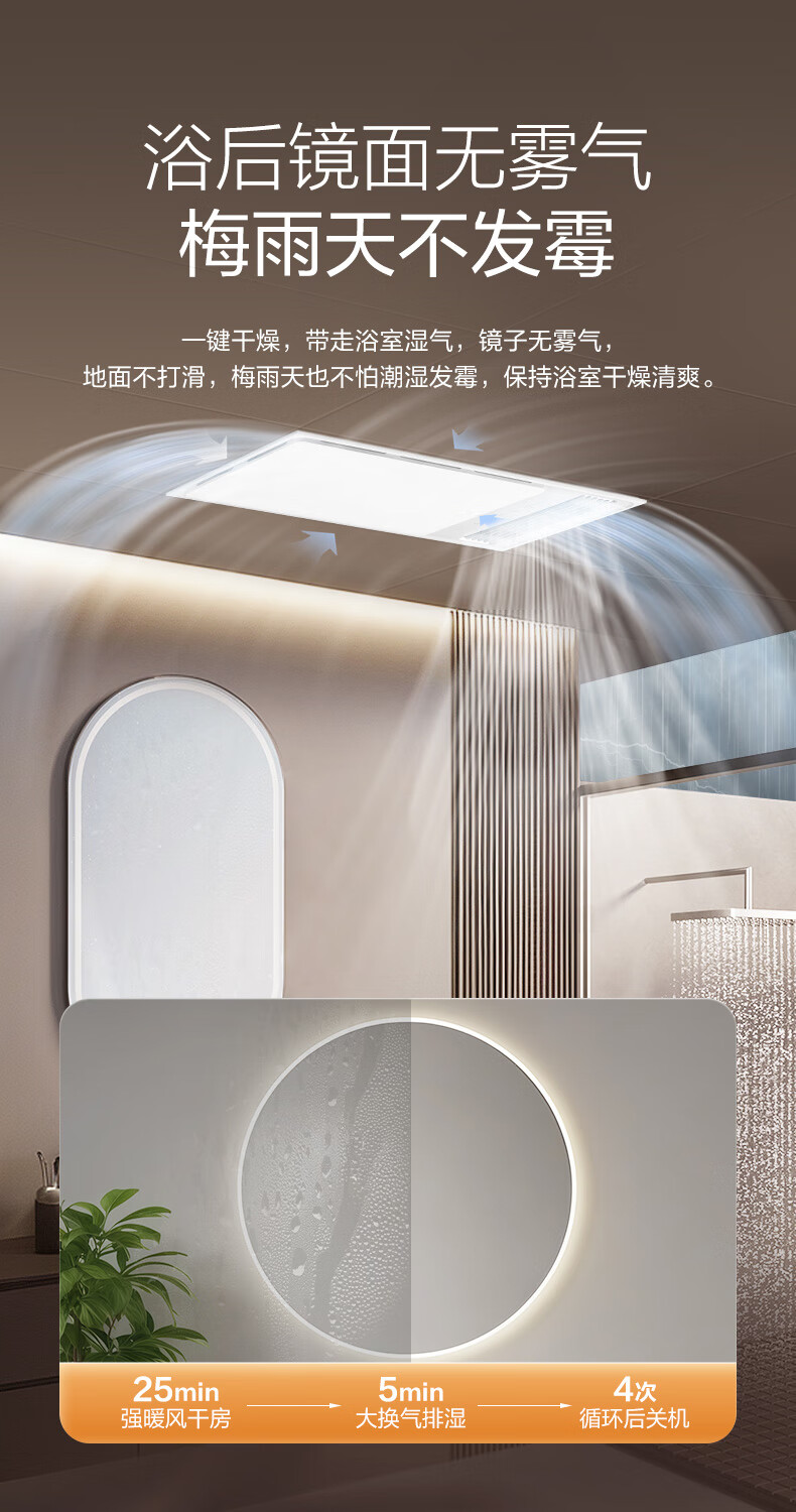 Bull (BULL) air heating bathroom heater lighting exhaust integrated 300x600 multi-functional bathroom toilet heater official package installation Y25A/4-in-1 2500W household ceiling all-in-one machine 2450W+ high-efficiency fast heating