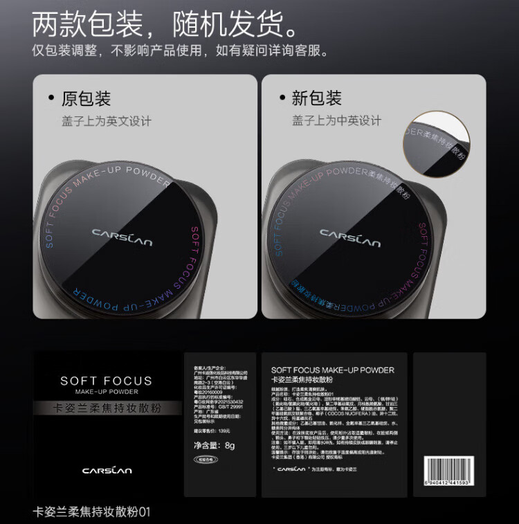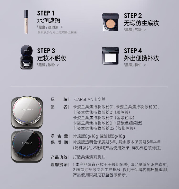 Carslan Black Magnetic Loose Powder Setting Powder Oil-Controlling Long-lasting Waterproof and Sweat-proof Not Easy to Pull Out and Not Easy to Take Off Makeup New Year's Gift for Girls HOT 1.0 Versatile - Transparent Color (Dry/Mixed Skin)