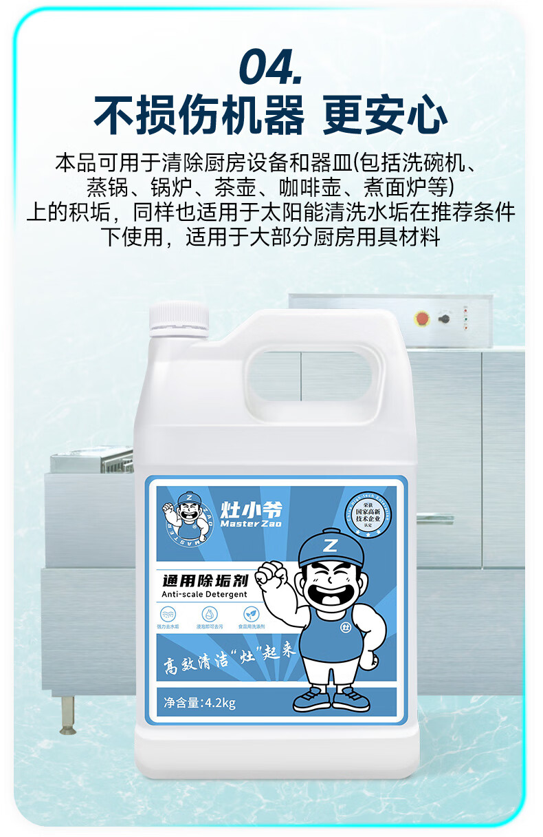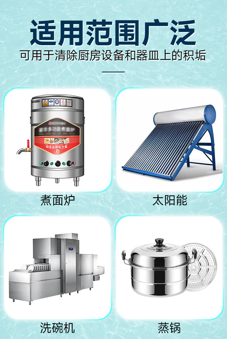 Universal descaler, commercial boiler steamer, powerful scale and rust removal, stainless steel cleaner, solar cleaning agent