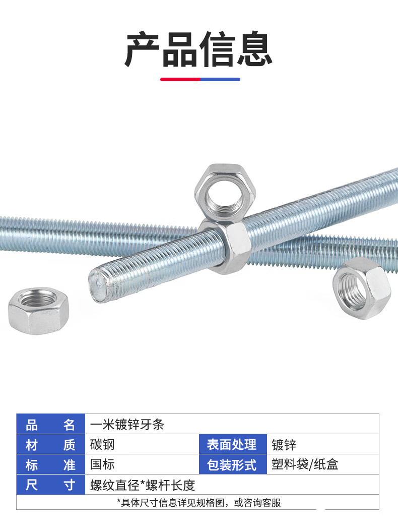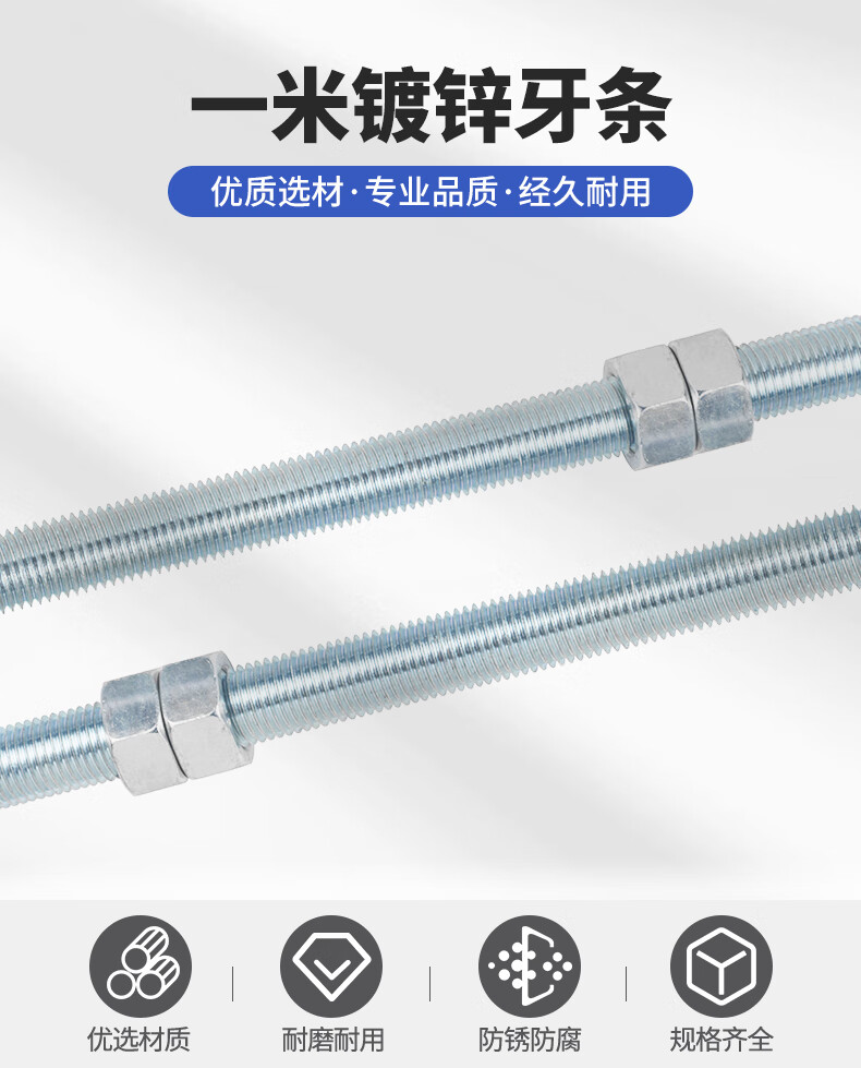 Jinggong (JINGGONG) galvanized 8.8 grade screw screw nut set fully threaded threaded screw rod thread m5m6m8m10m12m30 4.8 grade M16*1 meter (1 piece) free nut