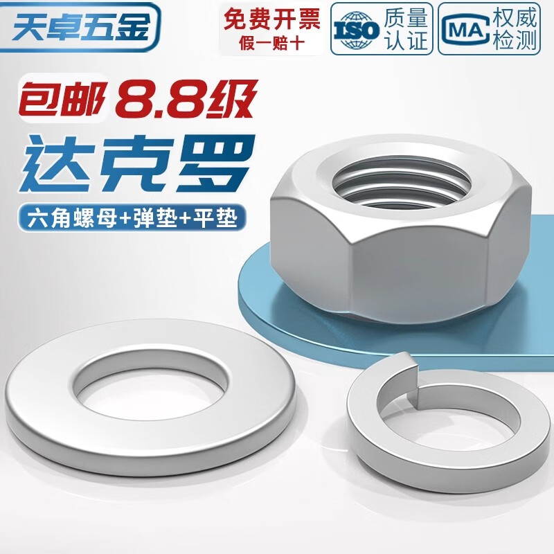 Tianzhuo Hardware 8.8 grade Dacromet hexagonal nut flat washer spring washer nut flat washer spring washer M3M5M6M8M14M16M20 M16*30*3 5 flat washers