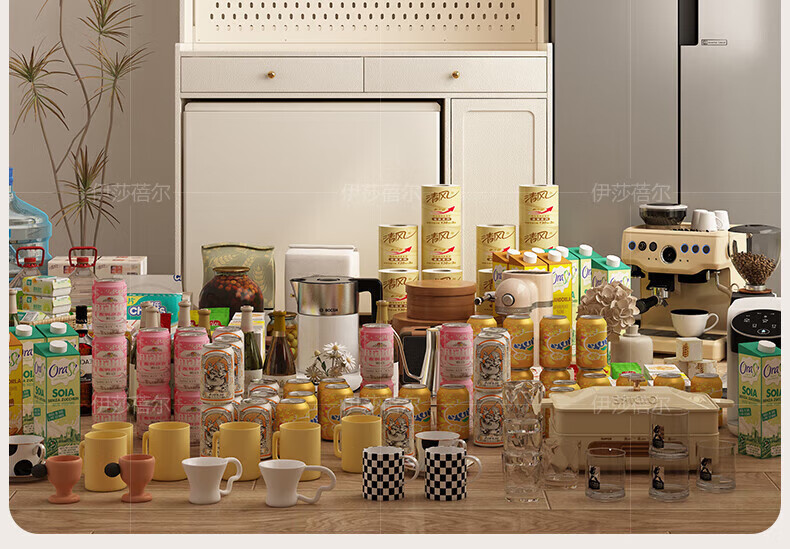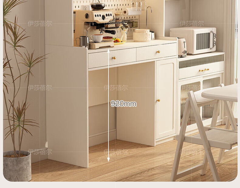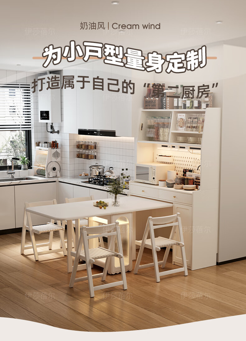 Isabel cream style solid wood folding dining table retractable home 1.2m sideboard integrated wall kitchen storage wine cabinet 1.7m dining table sideboard integrated - with two chairs basic model - 1.2m sideboard