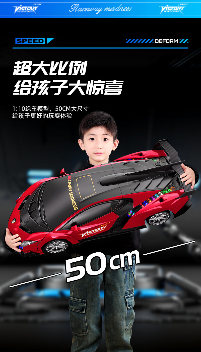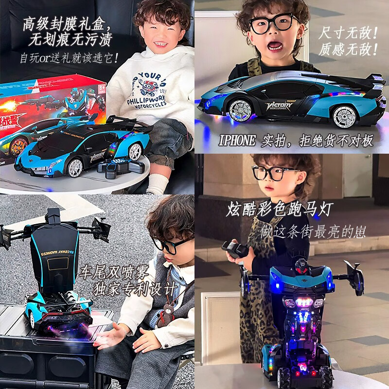 Live Stone Remote Control Car Remote Control Car Toy Boy King Kong Transformation Car Robot Children's Birthday Gift 3-6-12 Years Old Transformer Blue 50cm+Gesture+Stunt Wheel+Gift Box New Year Gift Children's Day Programming Gesture Sensing 6-14 Years Old Large Toy Car