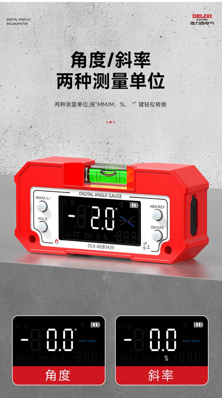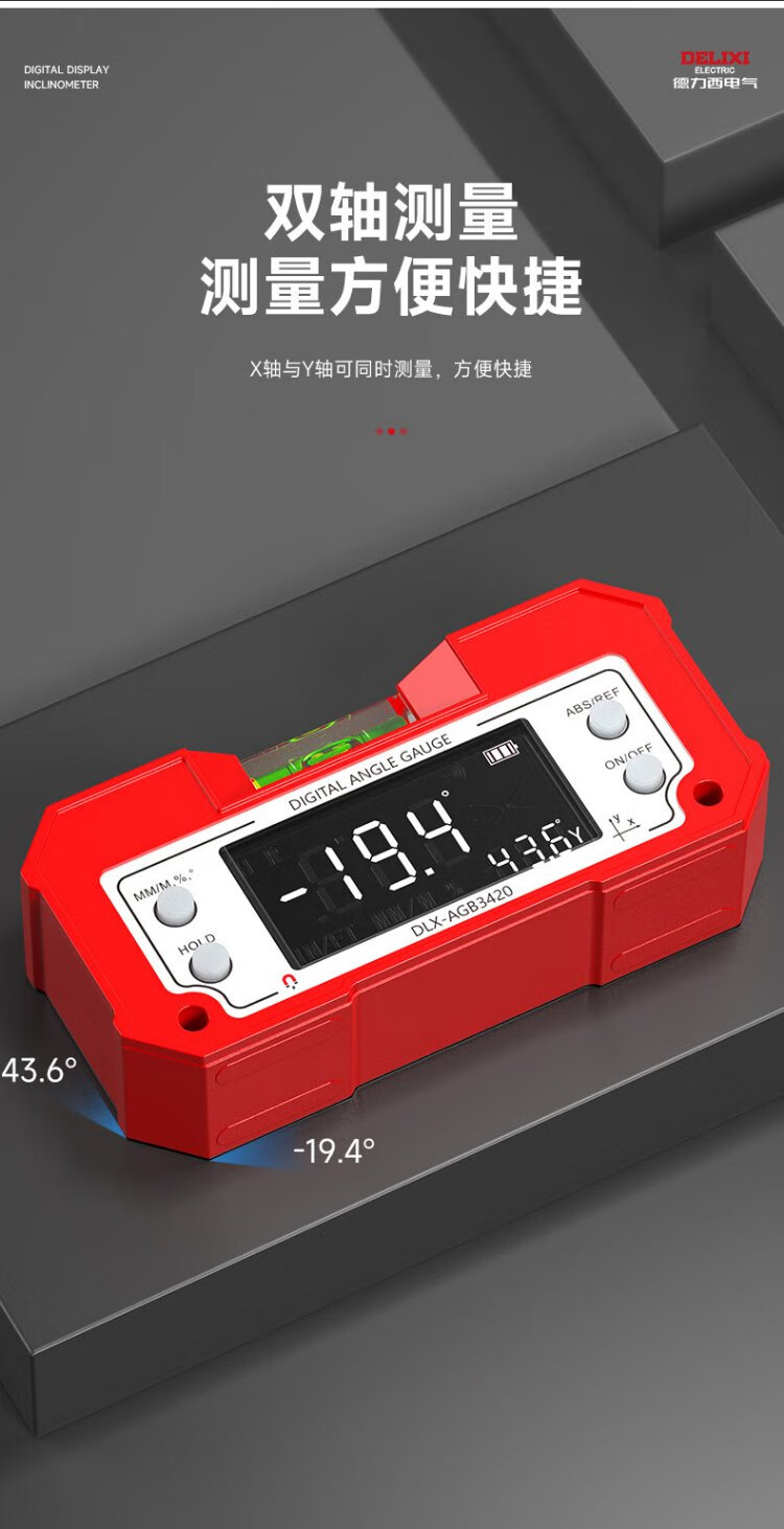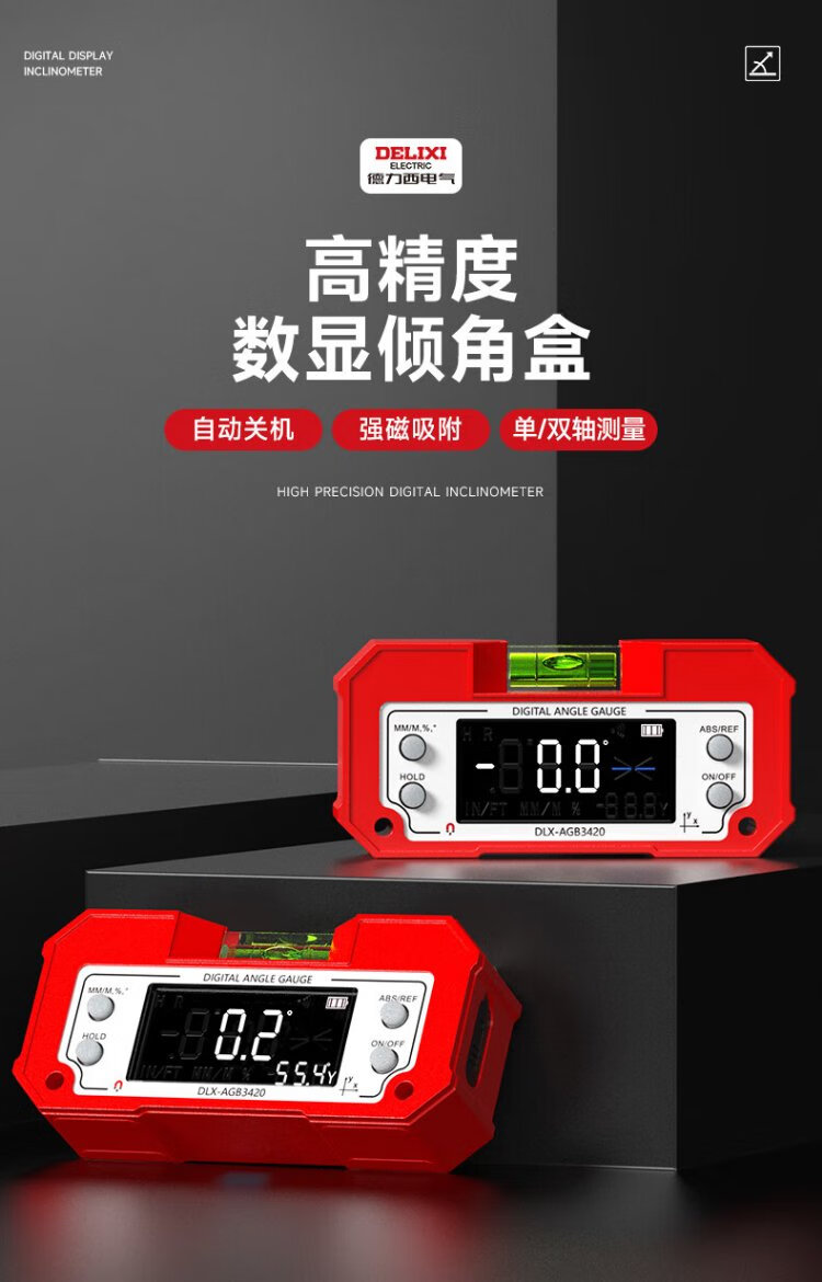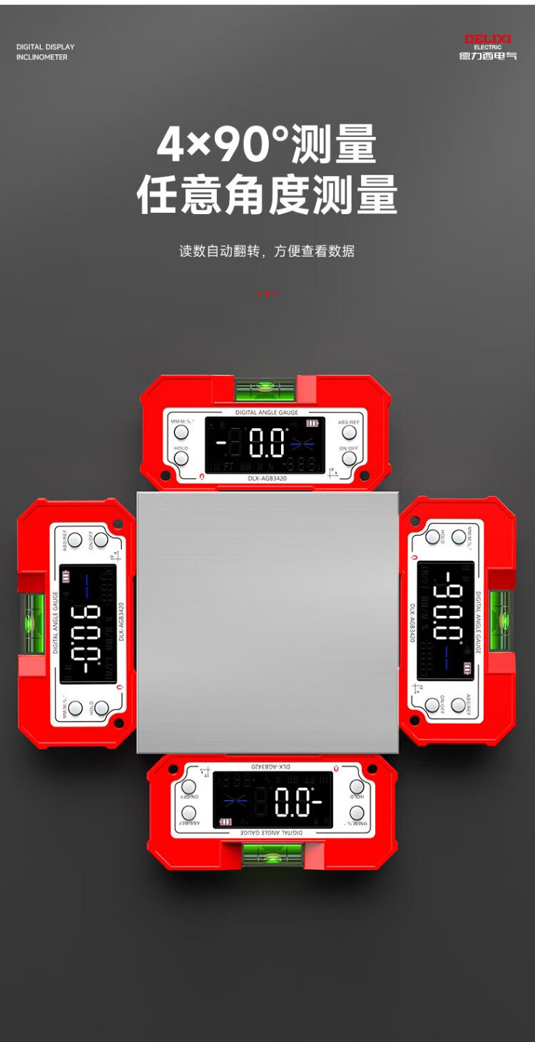Delixi Electric Inclinometer Digital Display High-Precision Laser Level Angle Measuring Instrument Multi-functional Magnetic Angle Meter Slope Meter Tape Measure Package Lithium Battery Direct Charging/Dual-Axis Measurement Lifetime Warranty/Free Invoicing