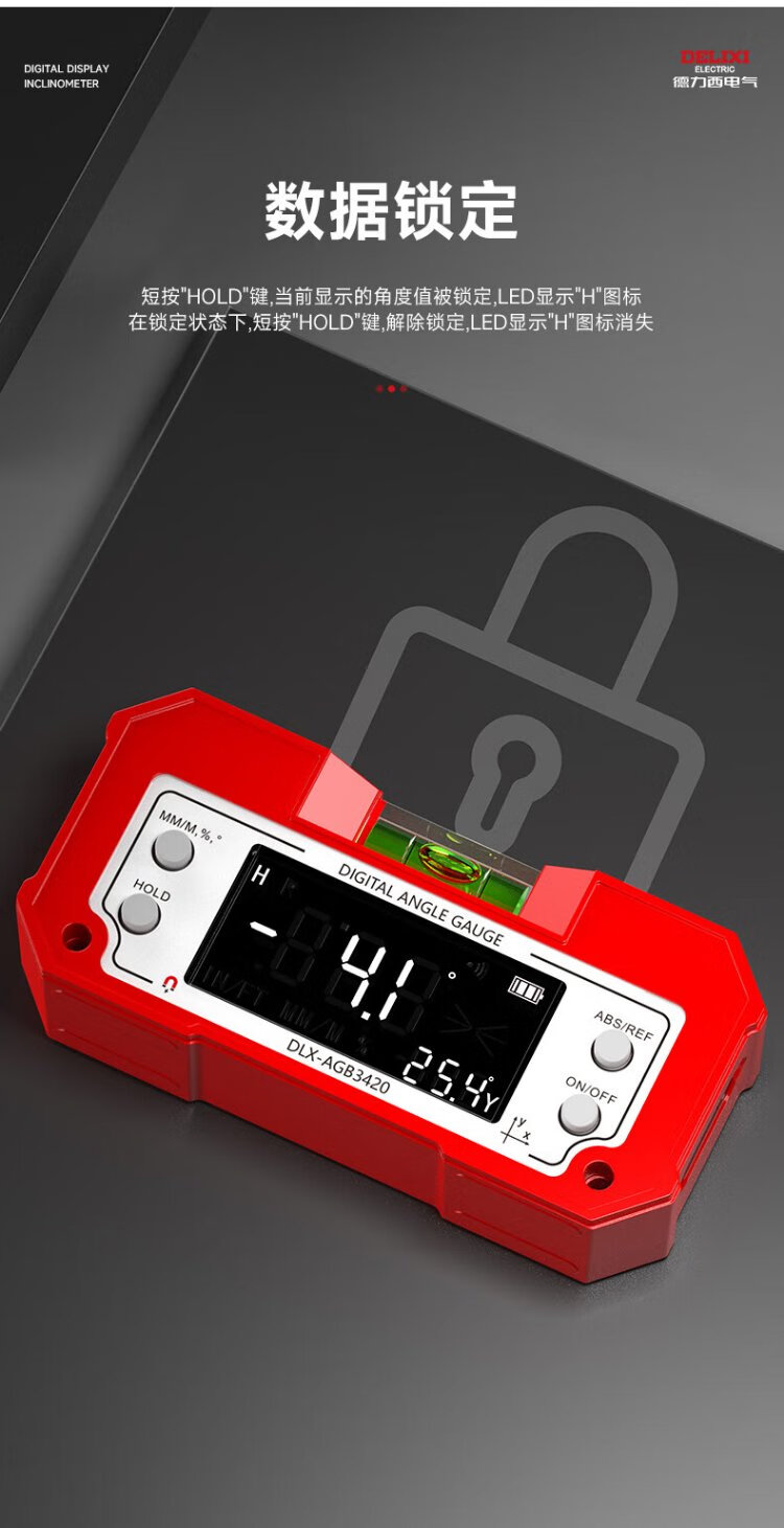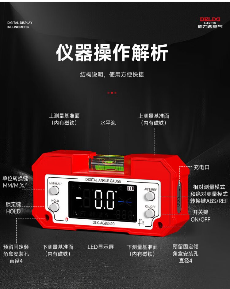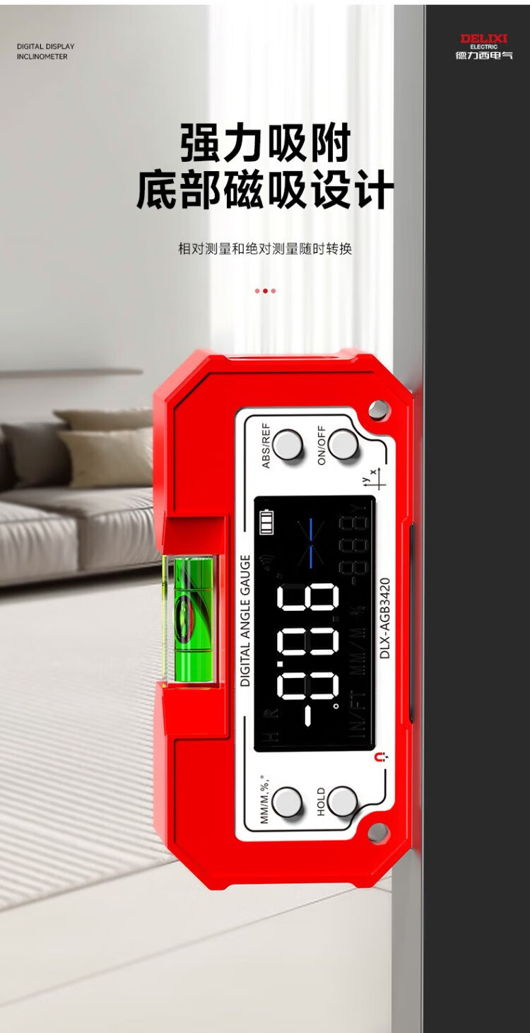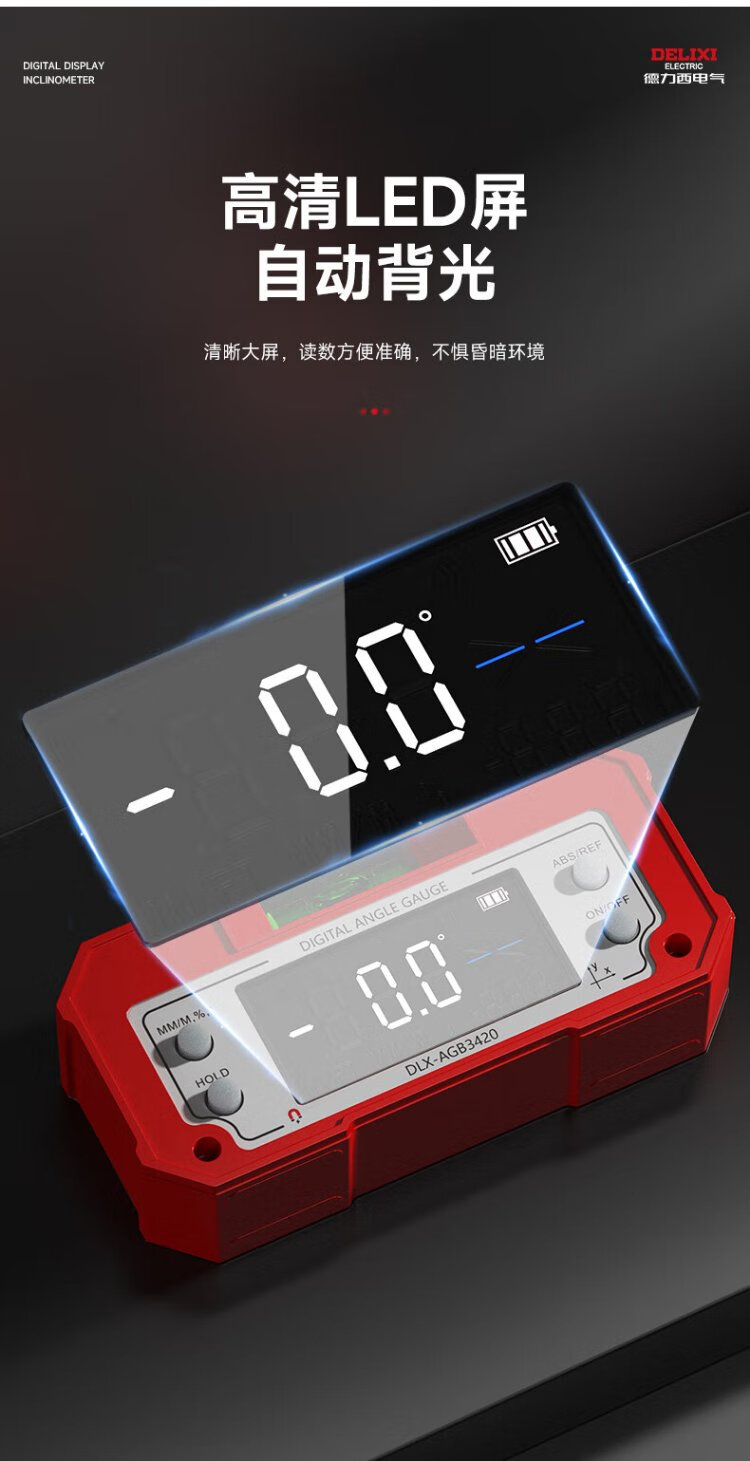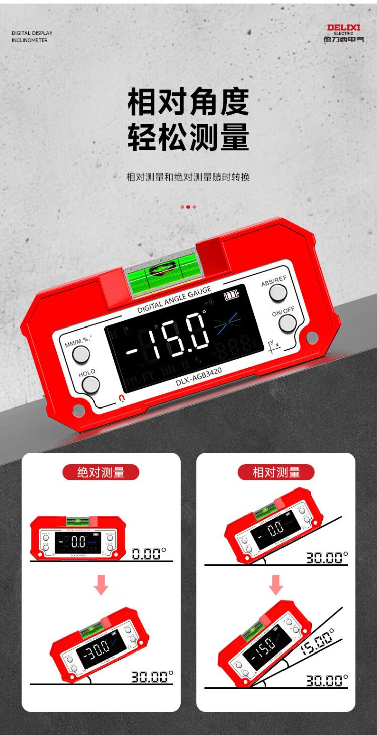 Delixi Electric Inclinometer Digital Display High-Precision Laser Level Angle Measuring Instrument Multi-functional Magnetic Angle Meter Slope Meter Tape Measure Package Lithium Battery Direct Charging/Dual-Axis Measurement Lifetime Warranty/Free Invoicing