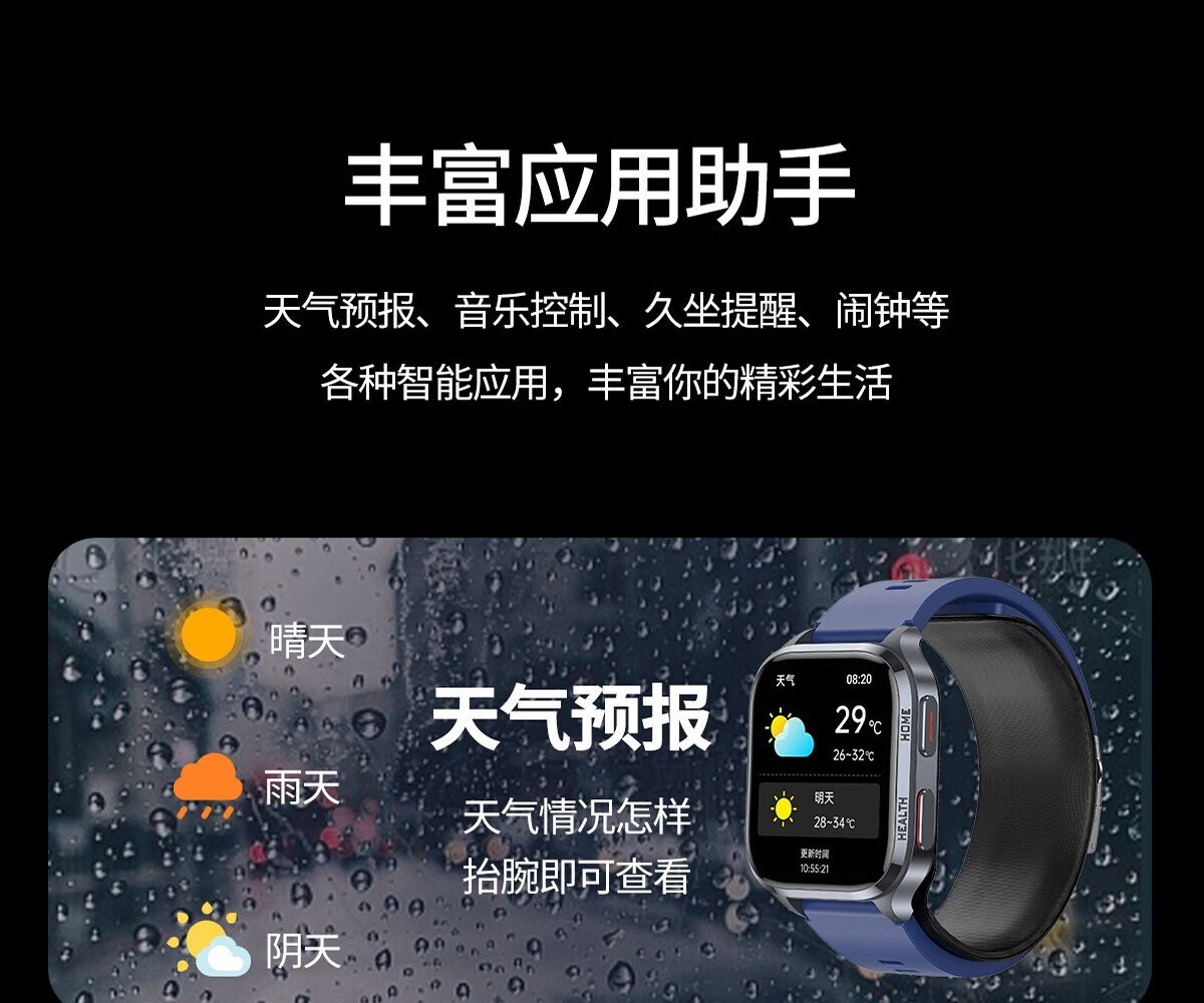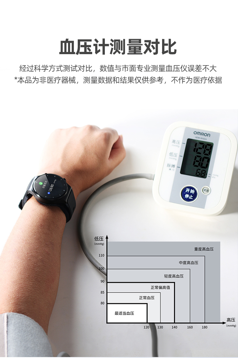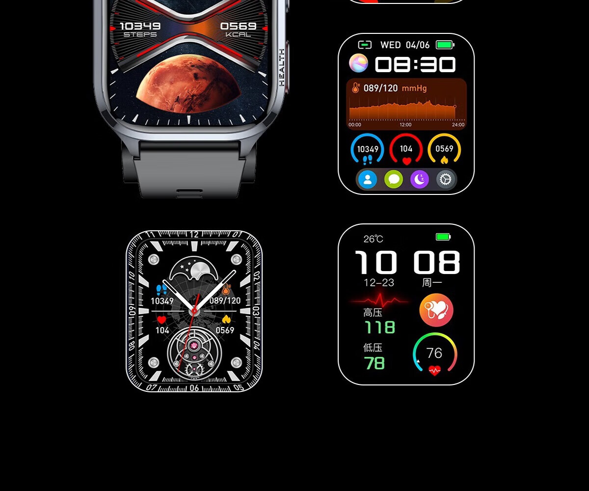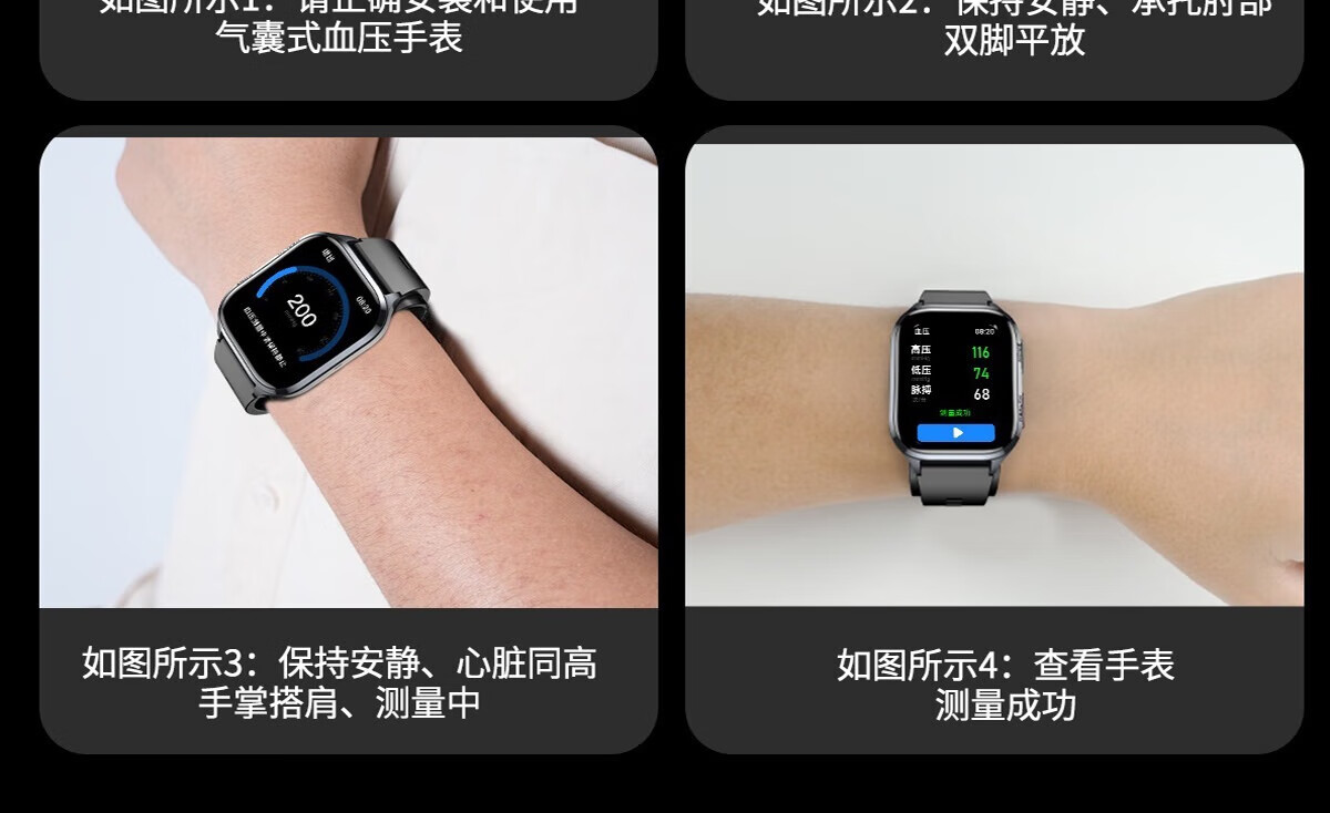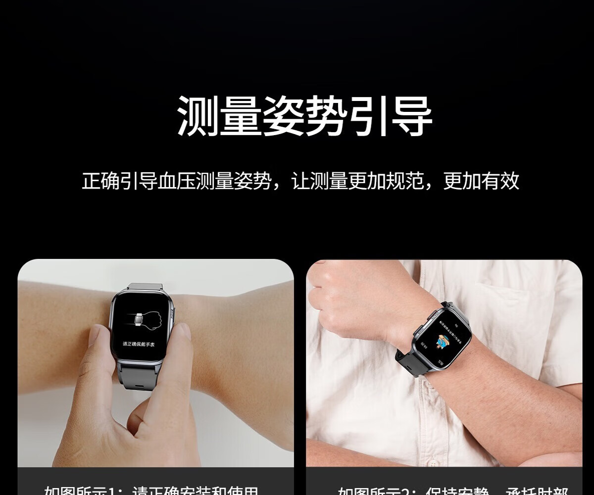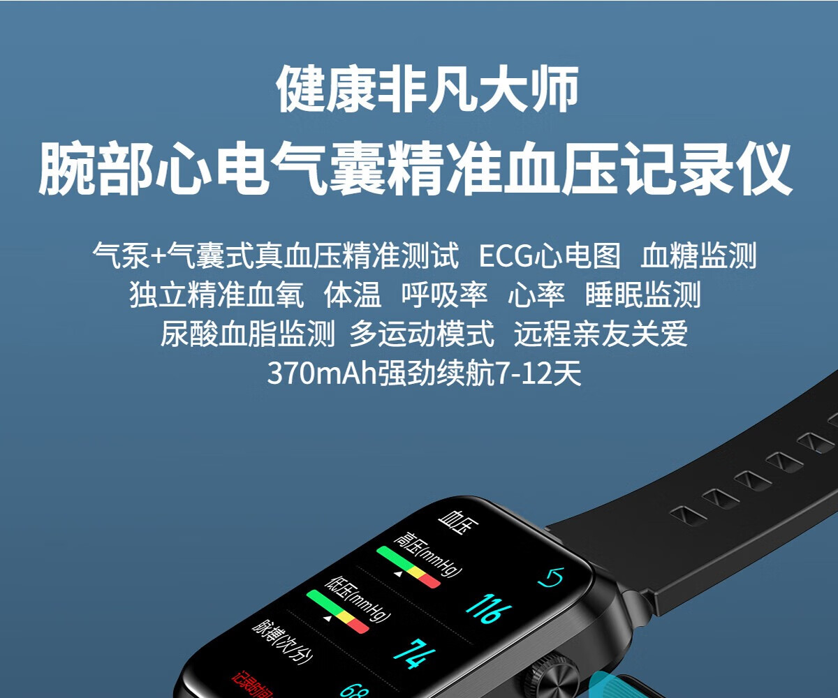 Mucci blood pressure watch, abnormal heart rate alarm, real-time automatic health monitoring for the elderly, smart blood oxygen detector, multifunctional sports sleep, medical grade, elegant black, medical grade, high-precision airbag pressurization, suitable for Huawei Apple machines